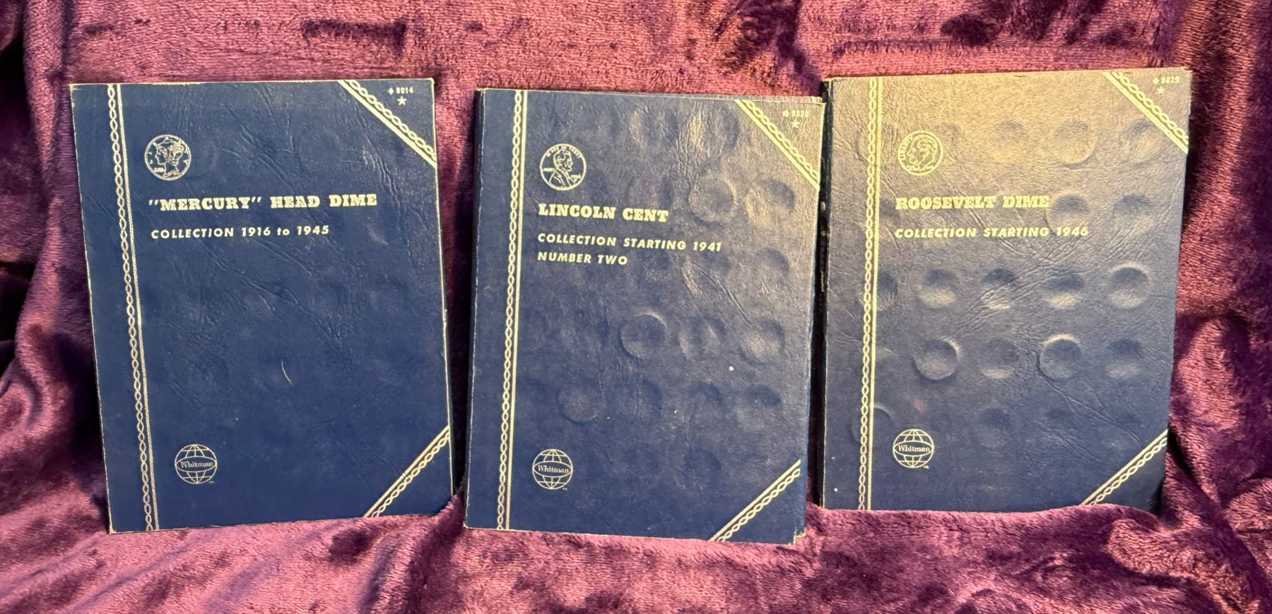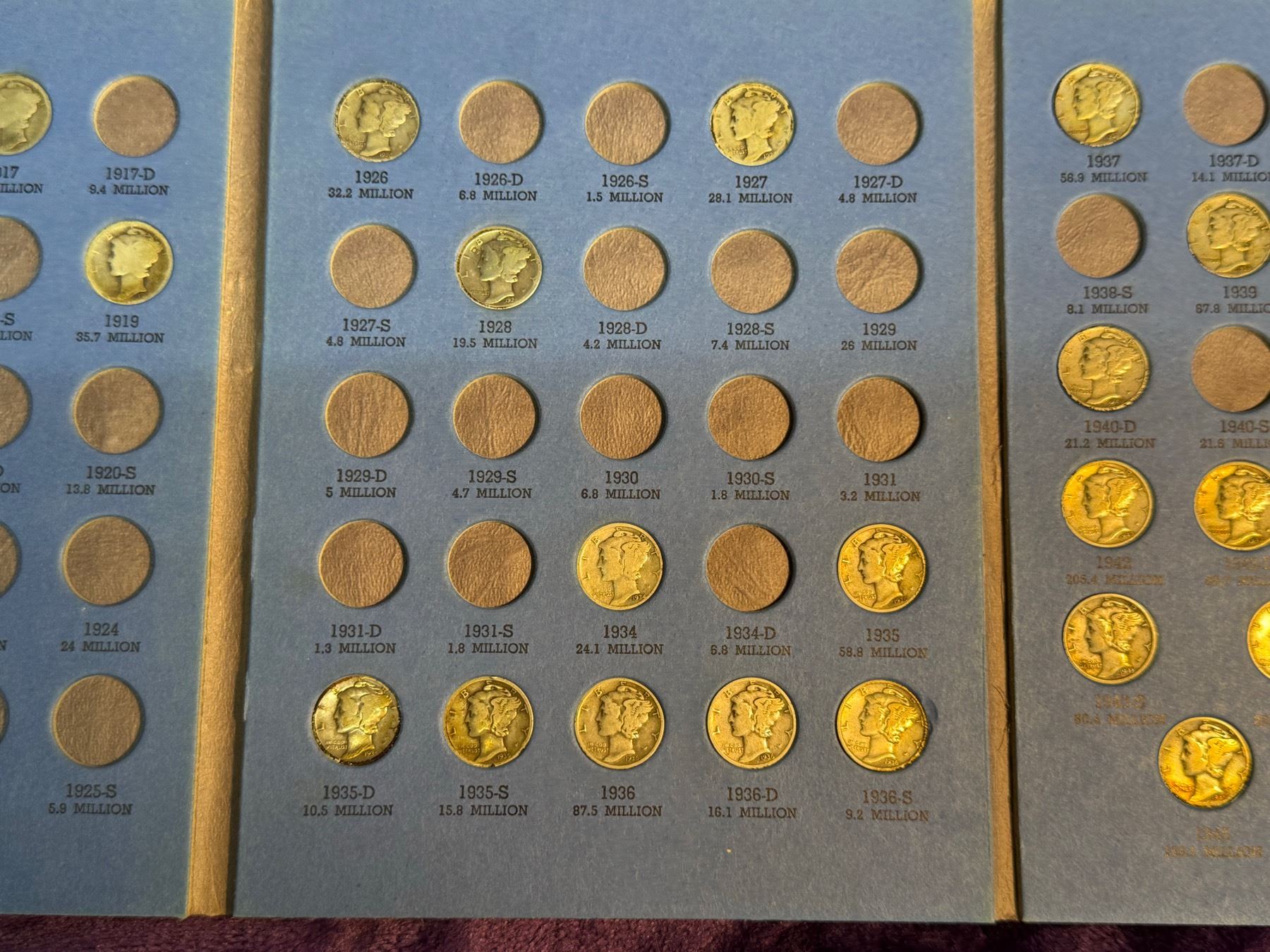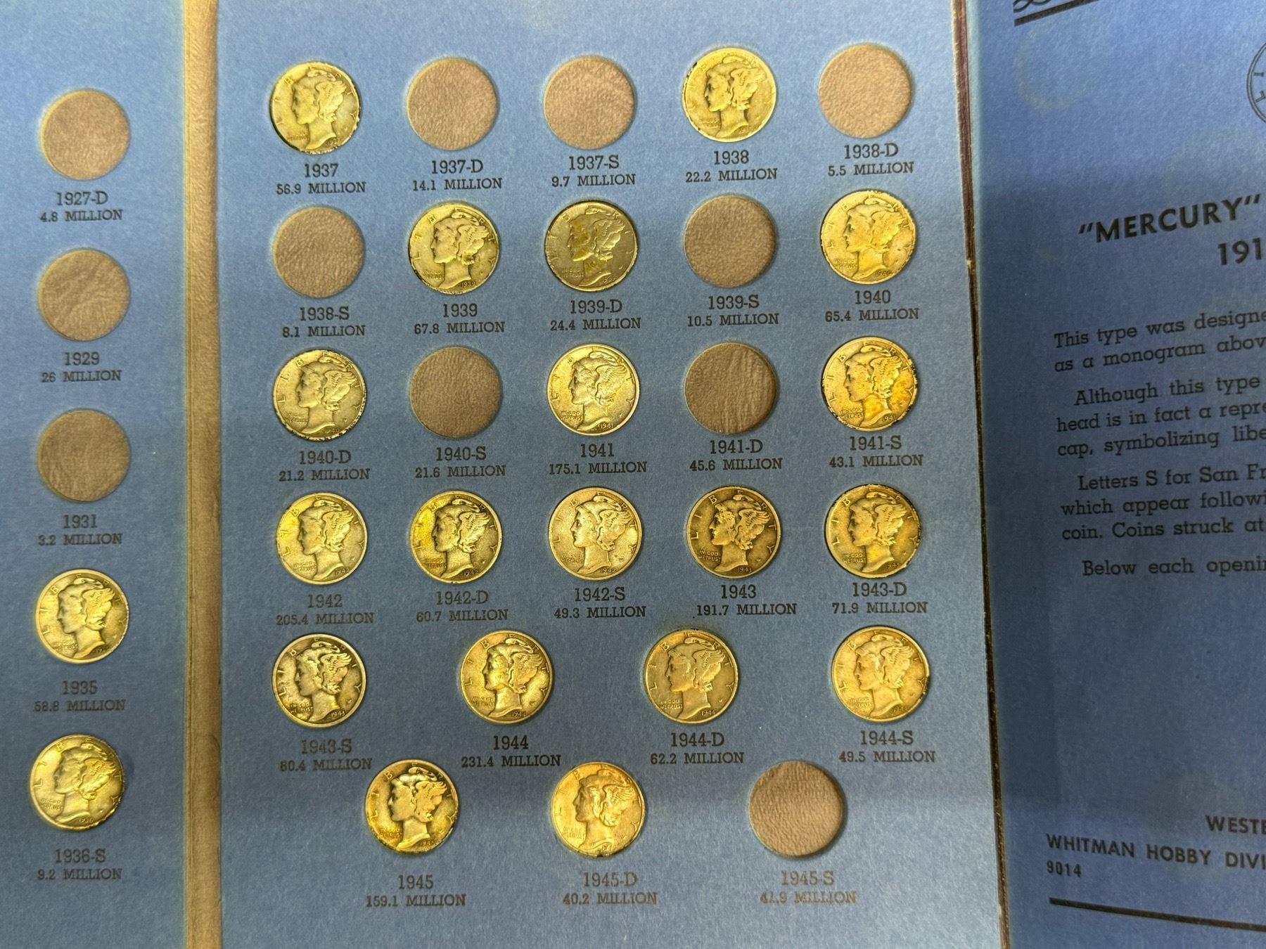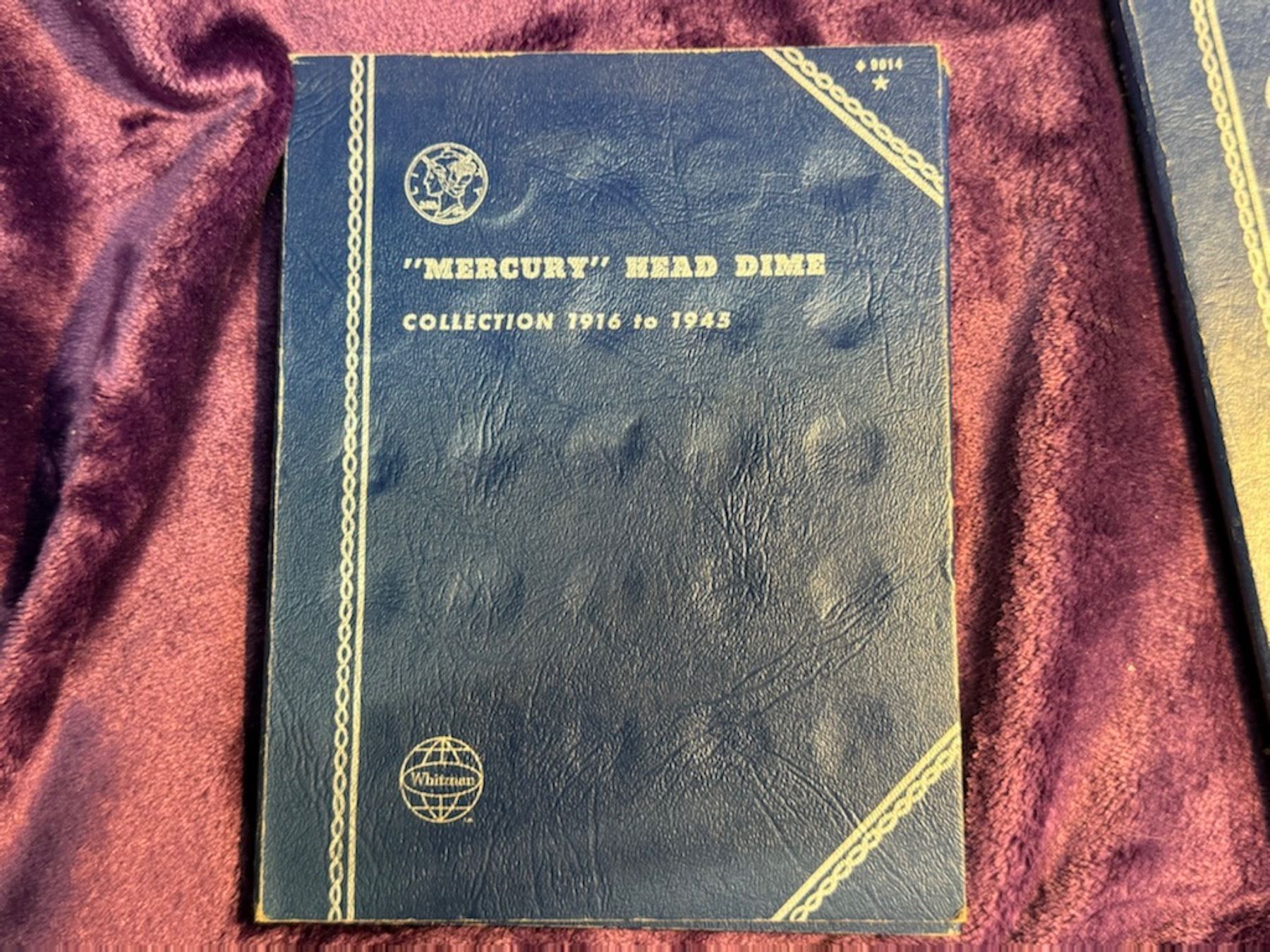 LOT OF MERCURY DIMES, LINCOLN CENTS, AND ROOSEVELT DIMES IN COIN BOOKS