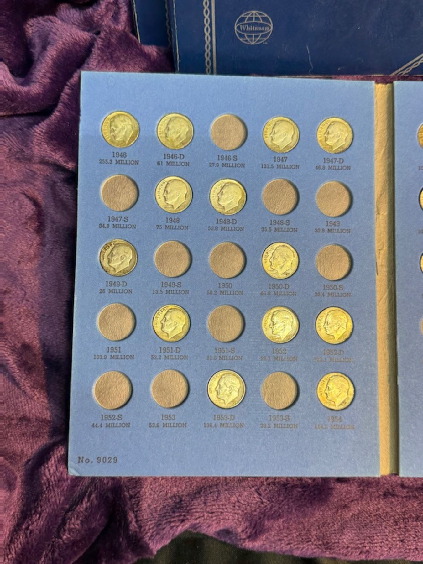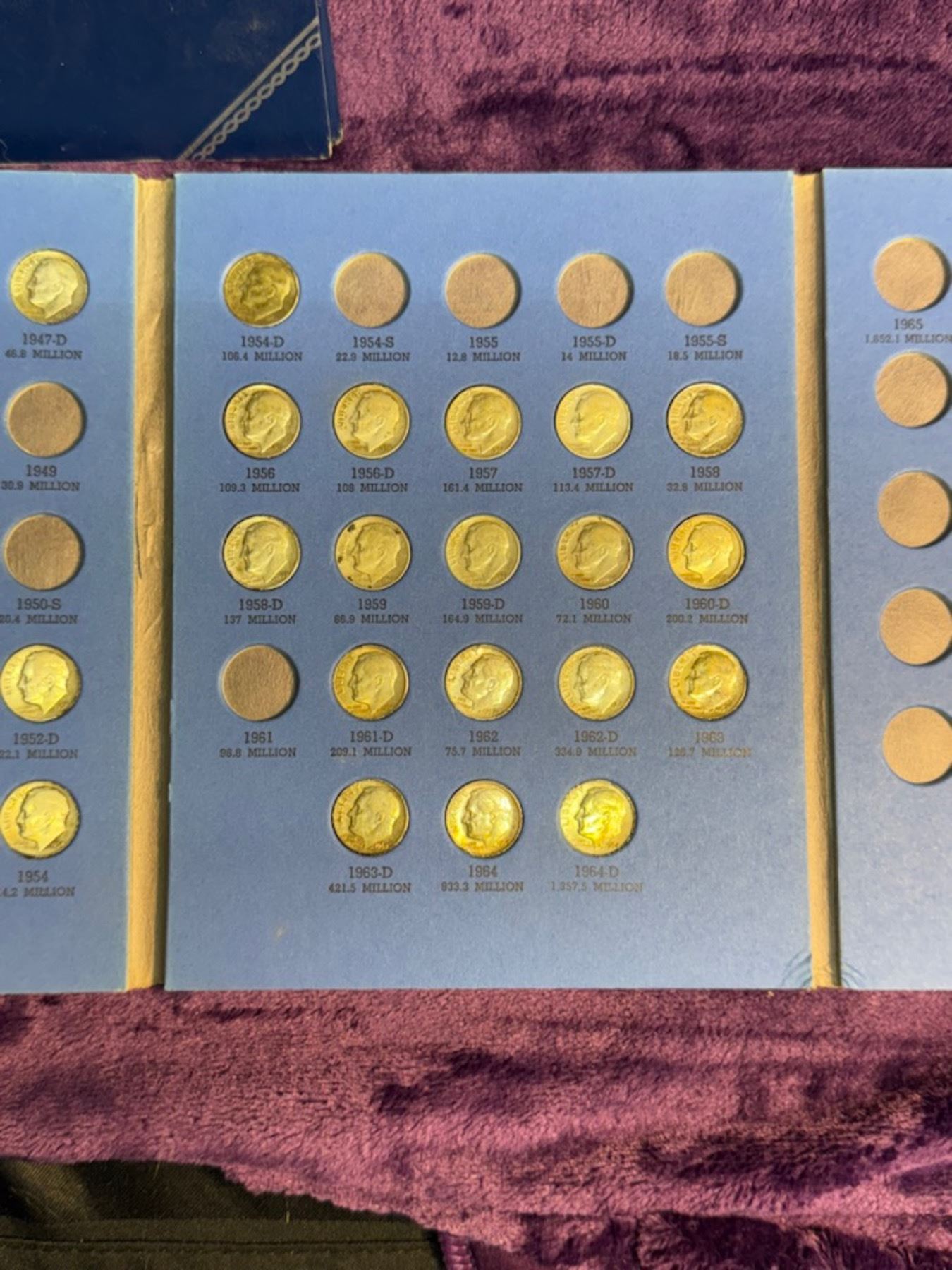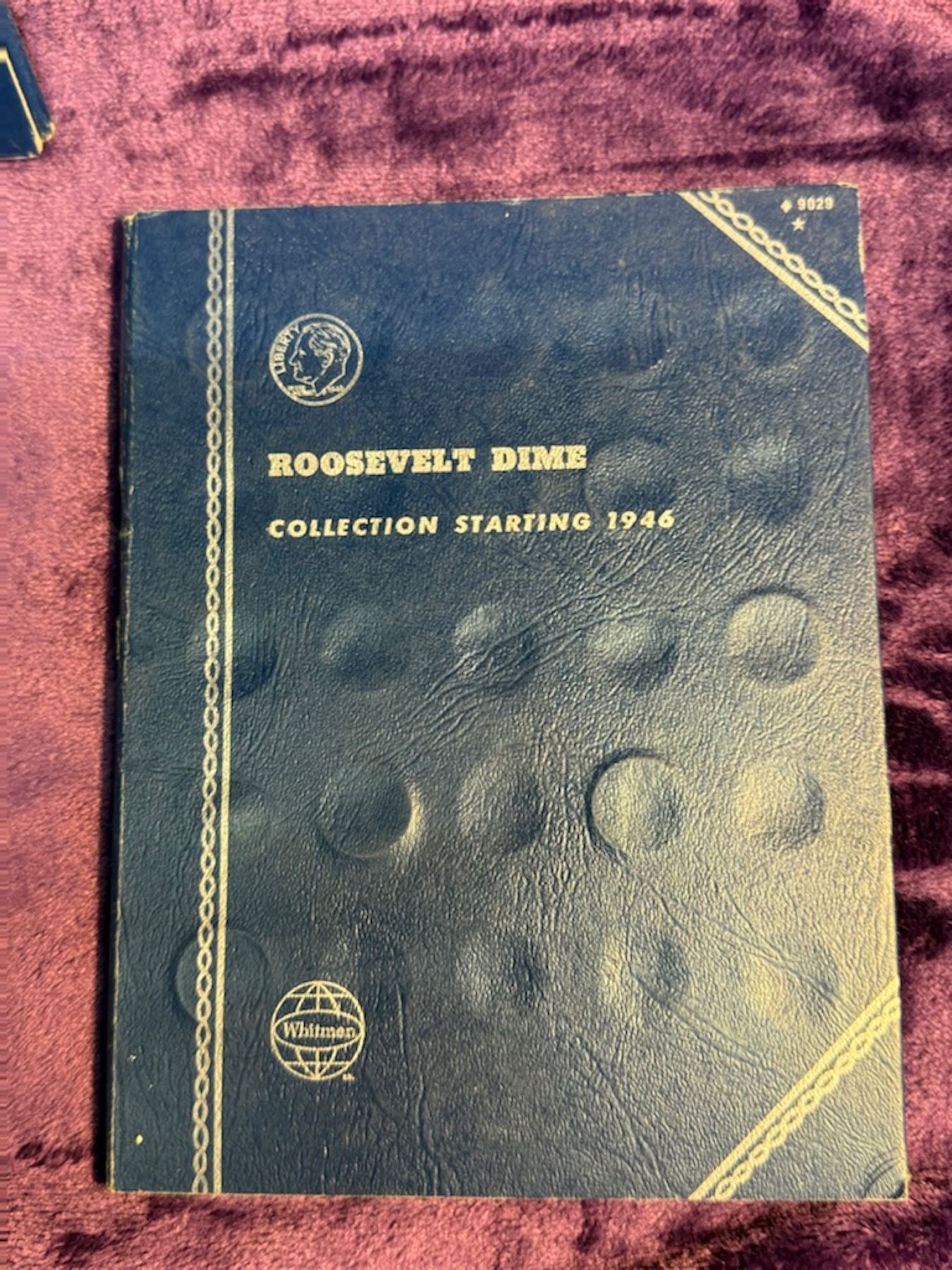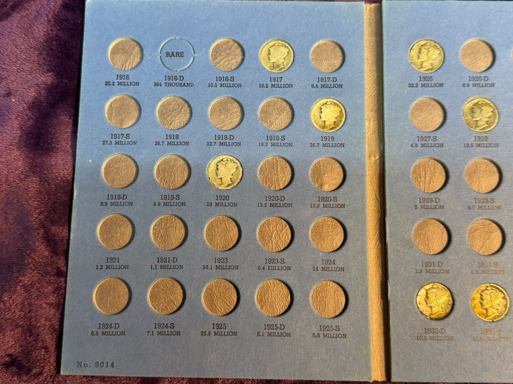 LOT OF MERCURY DIMES, LINCOLN CENTS, AND ROOSEVELT DIMES IN COIN BOOKS
