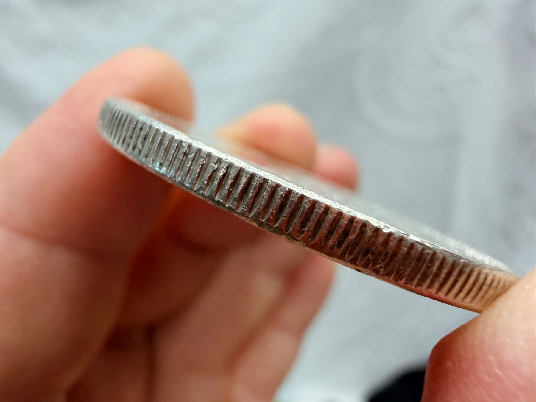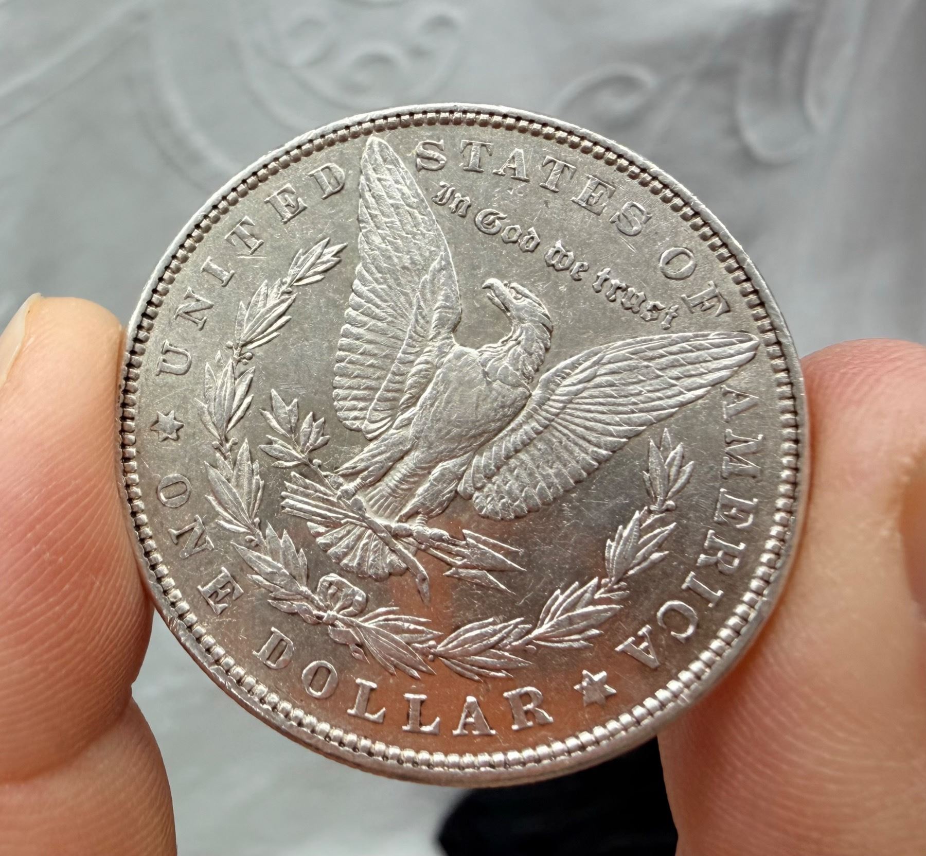 THE MORGAN SILVER DOLLAR IS 90 PERCENT SILVER AND 10 PERCENT COPPER WITH A TOTAL WEIGHT OF 26.73 GRAMS CONTAINS 0.77344 TROY OUNCES OF PURE SILVER AND WAS MINTED FROM 1878-1904 AND 1921