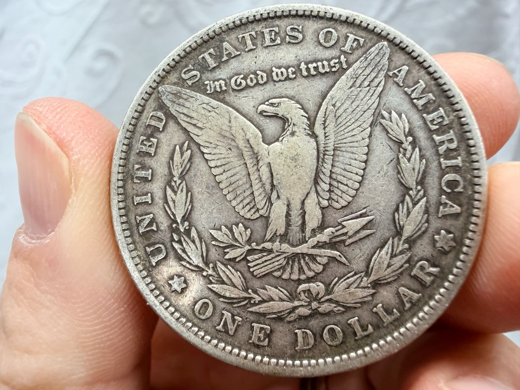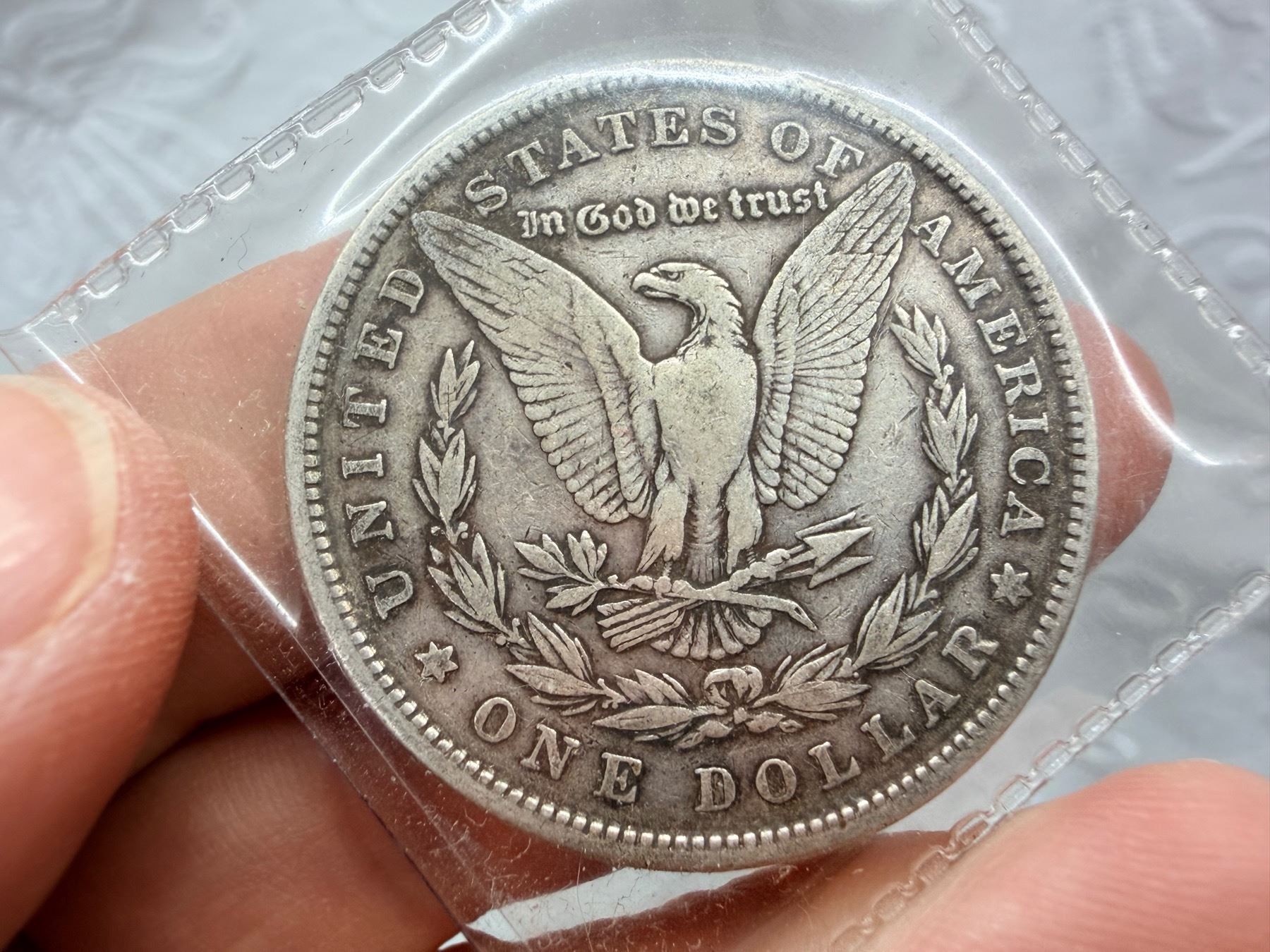 THE MORGAN SILVER DOLLAR IS 90 PERCENT SILVER AND 10 PERCENT COPPER WITH A TOTAL WEIGHT OF 26.73 GRAMS CONTAINS 0.77344 TROY OUNCES OF PURE SILVER AND WAS MINTED FROM 1878-1904 AND 1921