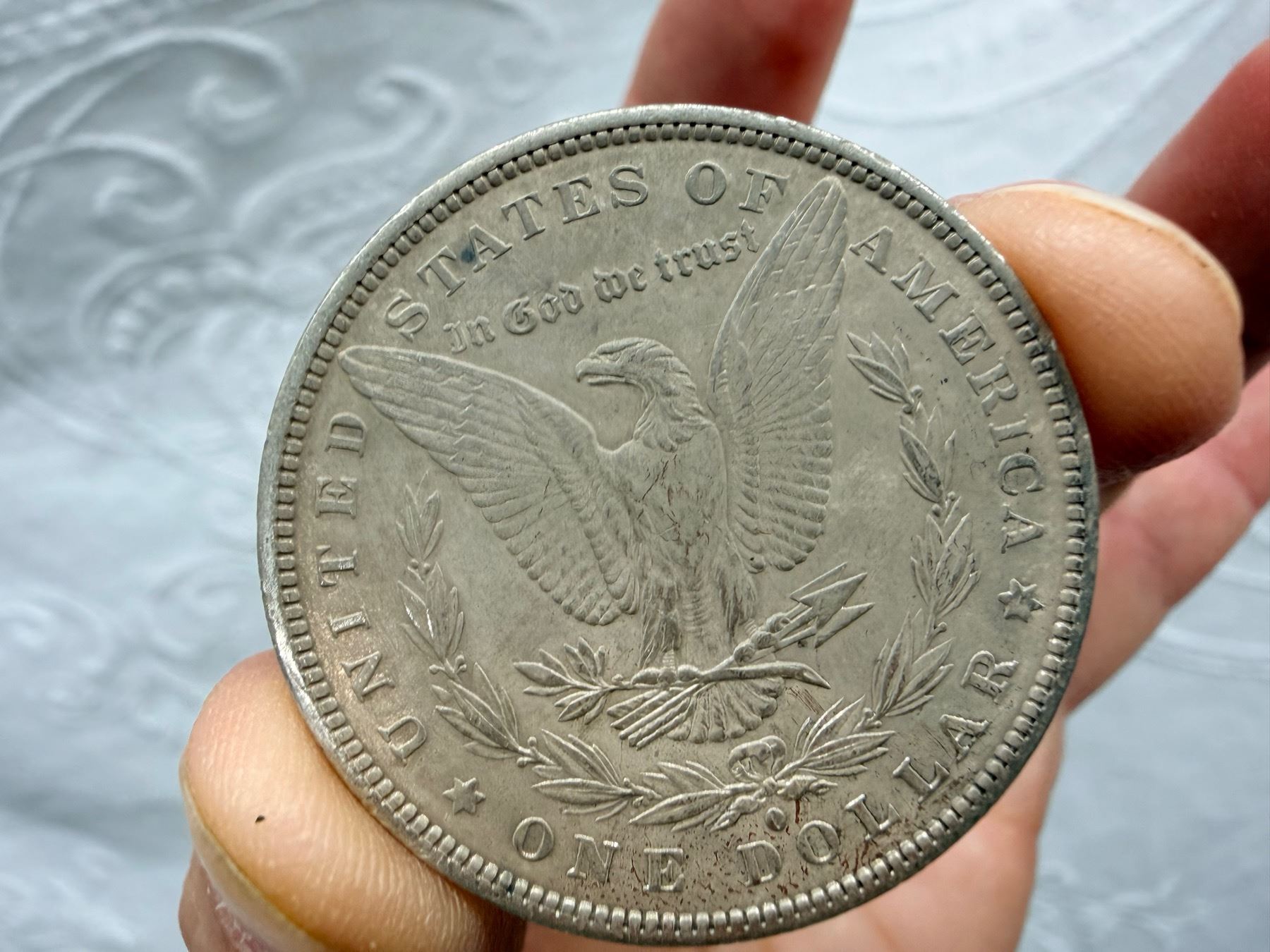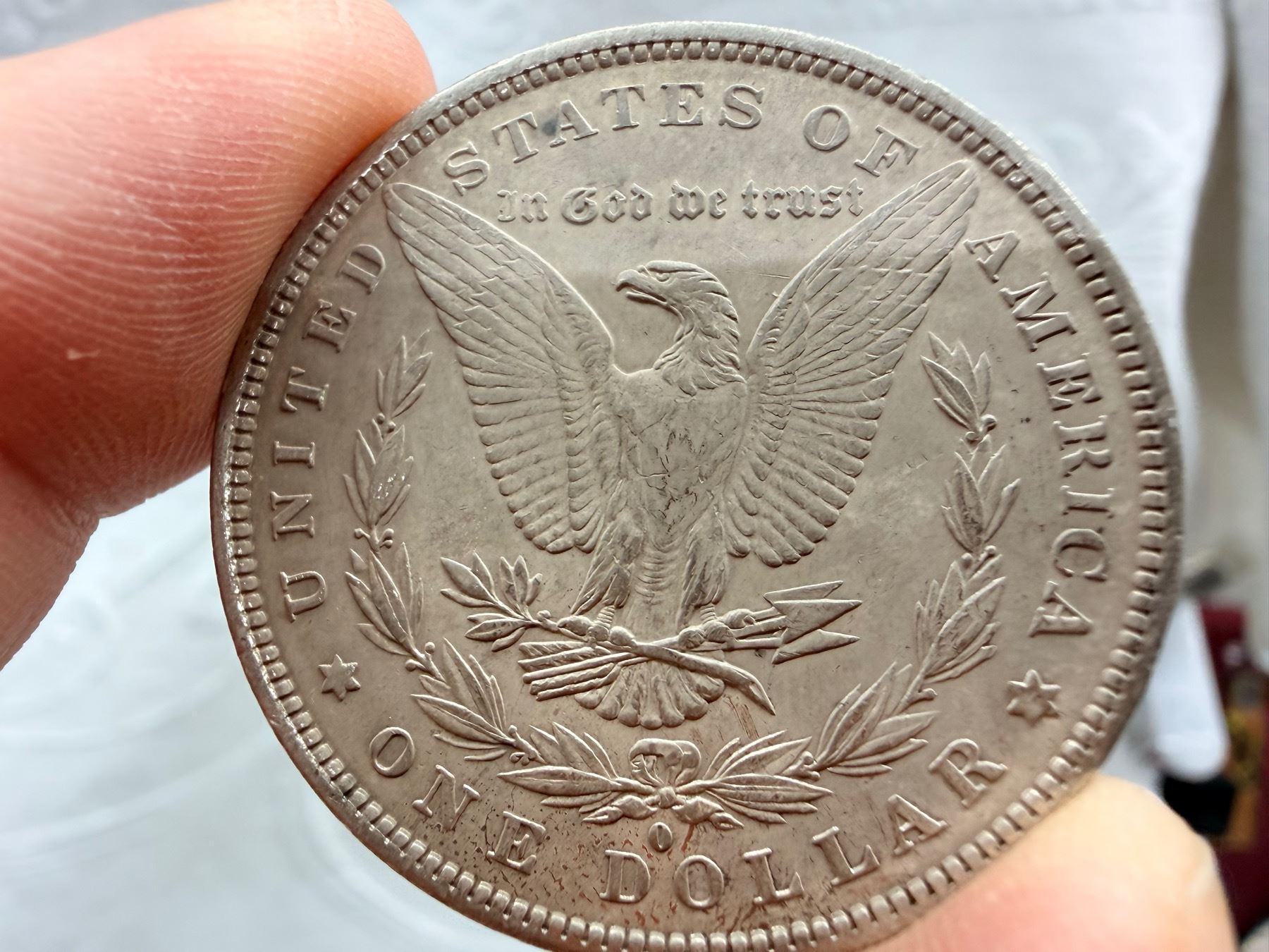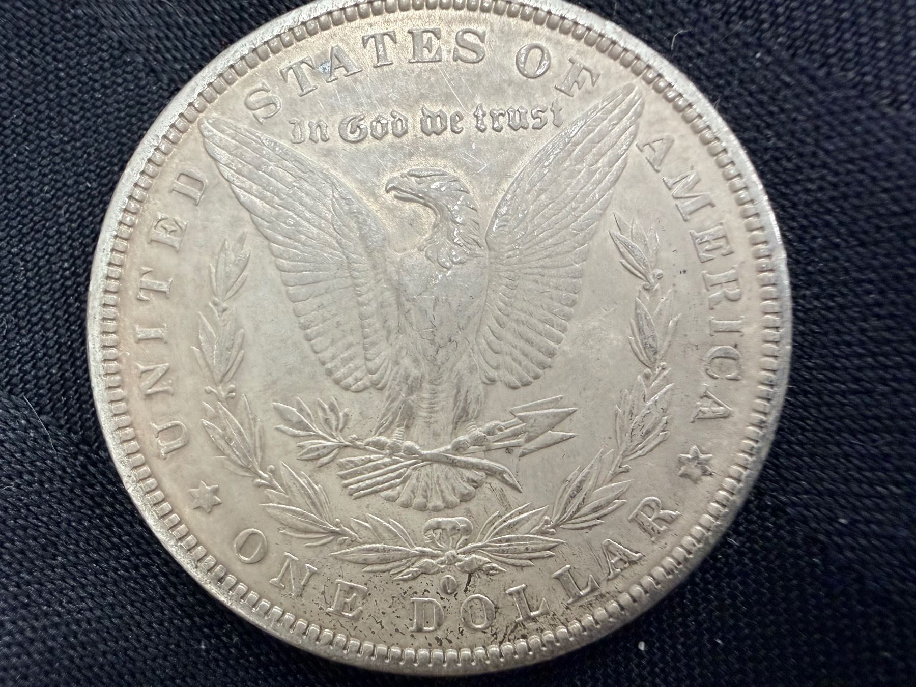 THE MORGAN SILVER DOLLAR IS 90 PERCENT SILVER AND 10 PERCENT COPPER WITH A TOTAL WEIGHT OF 26.73 GRAMS CONTAINS 0.77344 TROY OUNCES OF PURE SILVER AND WAS MINTED FROM 1878-1904 AND 1921