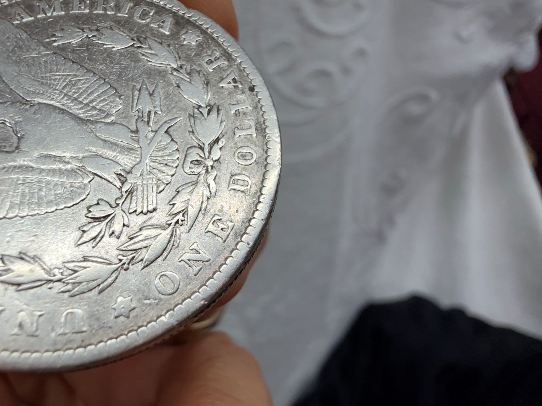 THE MORGAN SILVER DOLLAR IS 90 PERCENT SILVER AND 10 PERCENT COPPER WITH A TOTAL WEIGHT OF 26.73 GRAMS CONTAINS 0.77344 TROY OUNCES OF PURE SILVER AND WAS MINTED FROM 1878-1904 AND 1921