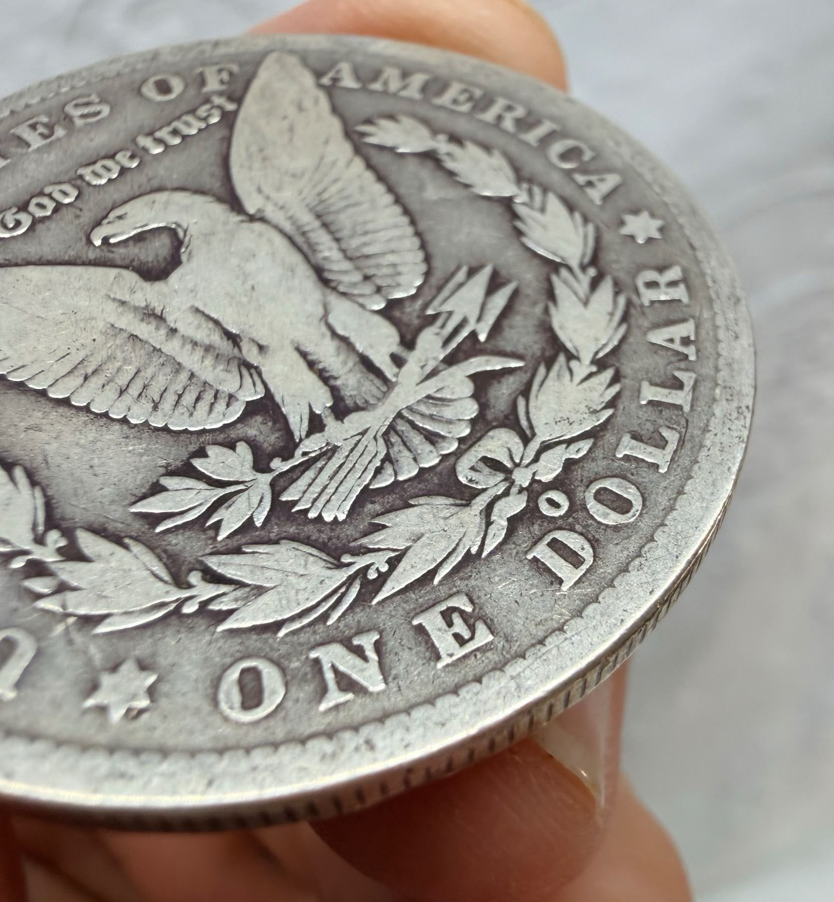 THE MORGAN SILVER DOLLAR IS 90 PERCENT SILVER AND 10 PERCENT COPPER WITH A TOTAL WEIGHT OF 26.73 GRAMS CONTAINS 0.77344 TROY OUNCES OF PURE SILVER AND WAS MINTED FROM 1878-1904 AND 1921
