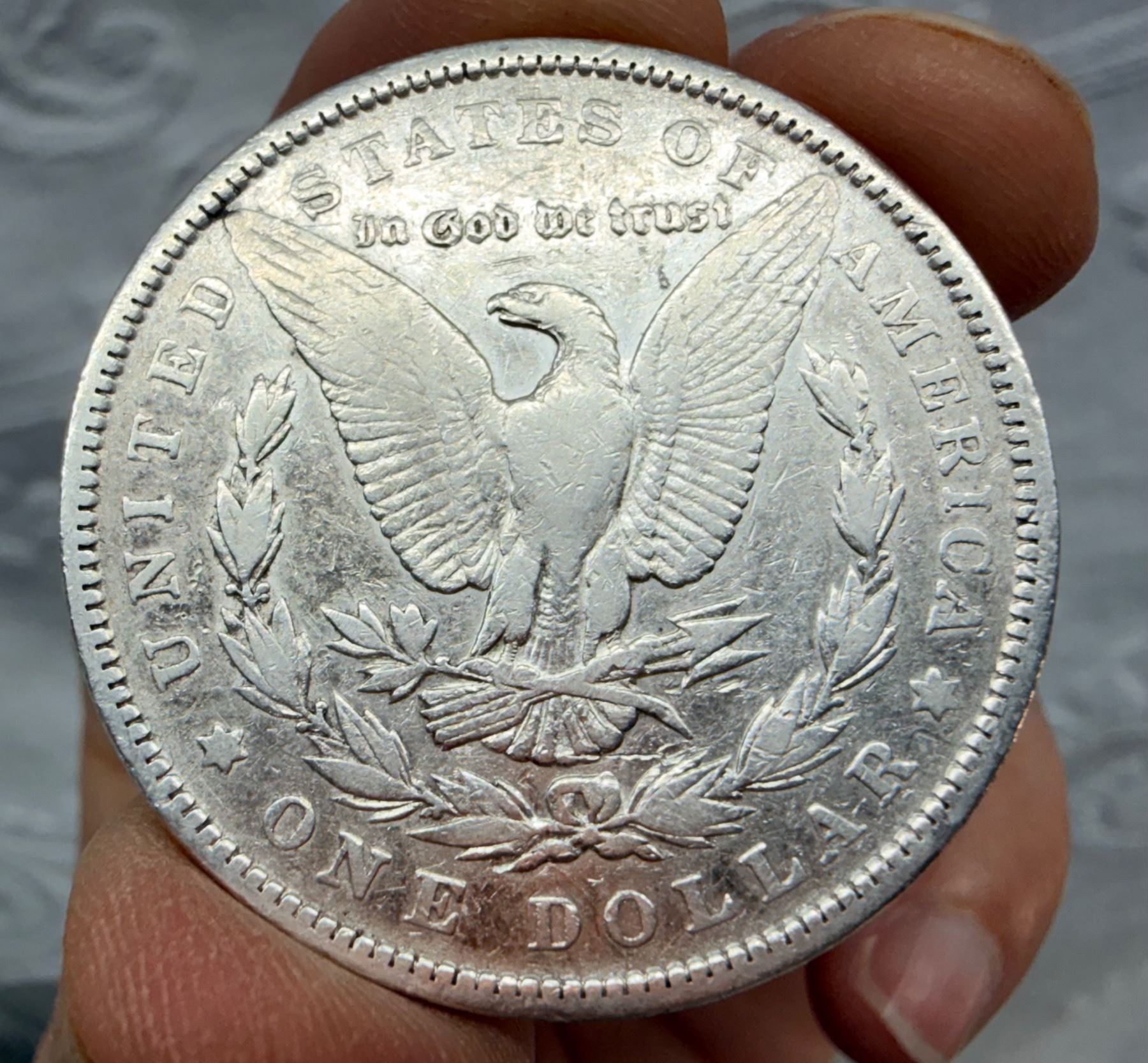 THE MORGAN SILVER DOLLAR IS 90 PERCENT SILVER AND 10 PERCENT COPPER WITH A TOTAL WEIGHT OF 26.73 GRAMS CONTAINS 0.77344 TROY OUNCES OF PURE SILVER AND WAS MINTED FROM 1878-1904 AND 1921