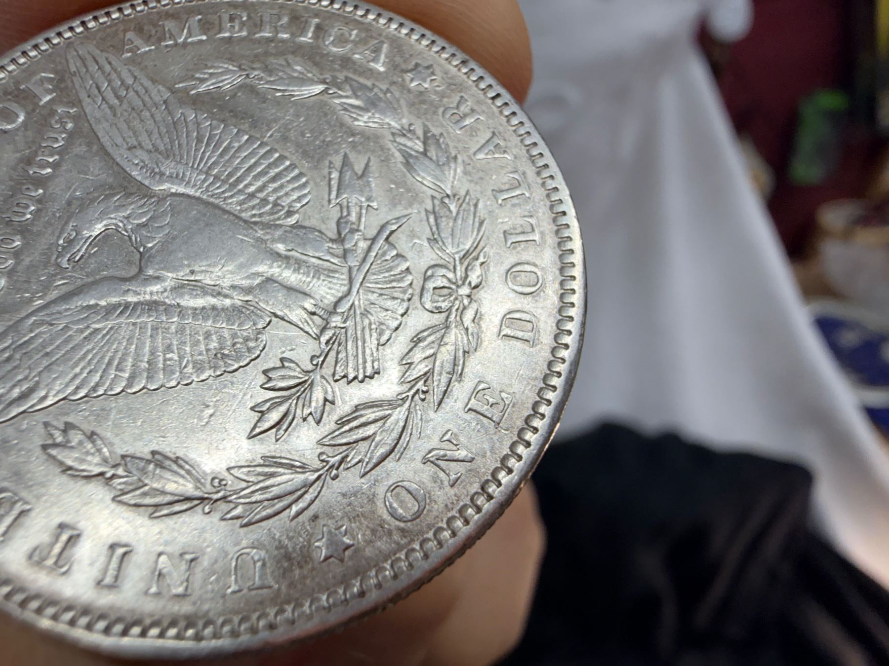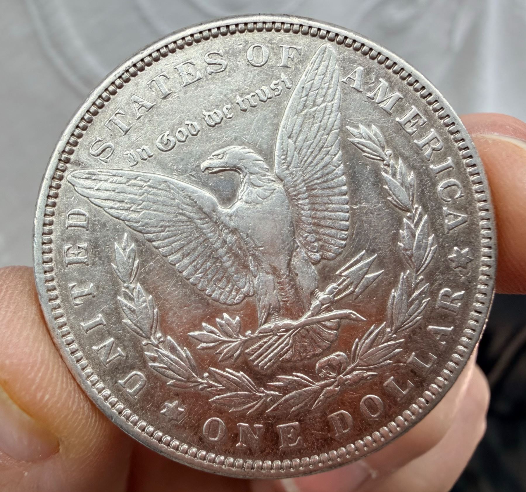 THE MORGAN SILVER DOLLAR IS 90 PERCENT SILVER AND 10 PERCENT COPPER WITH A TOTAL WEIGHT OF 26.73 GRAMS CONTAINS 0.77344 TROY OUNCES OF PURE SILVER AND WAS MINTED FROM 1878-1904 AND 1921