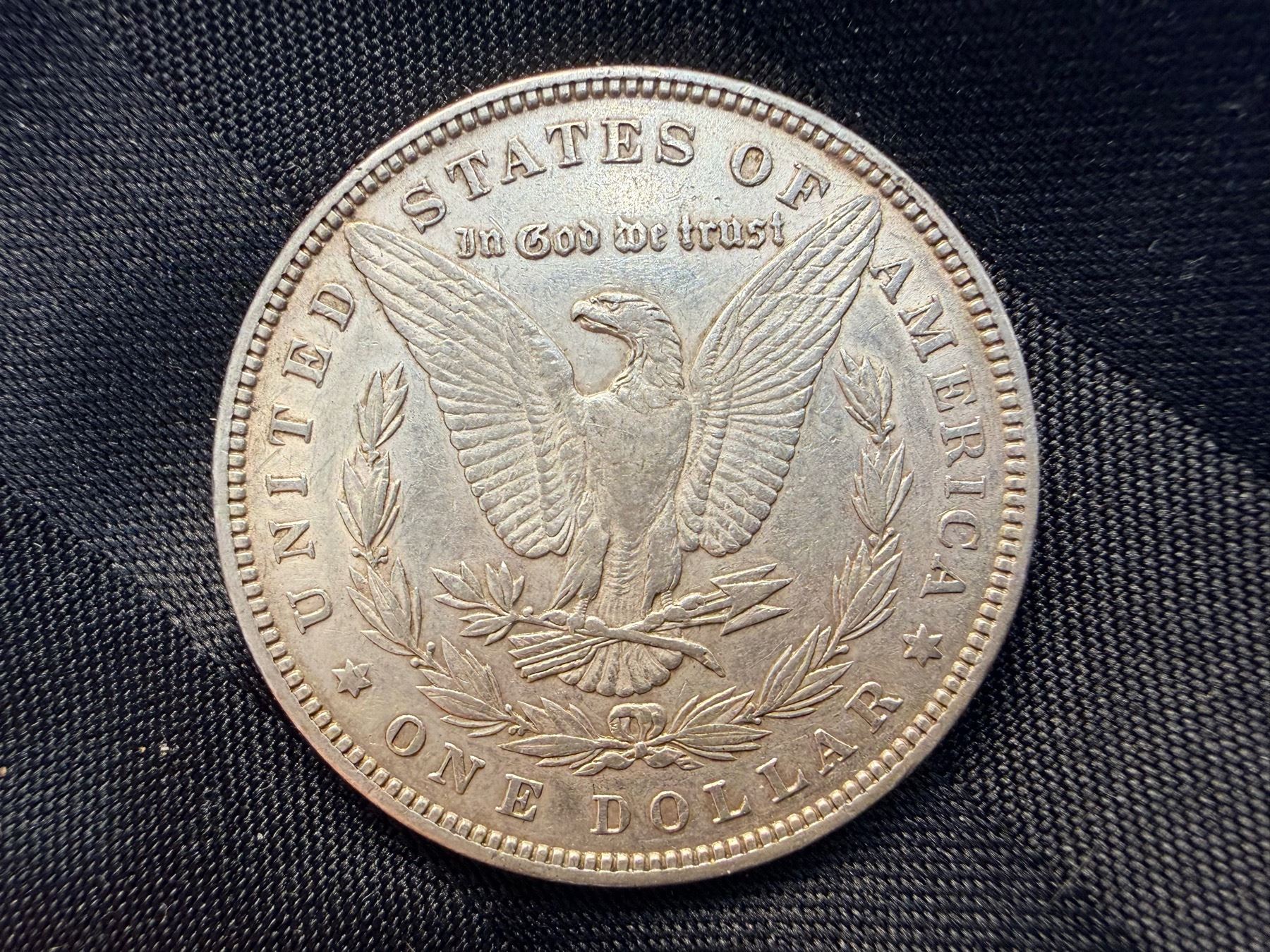 THE MORGAN SILVER DOLLAR IS 90 PERCENT SILVER AND 10 PERCENT COPPER WITH A TOTAL WEIGHT OF 26.73 GRAMS CONTAINS 0.77344 TROY OUNCES OF PURE SILVER AND WAS MINTED FROM 1878-1904 AND 1921