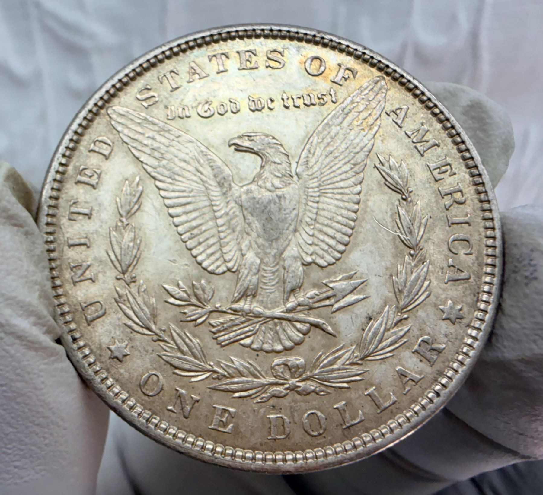 THE MORGAN SILVER DOLLAR IS 90 PERCENT SILVER AND 10 PERCENT COPPER WITH A TOTAL WEIGHT OF 26.73 GRAMS, CONTAINS 0.77344 TROY OUNCE OF PURE SILVER, AND WAS MINTED FROM 1878-1904 AND 1921