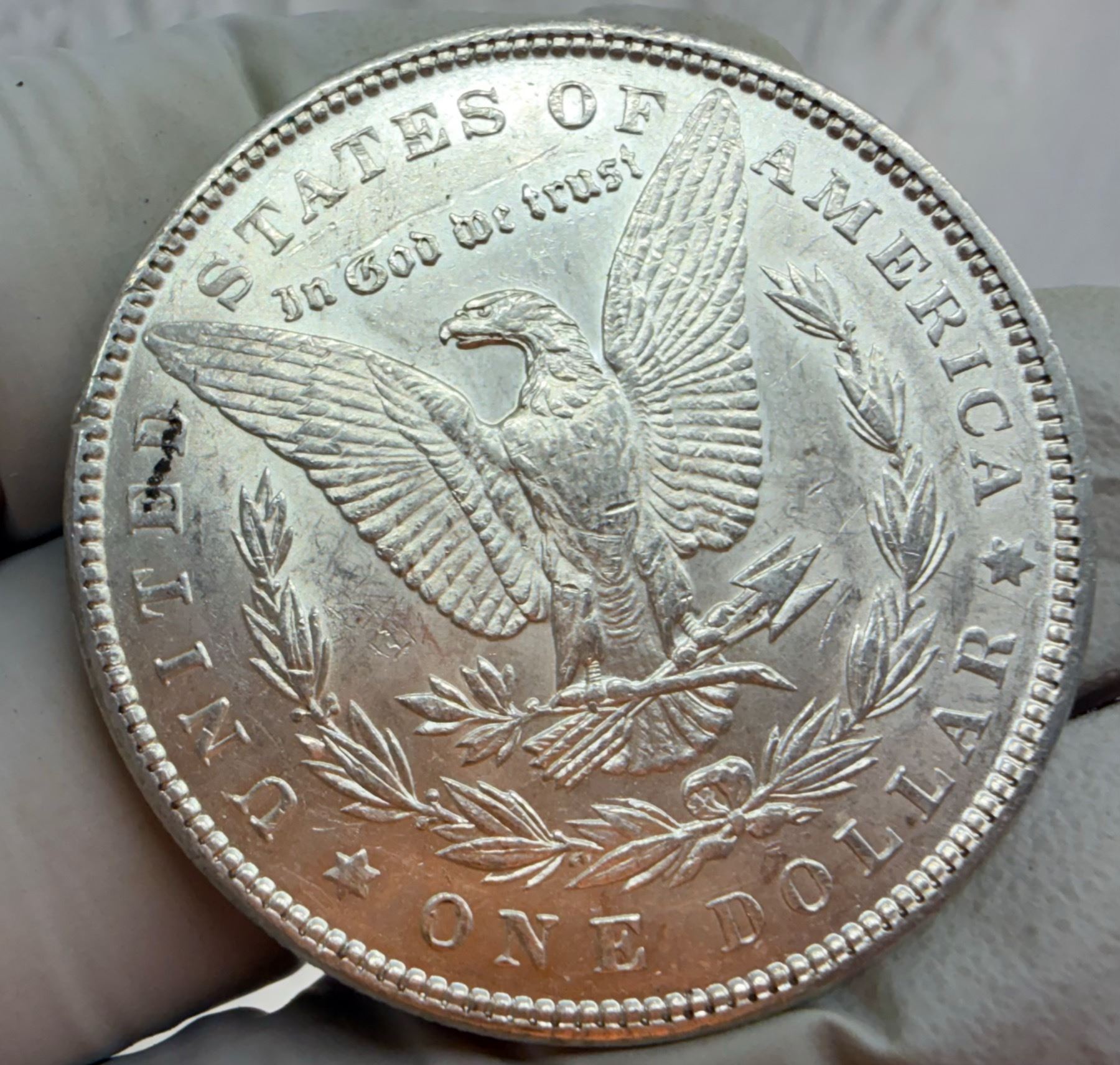 THE MORGAN SILVER DOLLAR IS 90 PERCENT SILVER AND 10 PERCENT COPPER WITH A TOTAL WEIGHT OF 26.73 GRAMS, CONTAINS 0.77344 TROY OUNCE OF PURE SILVER, AND WAS MINTED FROM 1878-1904 AND 1921