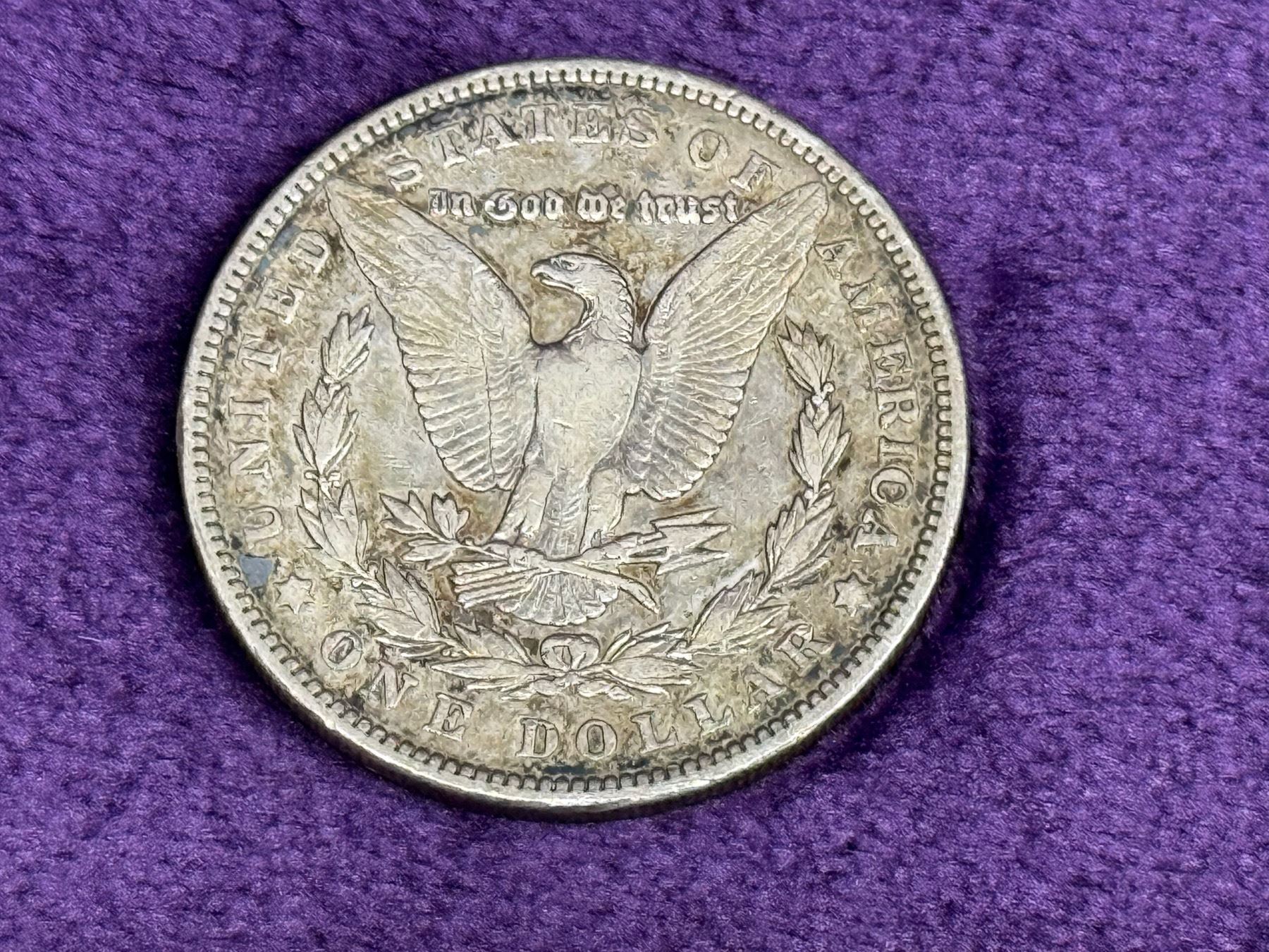 PHILADELPHIA MINT; THE MORGAN SILVER DOLLAR IS 90 PERCENT SILVER AND 10 PERCENT COPPER AND WAS MINTED FROM 1878-1904 AND 1921