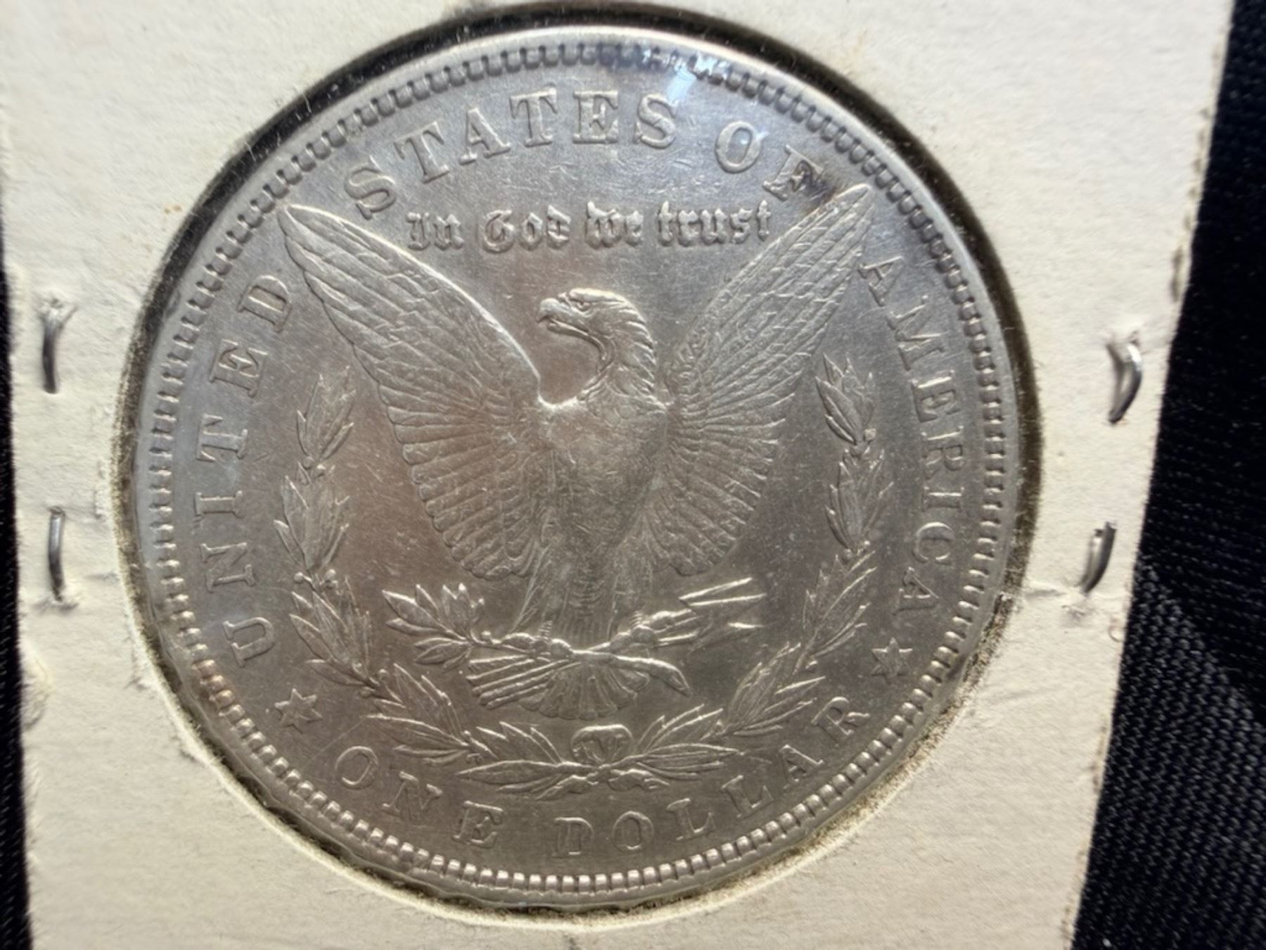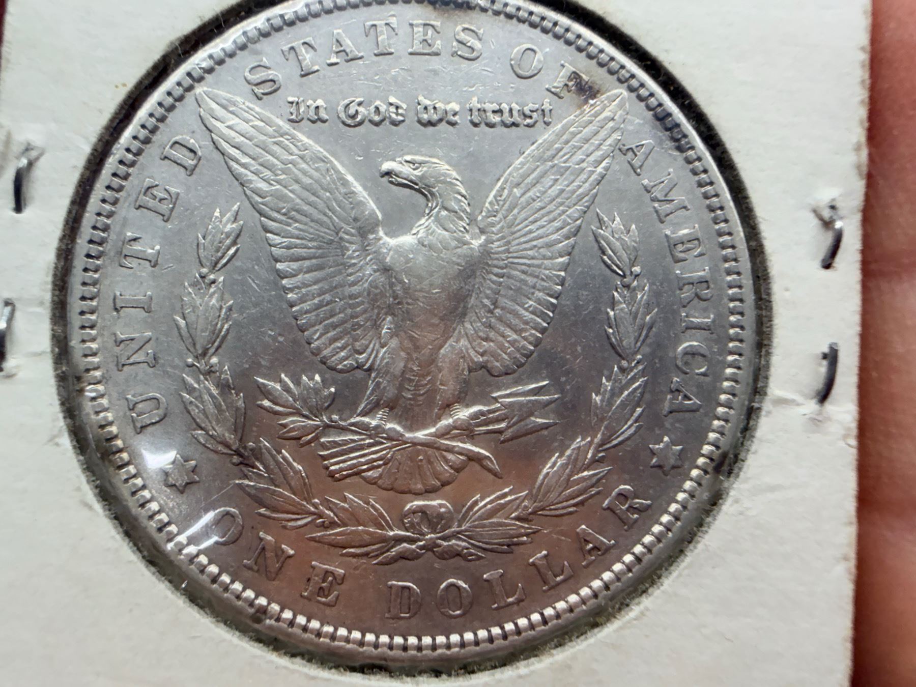 THE MORGAN SILVER DOLLAR IS 90 PERCENT SILVER AND 10 PERCENT COPPER WITH A TOTAL WEIGHT OF 26.73 GRAMS CONTAINS 0.77344 TROY OUNCES OF PURE SILVER AND WAS MINTED FROM 1878-1904 AND 1921