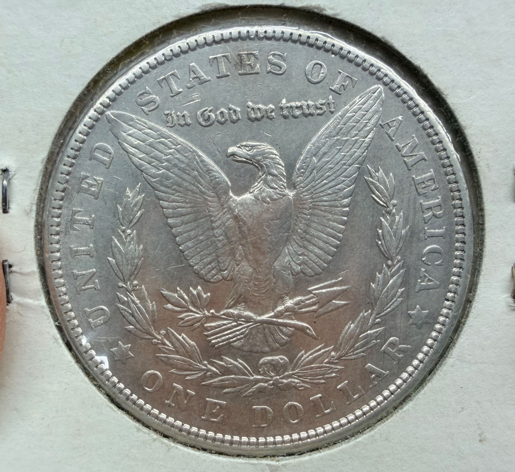 THE MORGAN SILVER DOLLAR IS 90 PERCENT SILVER AND 10 PERCENT COPPER WITH A TOTAL WEIGHT OF 26.73 GRAMS CONTAINS 0.77344 TROY OUNCES OF PURE SILVER AND WAS MINTED FROM 1878-1904 AND 1921
