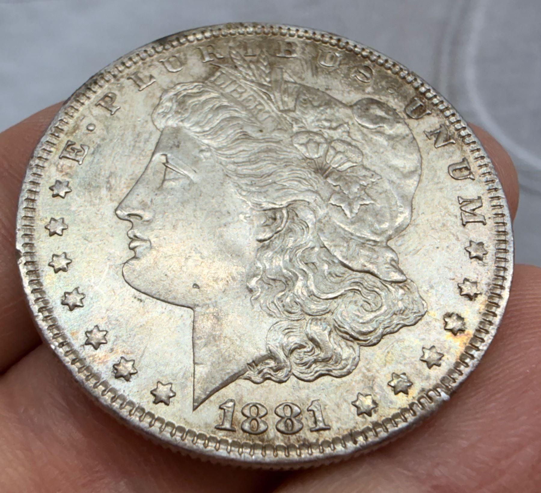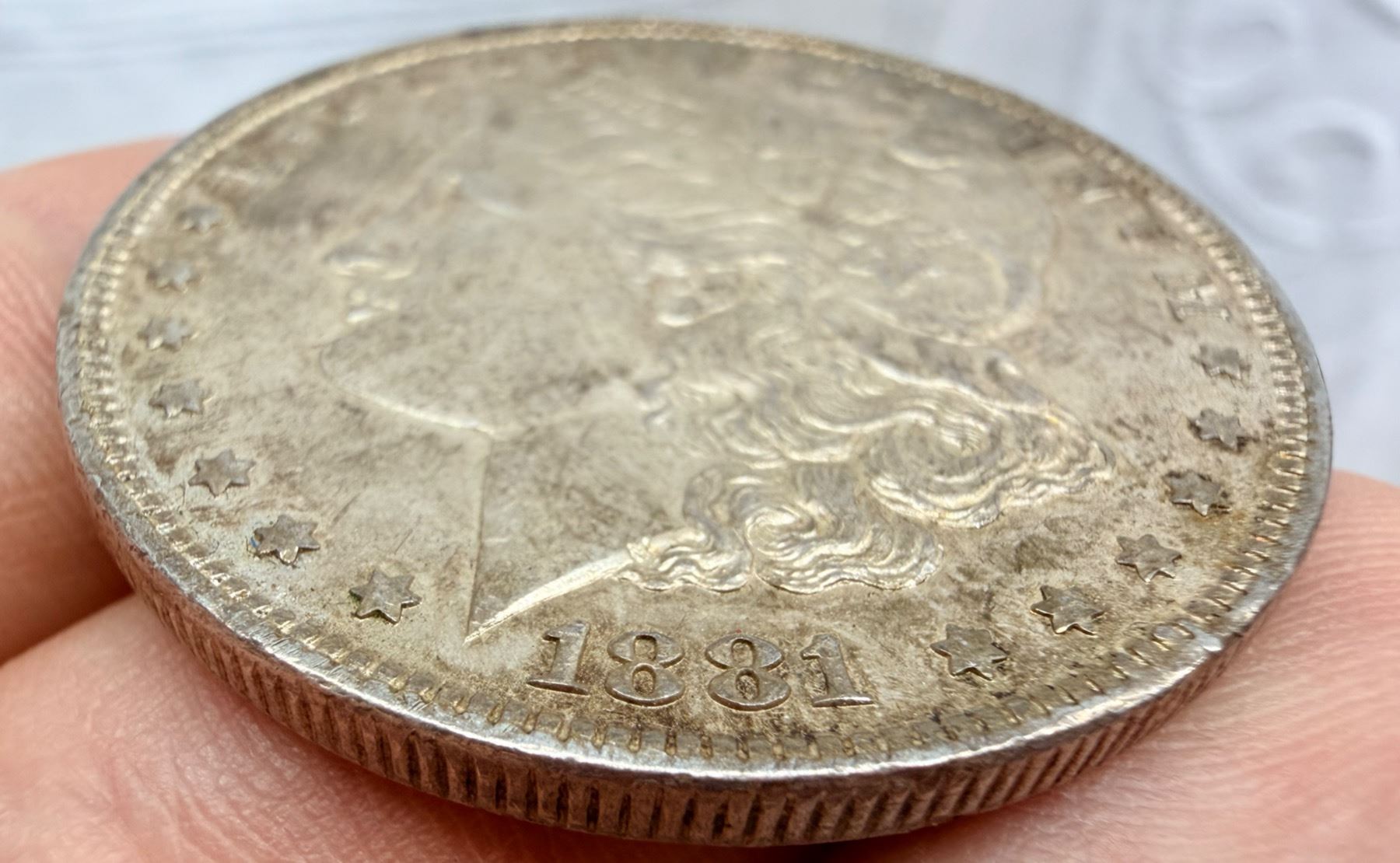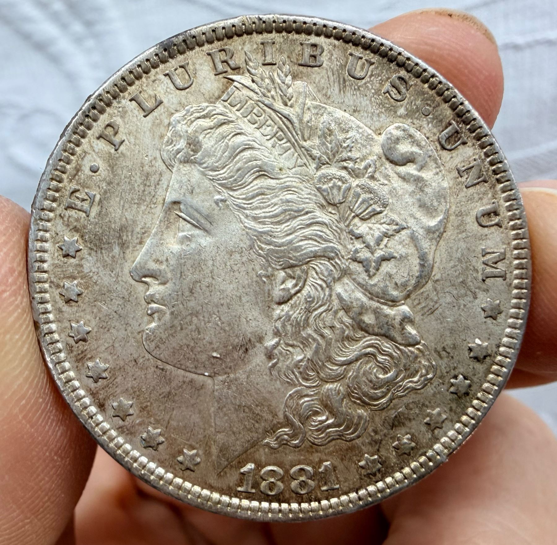 THE MORGAN SILVER DOLLAR IS 90 PERCENT SILVER AND 10 PERCENT COPPER WITH A TOTAL WEIGHT OF 26.73 GRAMS CONTAINS 0.77344 TROY OUNCES OF PURE SILVER AND WAS MINTED FROM 1878-1904 AND 1921