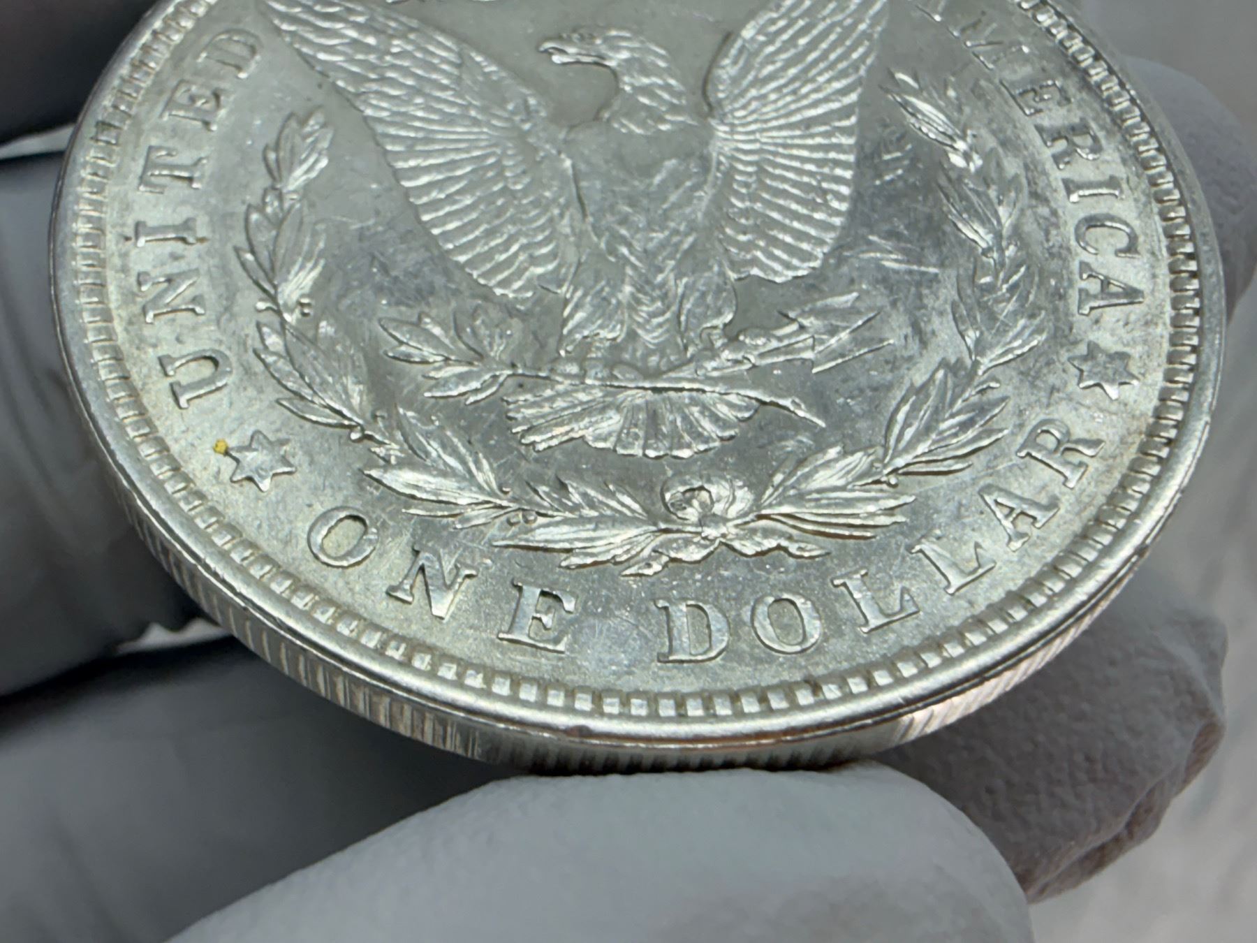 THE MORGAN SILVER DOLLAR IS 90 PERCENT SILVER AND 10 PERCENT COPPER WITH A TOTAL WEIGHT OF 26.73 GRAMS, CONTAINS 0.77344 TROY OUNCE OF PURE SILVER, AND WAS MINTED FROM 1878-1904 AND 1921