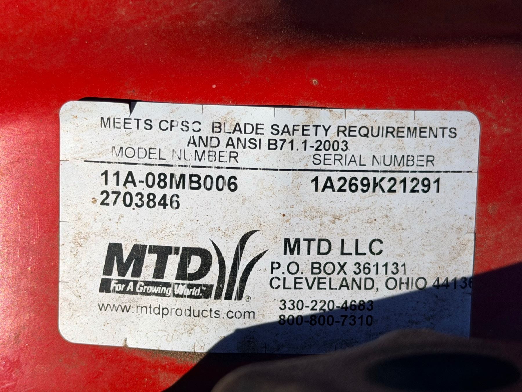 MODEL 11A-08MB006; S/N: 1A269K21291