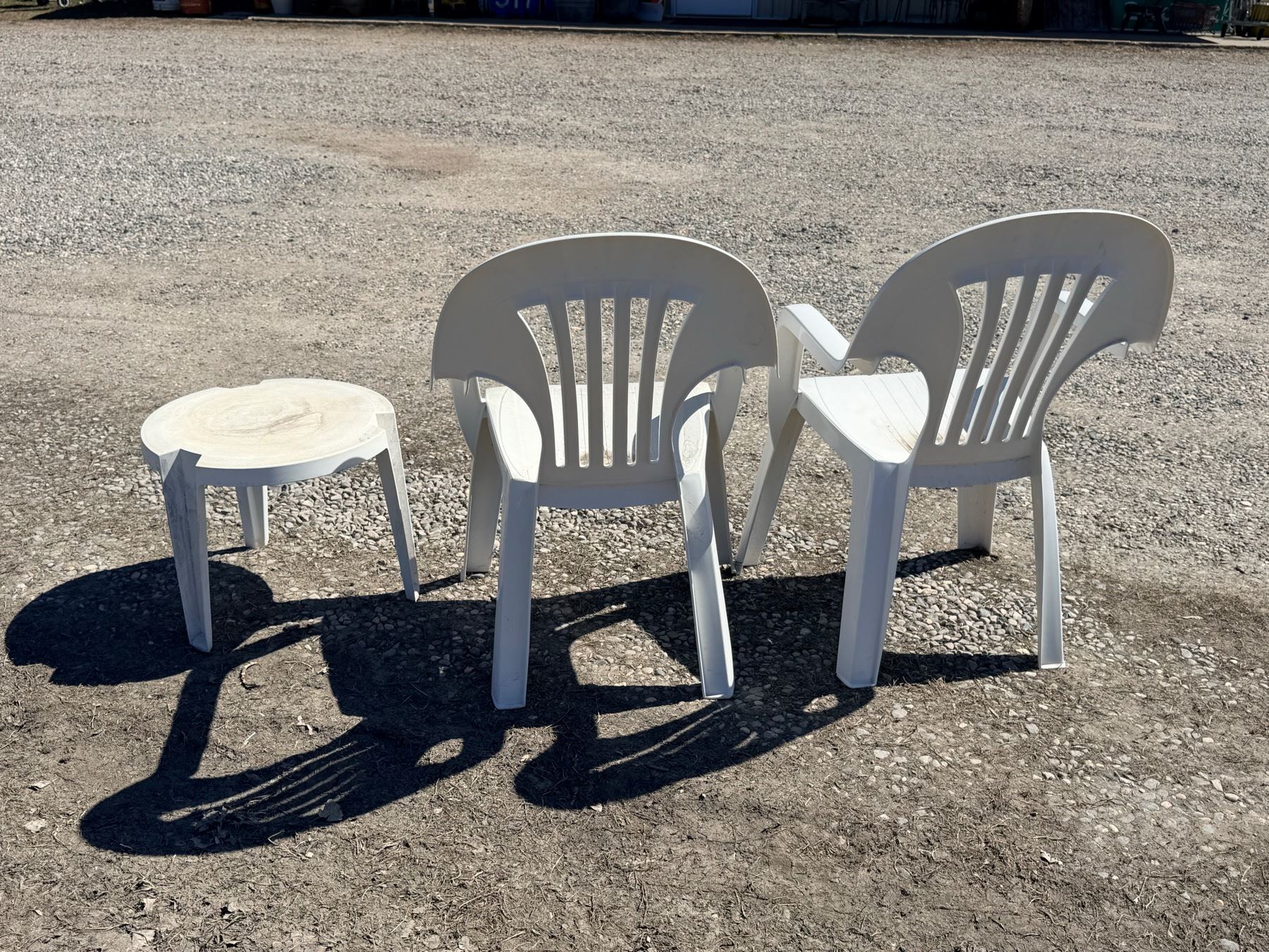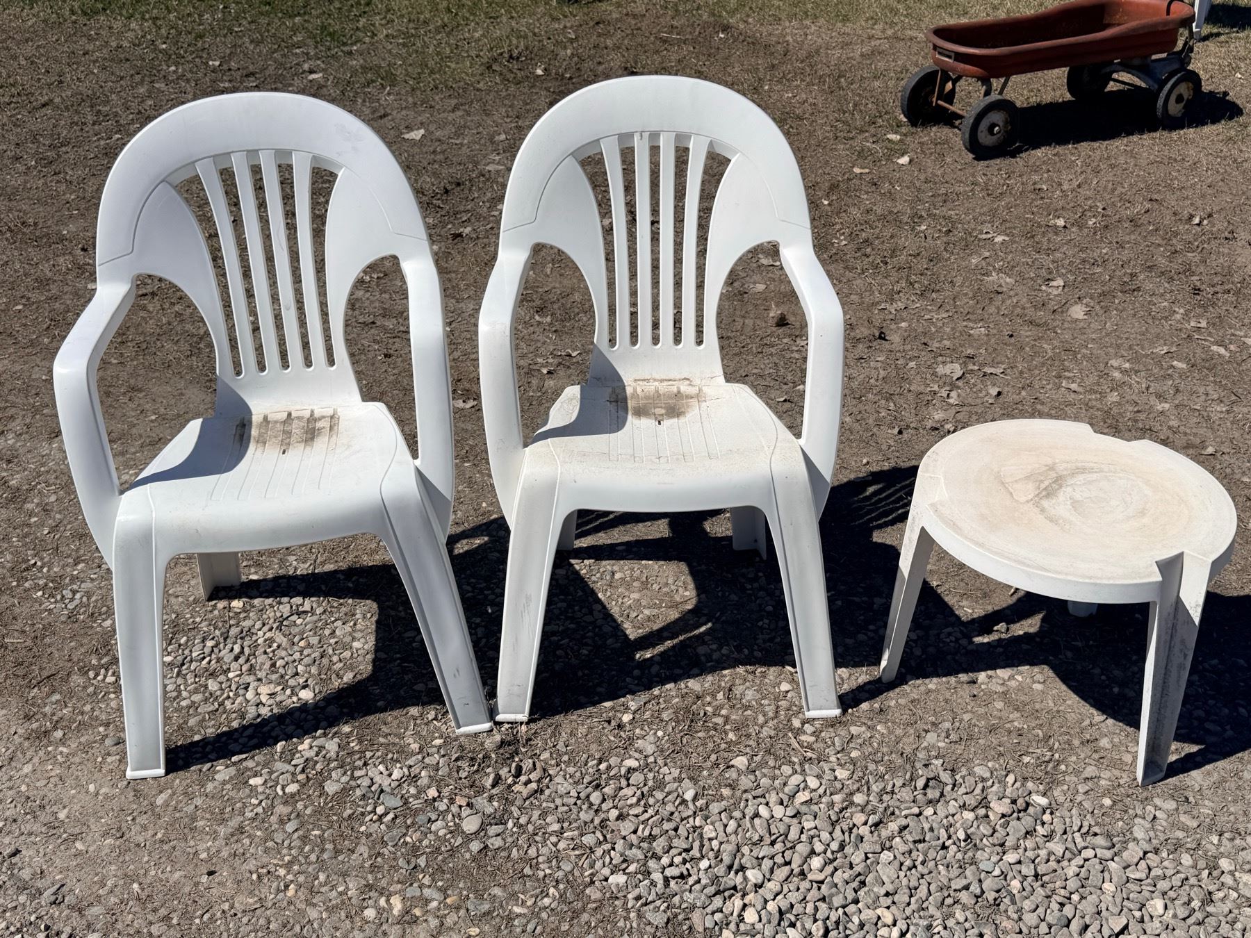 PATIO CHAIRS AND SMALL TABLE - TWO CHAIRS AND SMALL SIDE TABLE