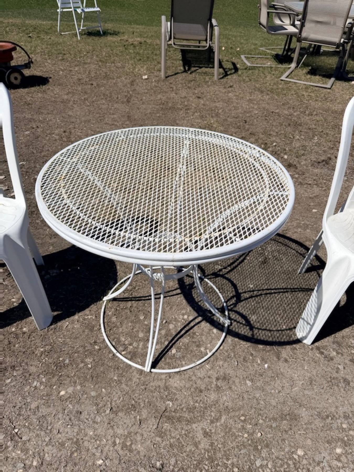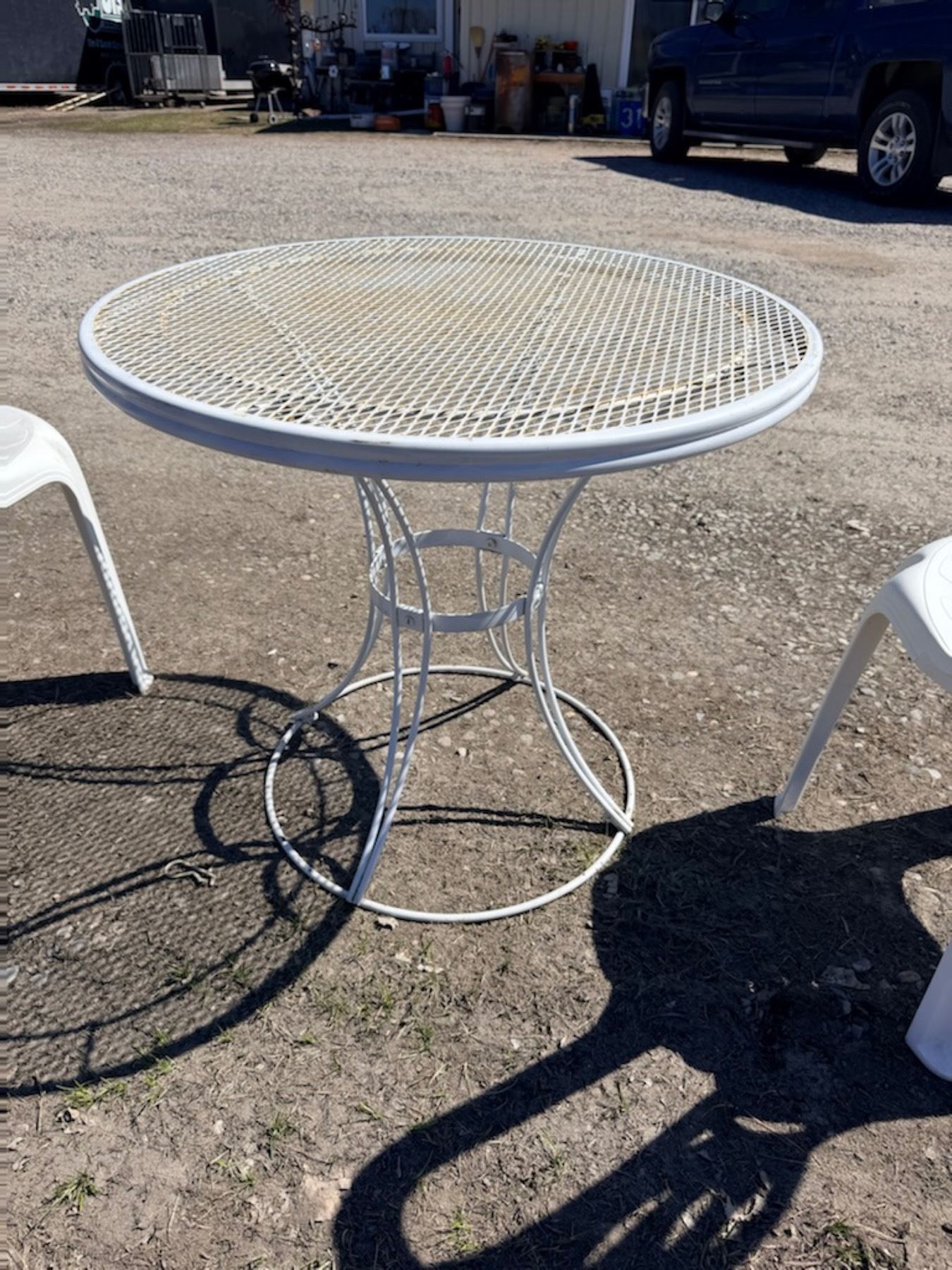 MID-CENTURY STYLE WROUGHT IRON AND MESH PATIO TABLE