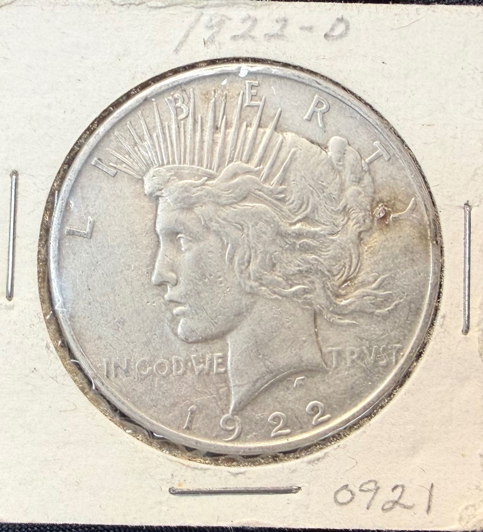 PEACE SILVER DOLLAR - 1922D; DENVER MINT
