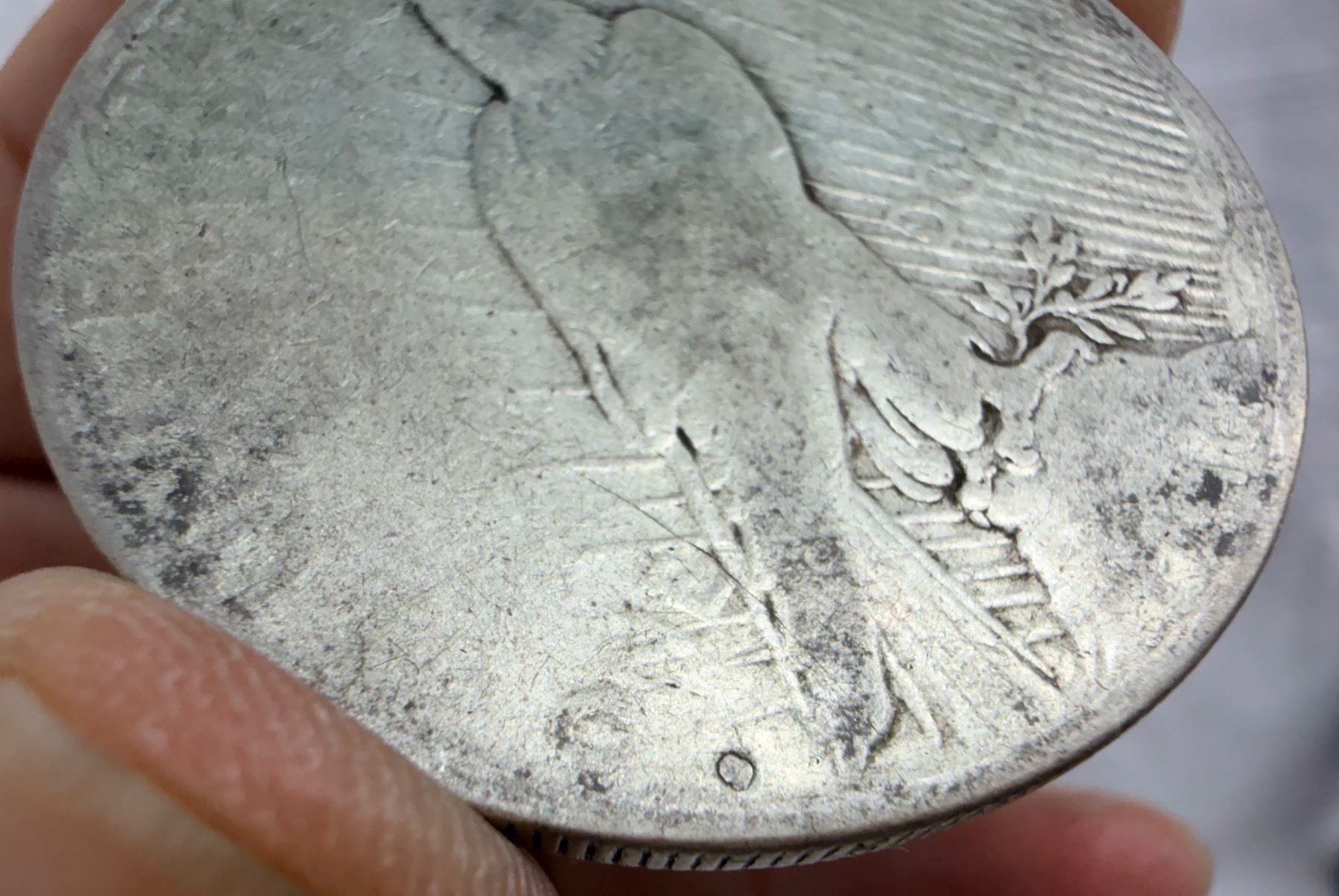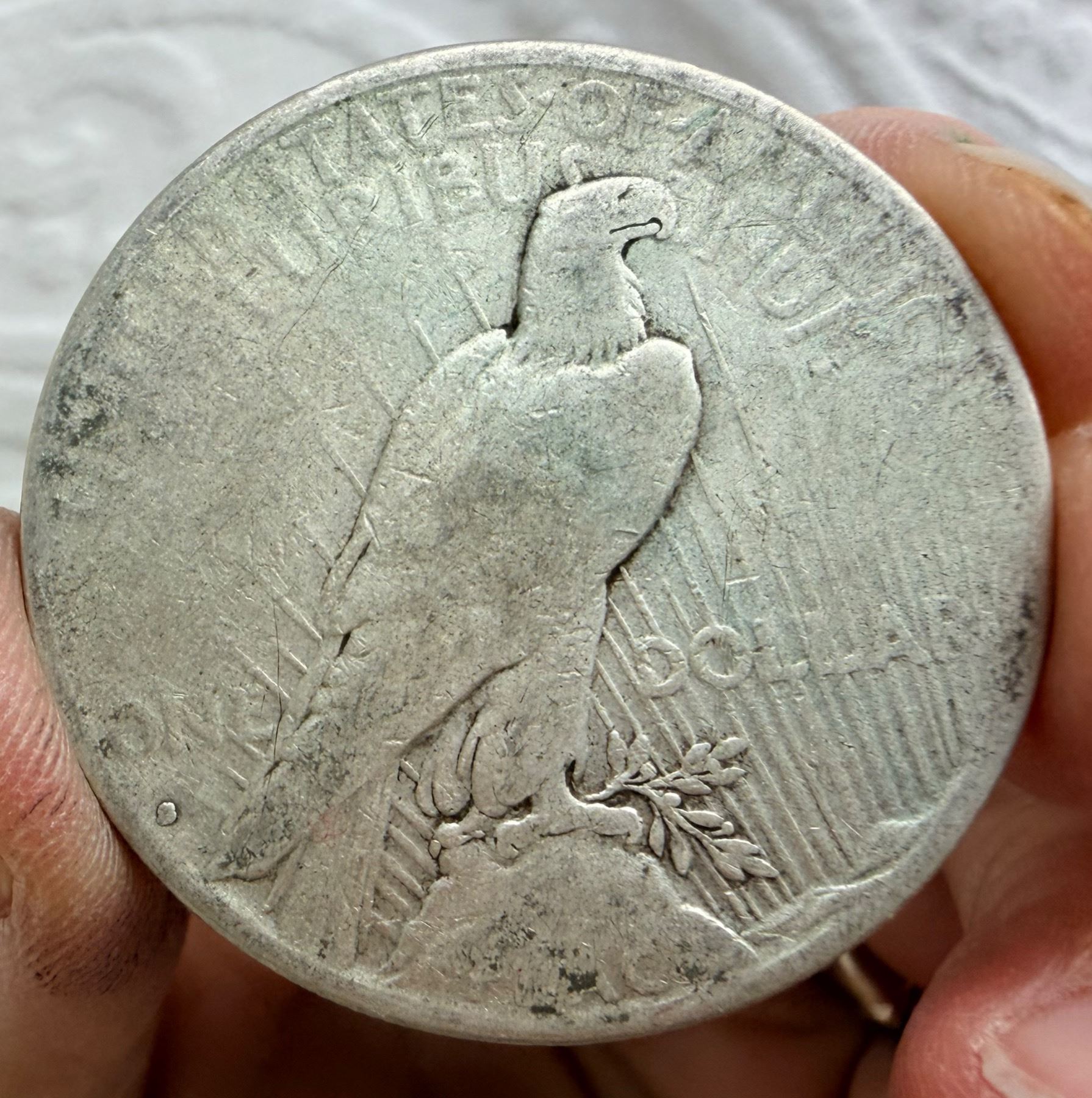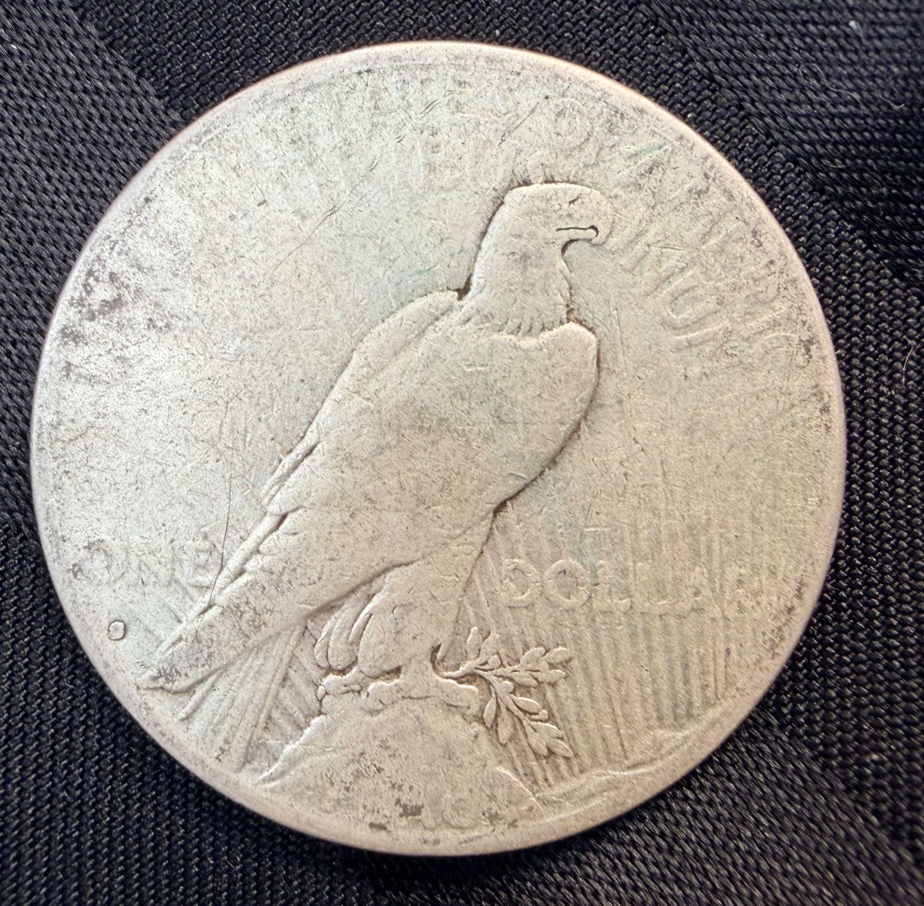 THE PEACE SILVER DOLLAR IS 90 PERCENT SILVER AND 10 PERCENT COPPER WITH A TOTAL WEIGHT OF 26.73 GRAMS, CONTAINS 0.77344 TROY OUNCE OF PURE SILVER, AND WAS MINTED FROM 1878-1904 AND 1921