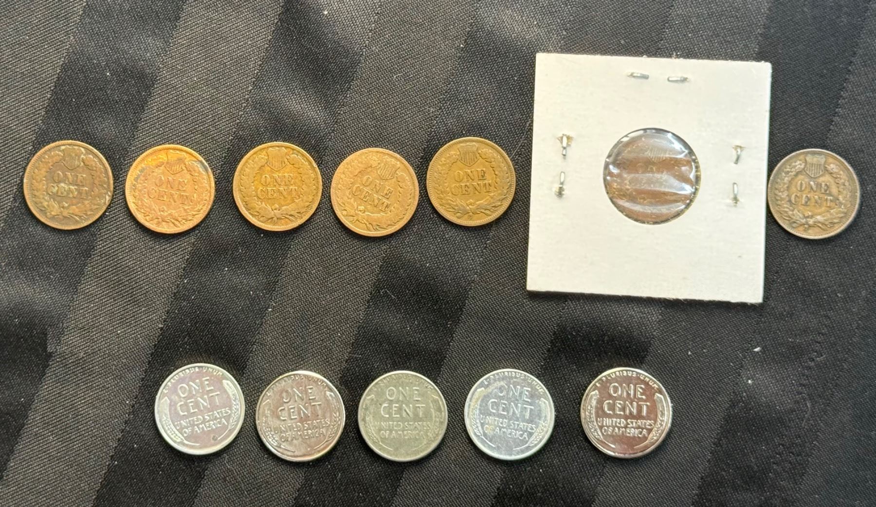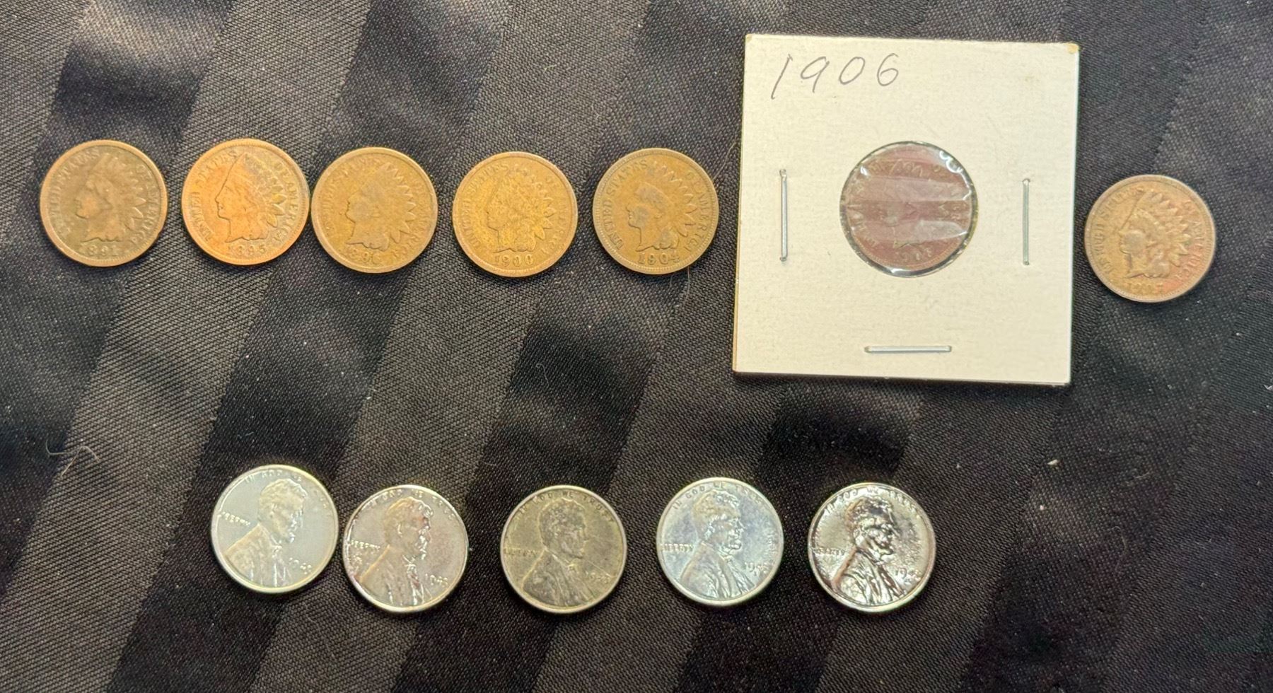 PENNIES - INDIAN HEAD CENTS (X7) AND 1943 "STEEL" PENNIES (X5)
