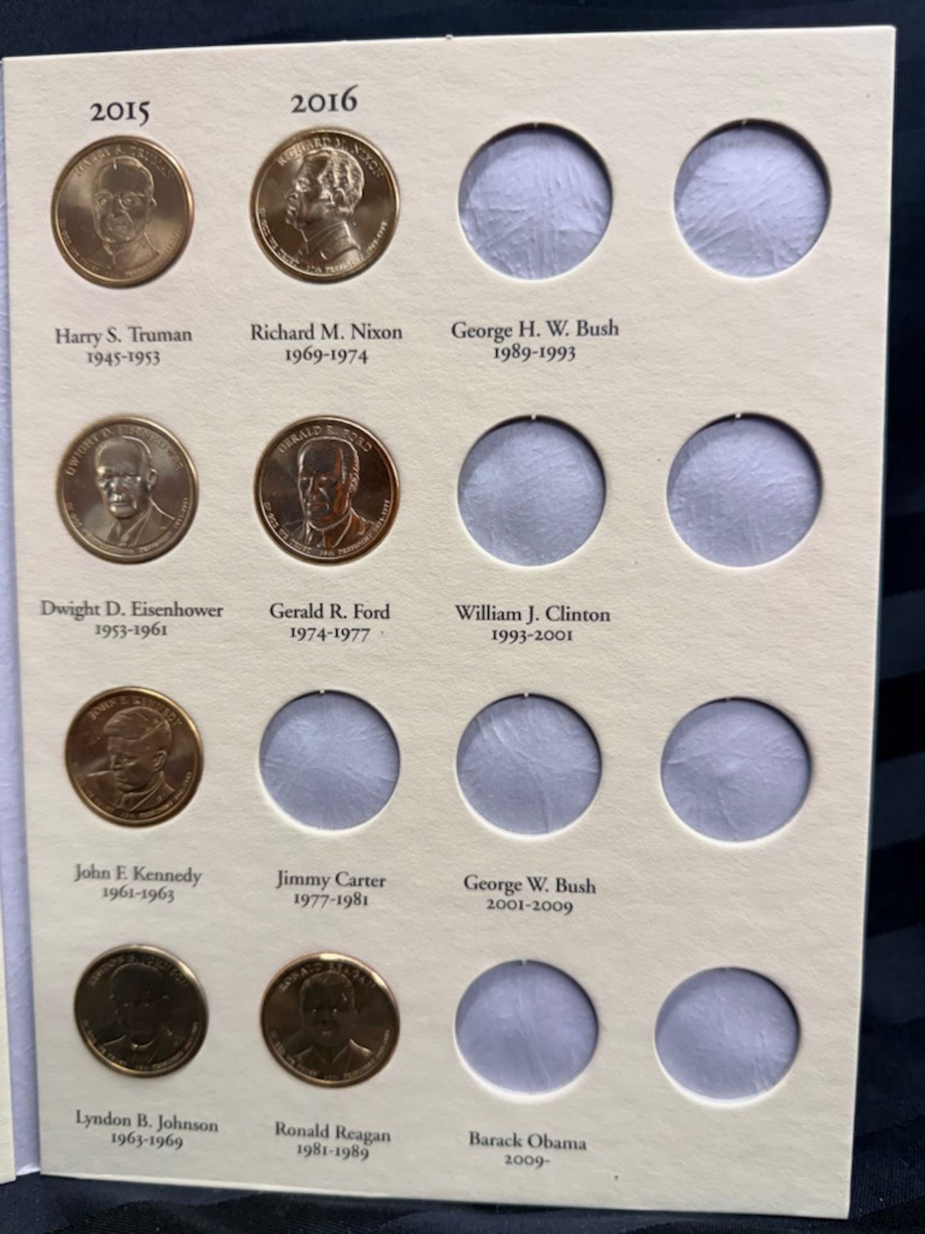 THE SET CONCLUDED IN 2016, BUT A SPECIAL 2020 US MINT ISSUE FOR GEORGE H.W. BUSH WAS PRODUCED; THERE HAS NOT BEEN A COIN PRODUCED FOR JIMMY CARTER, BUT THERE ARE PRIVATE, THIRD-PARTY RETAILERS FOR THE “MODERN PRESIDENTS” “COINS”