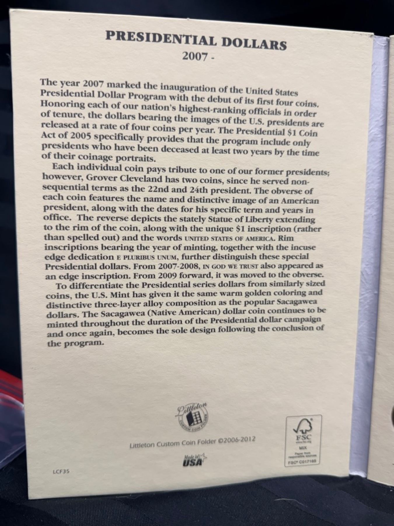 THE PRESIDENTIAL $1 COIN PROGRAM, INITIATED IN 2007 BY THE US MINT, FEATURES MANGANESE-BRASS CIRCULATING COINS HONORING DECEASED U.S. PRESIDENTS IN CHRONOLOGICAL ORDER.