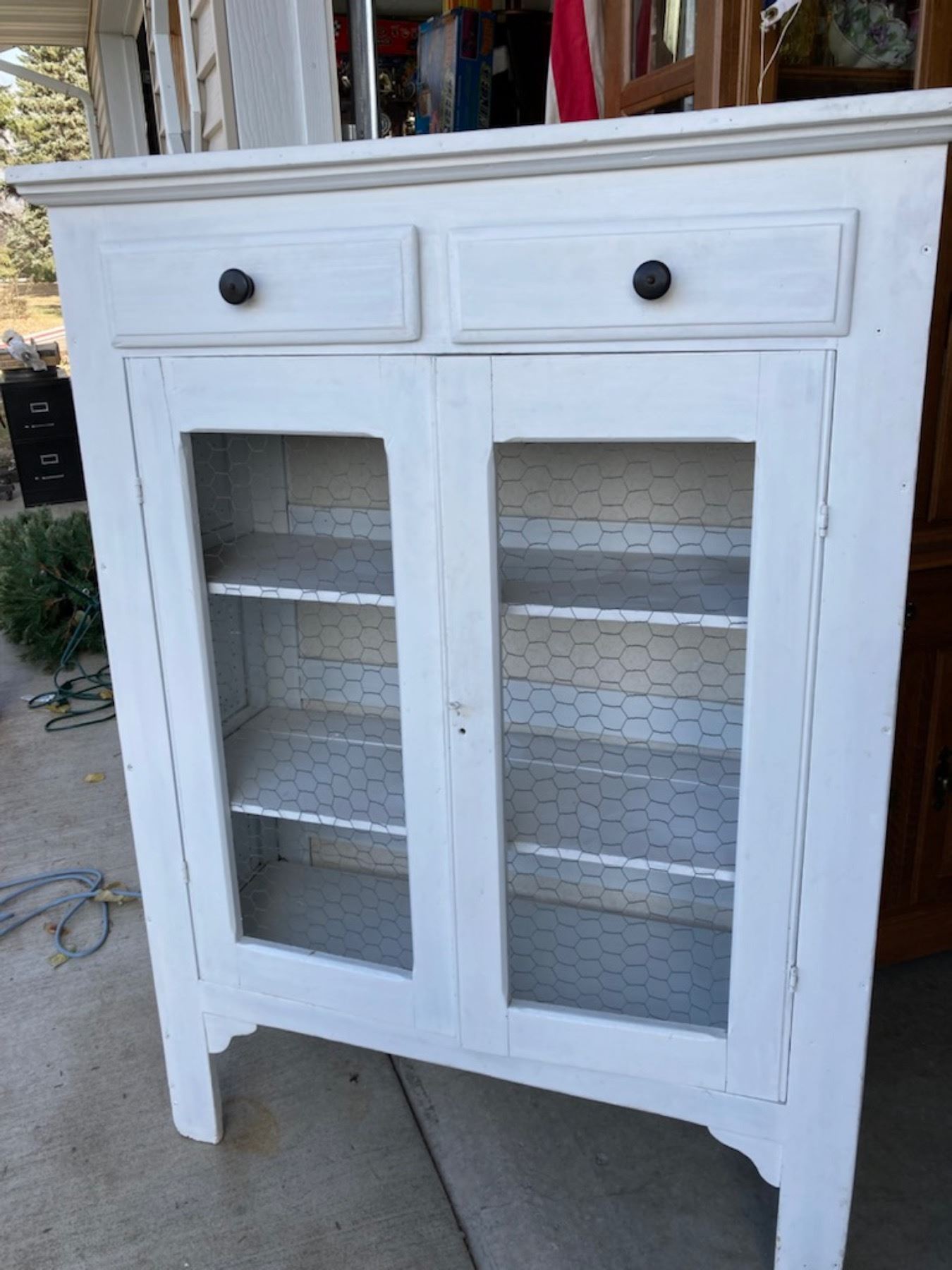 CUTE AS CUTE CAN BE. FEET OF THE CABINET HAVE SOME WEAR AND CAN EITHER BE SHORTENED OR REPAIRED.