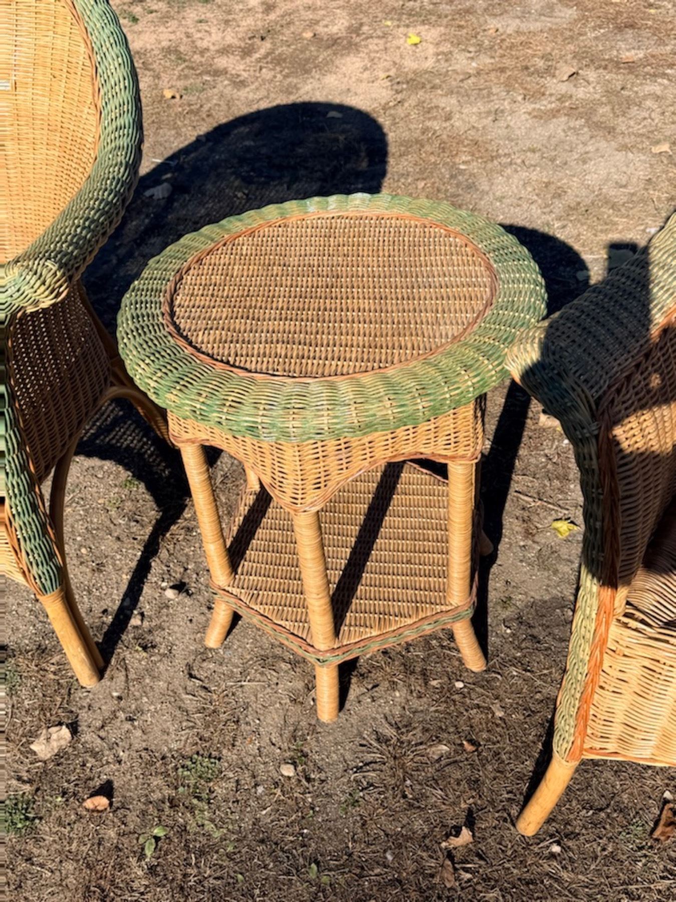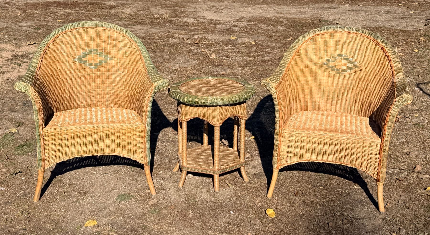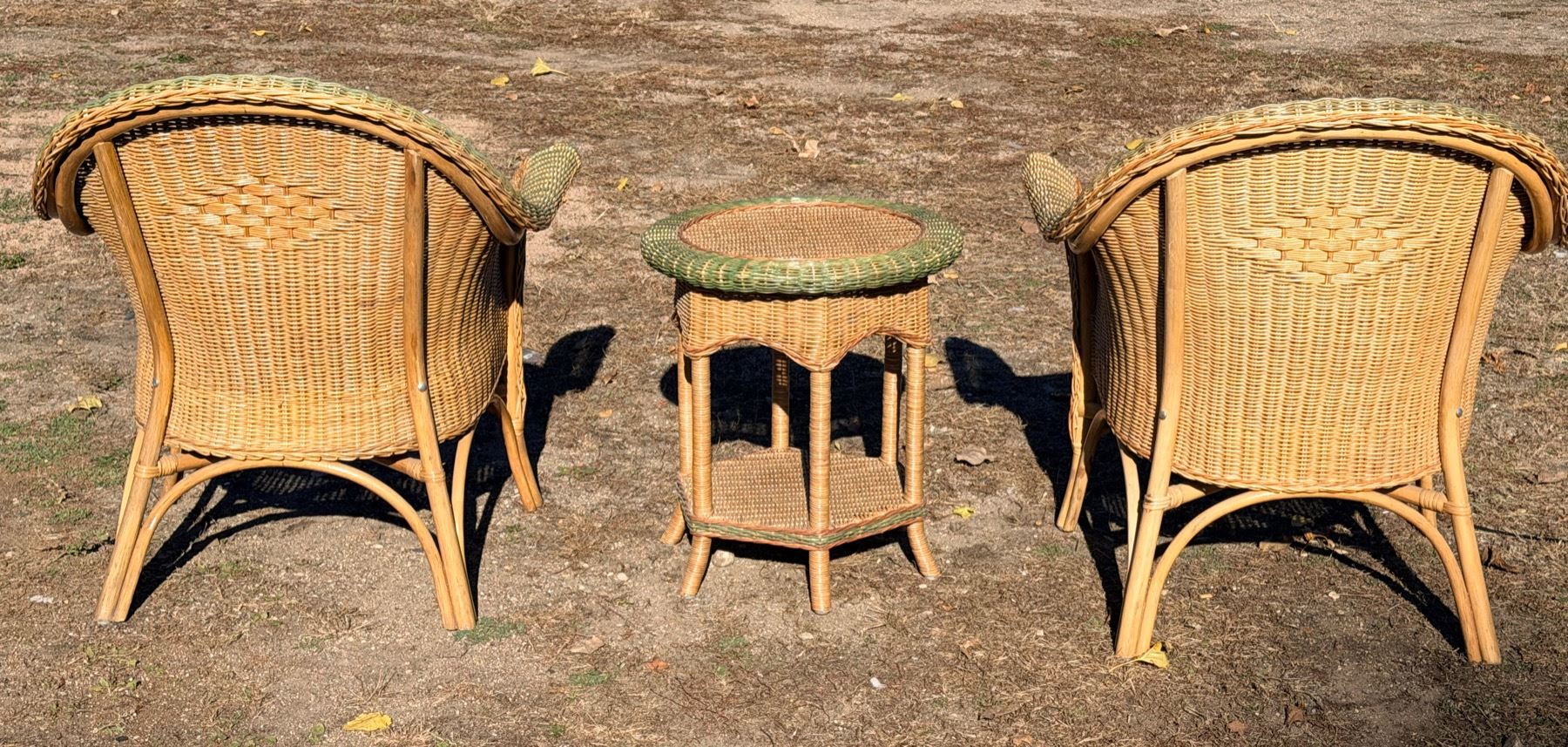 RATTAN SET, TWO CHAIRS AND A TABLE