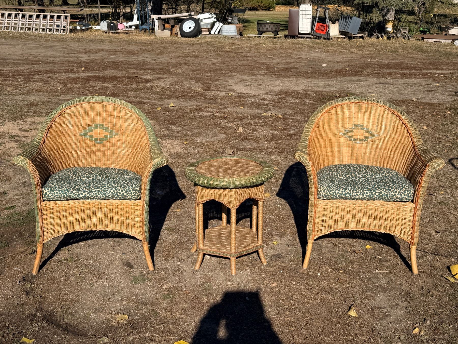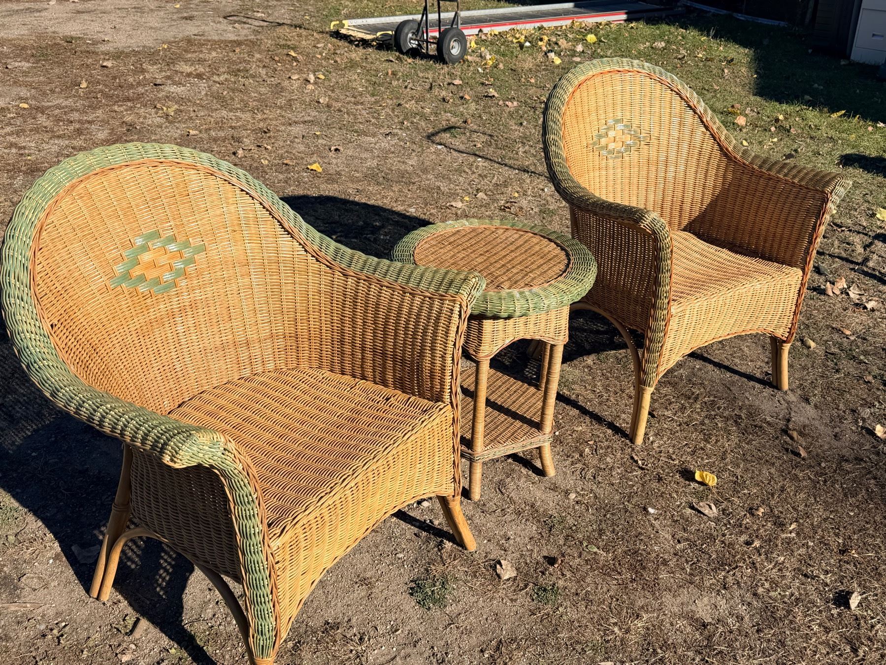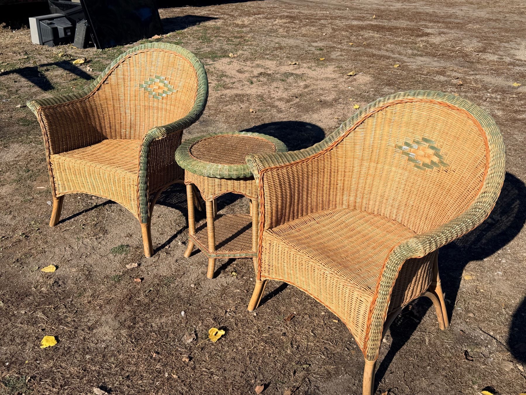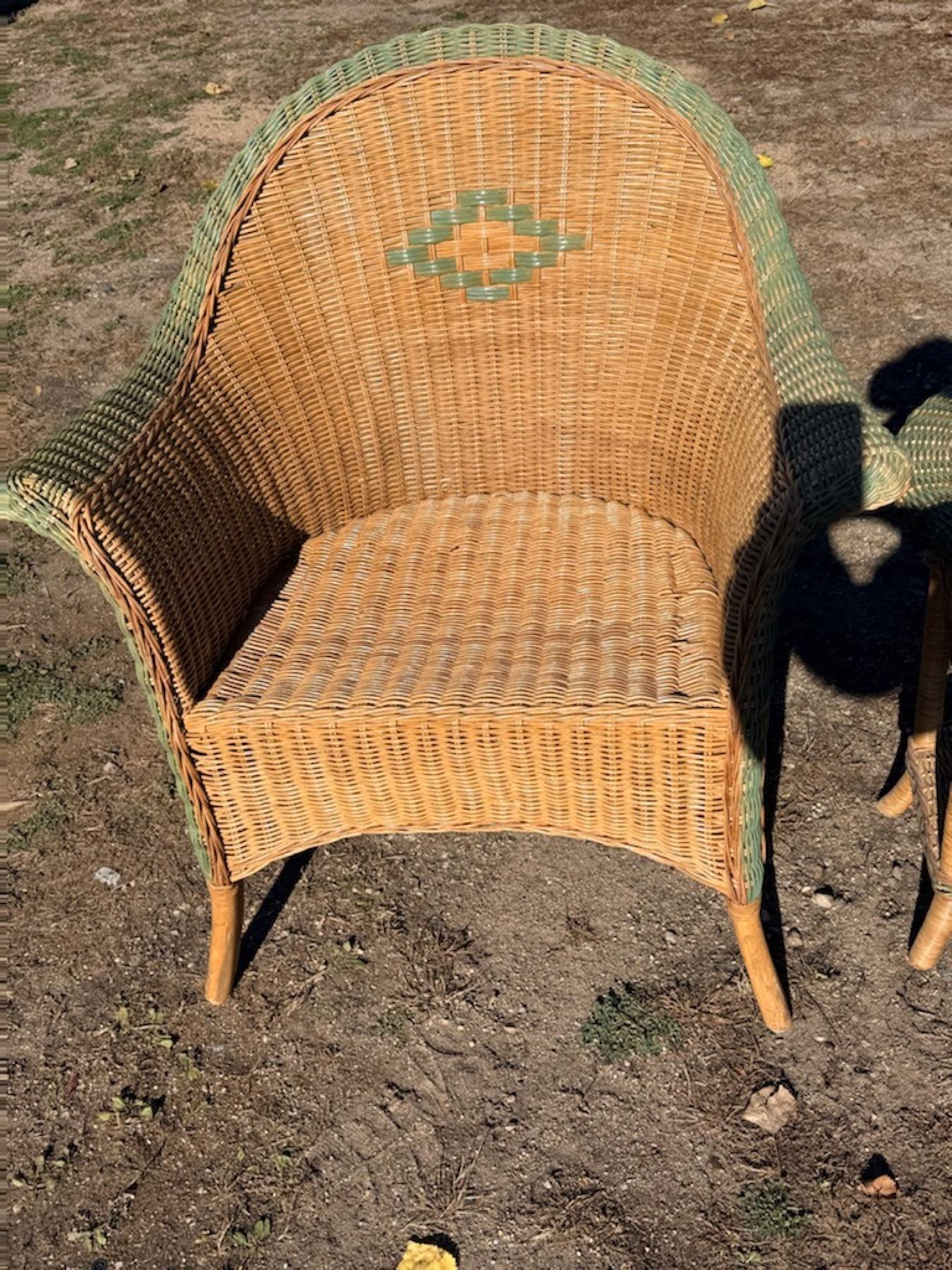 RATTAN SET, TWO CHAIRS AND A TABLE