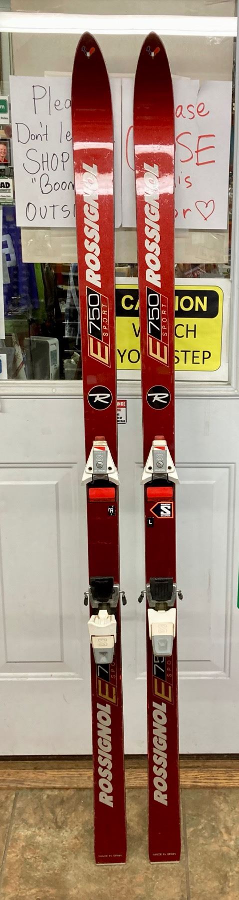ROSSIGNOL E750 SPORT PARABOLIC SKIS WITH SALOMON BINDINGS; 173 CM (68 INCHES)