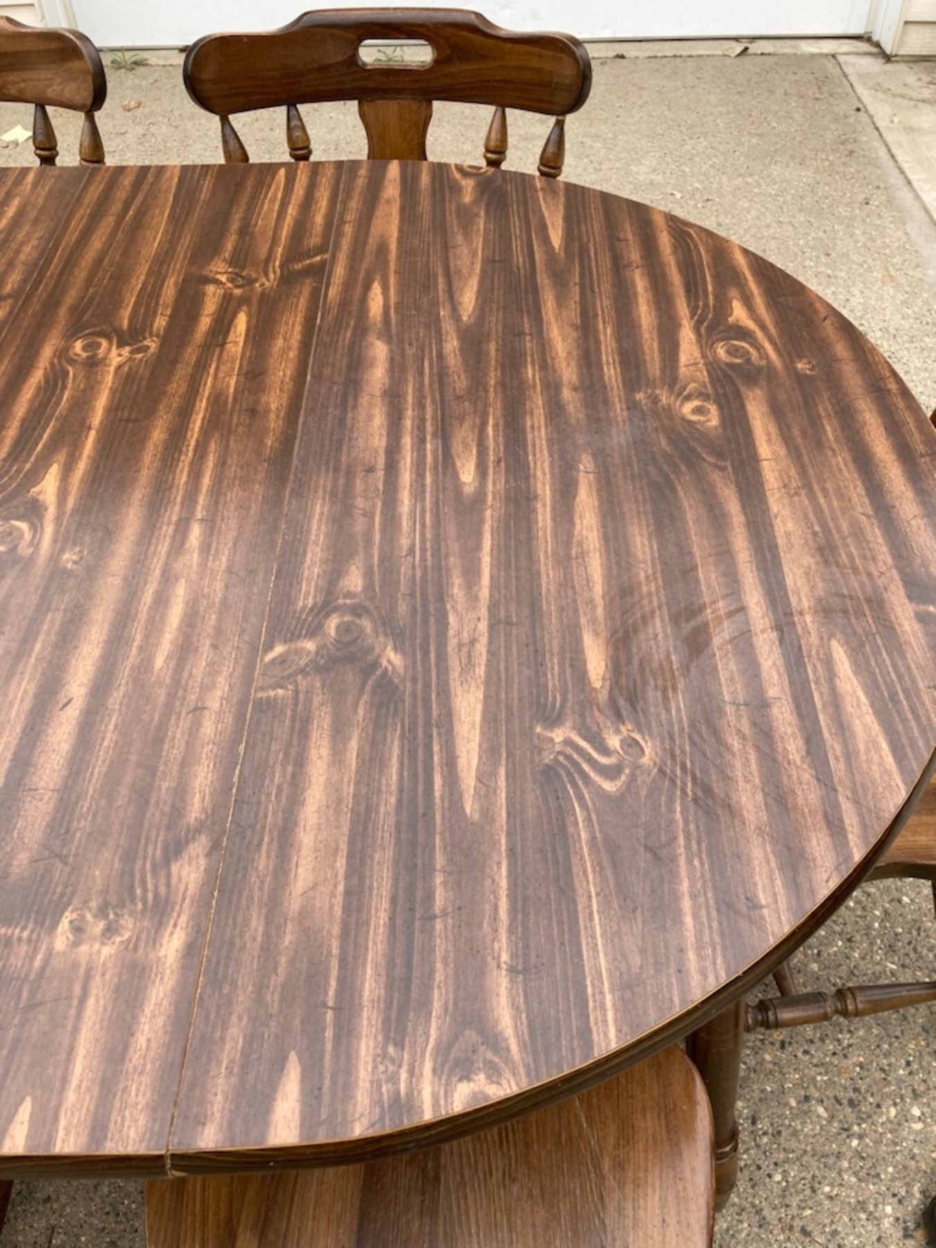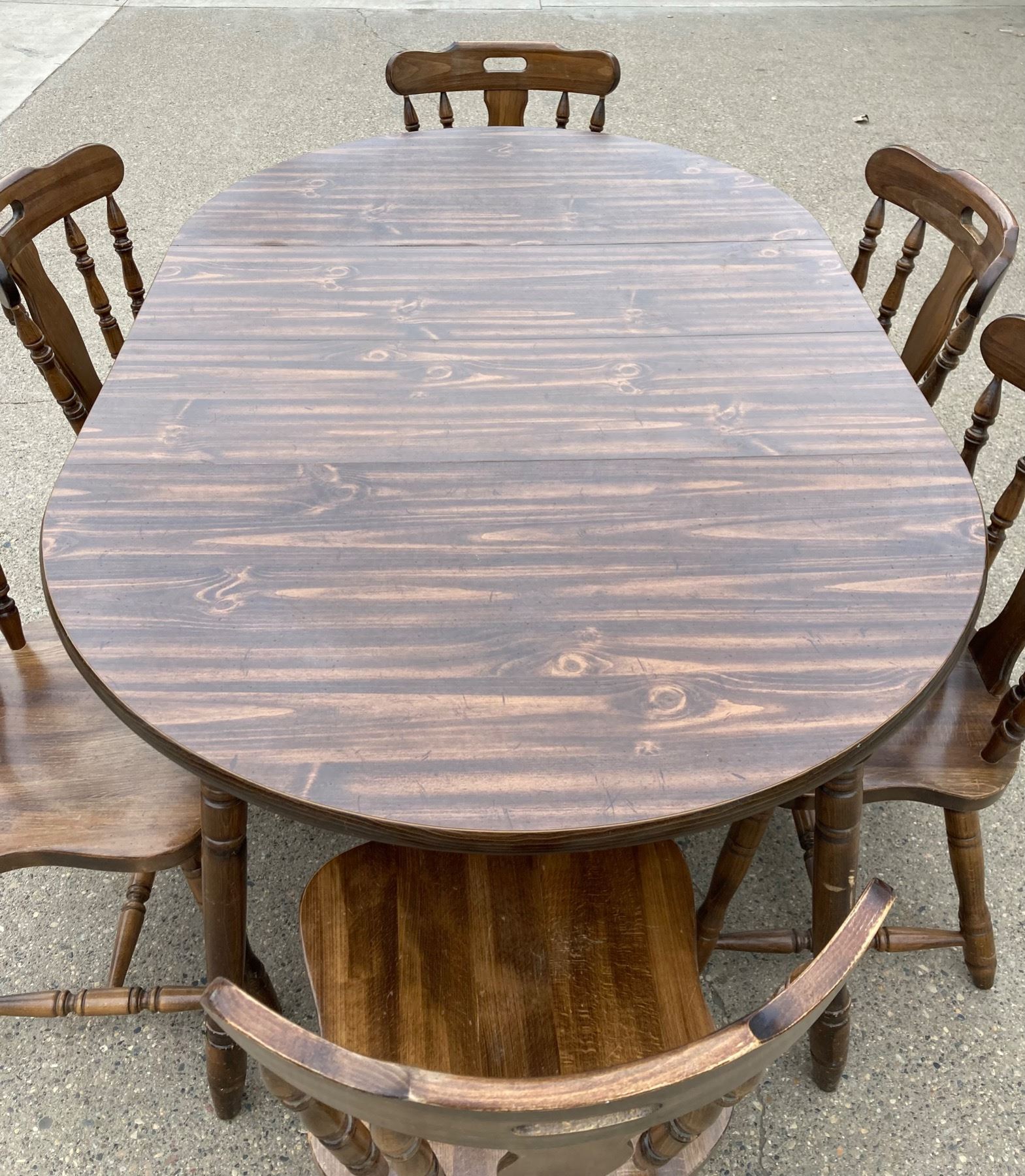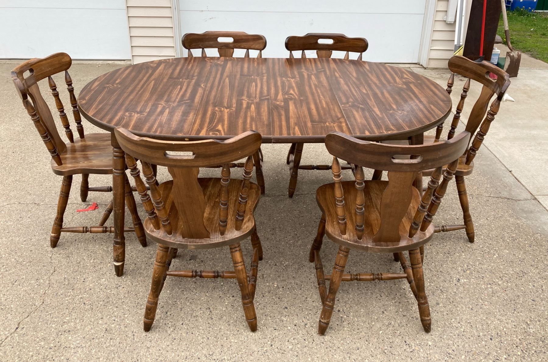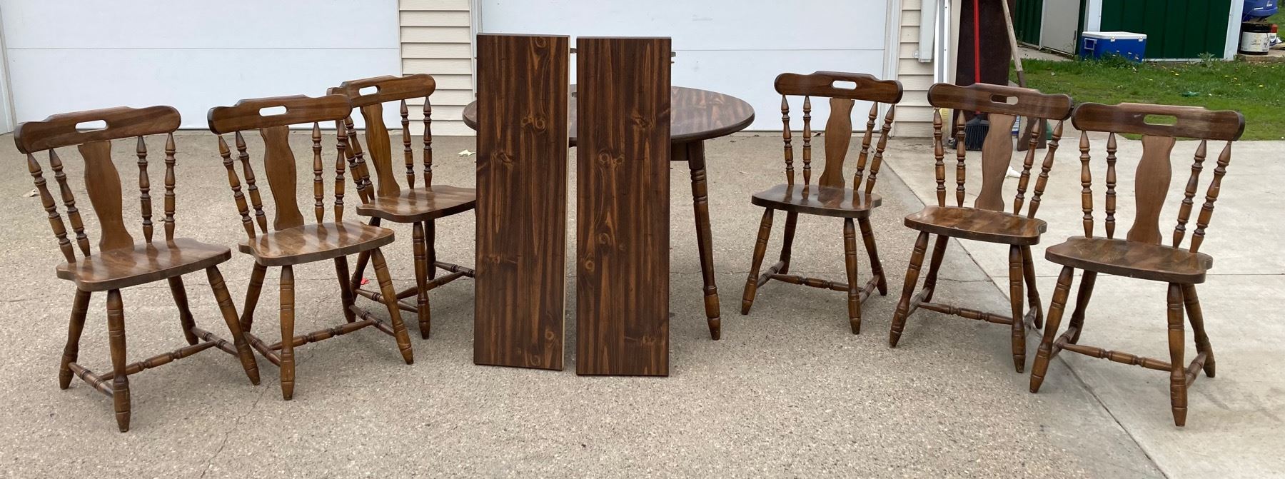 ROUND DINING TABLE WITH SIX CHAIRS AND TWO LEAVES
