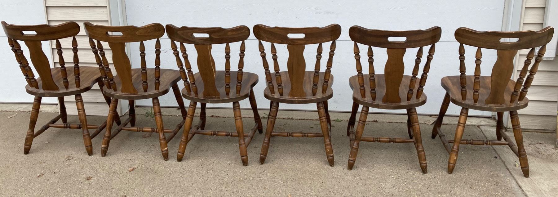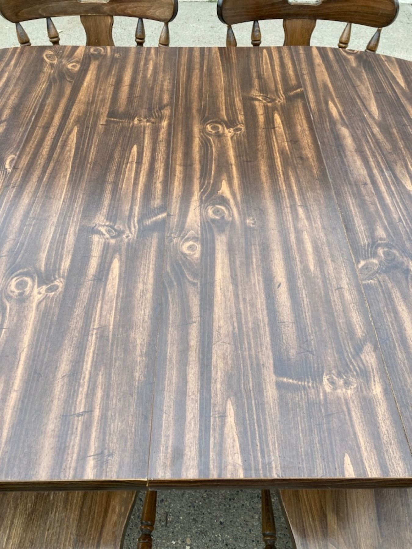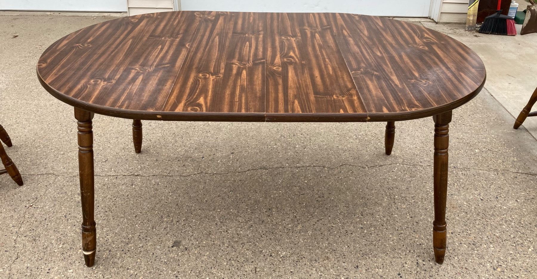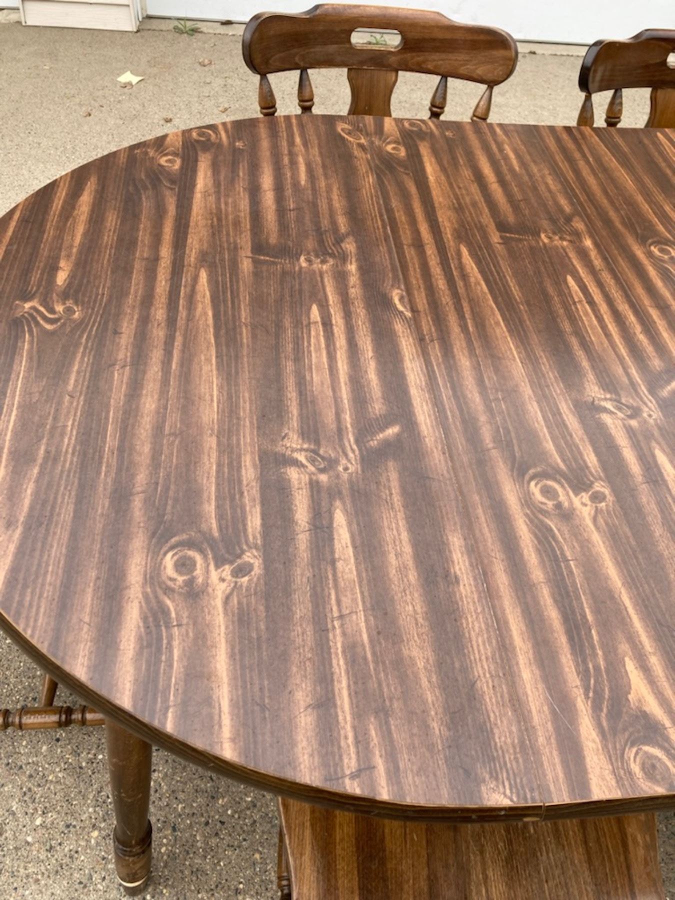 ROUND DINING TABLE WITH SIX CHAIRS AND TWO LEAVES