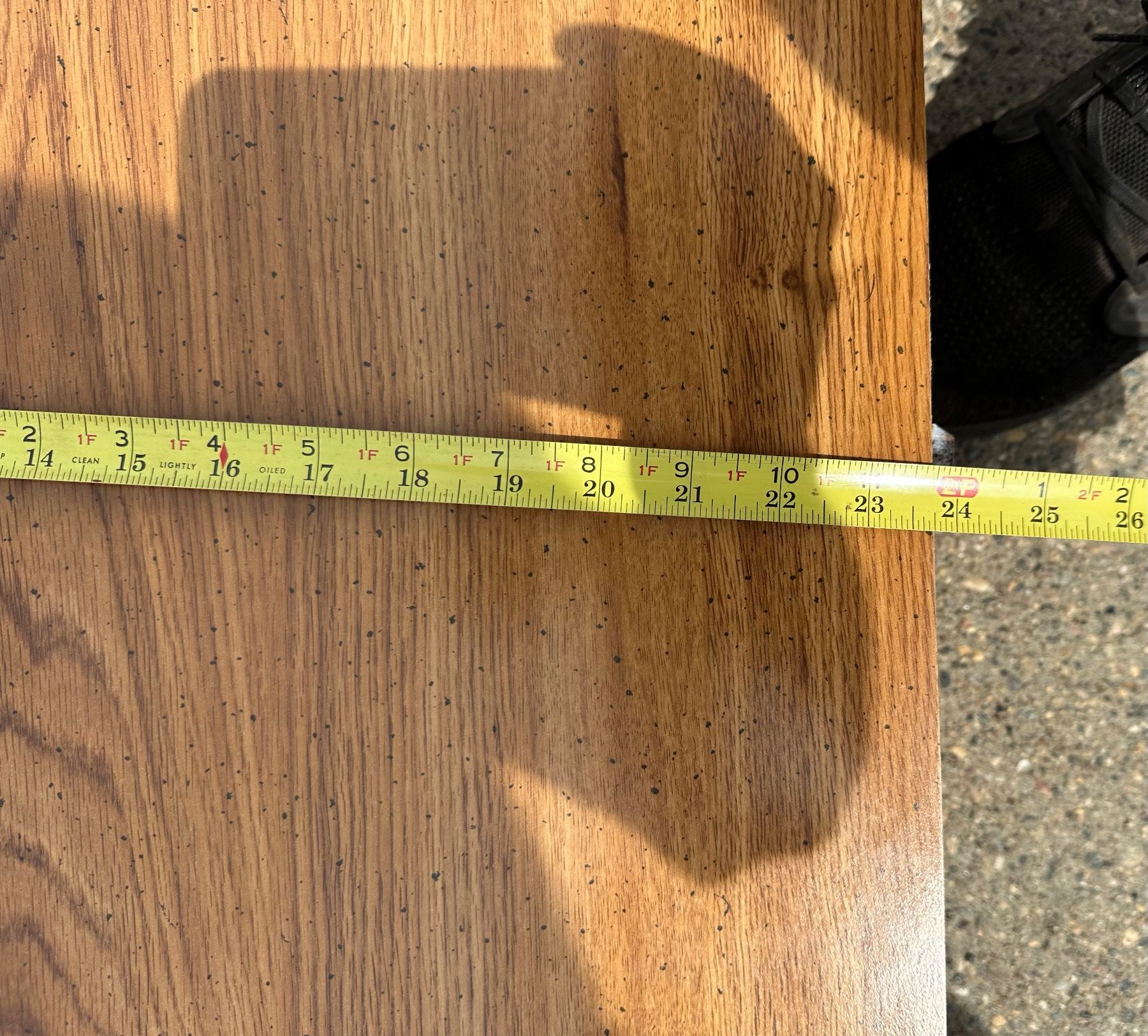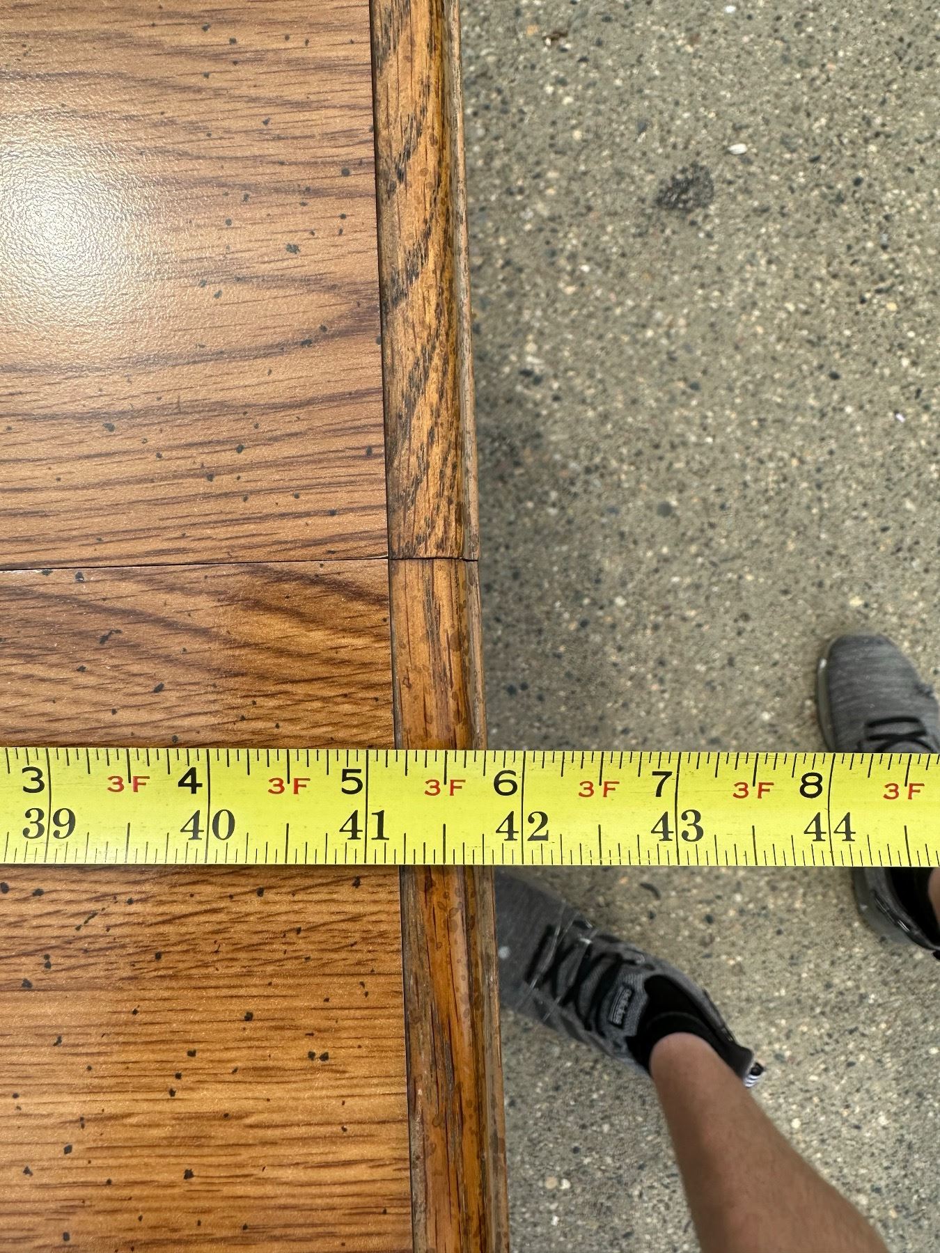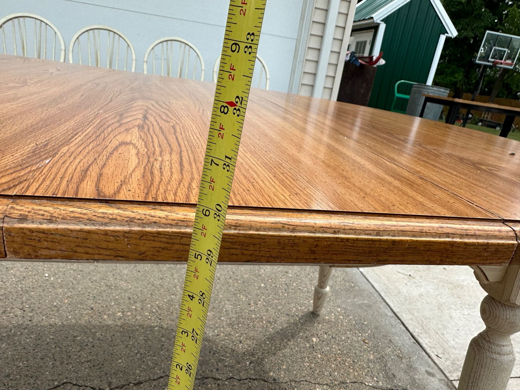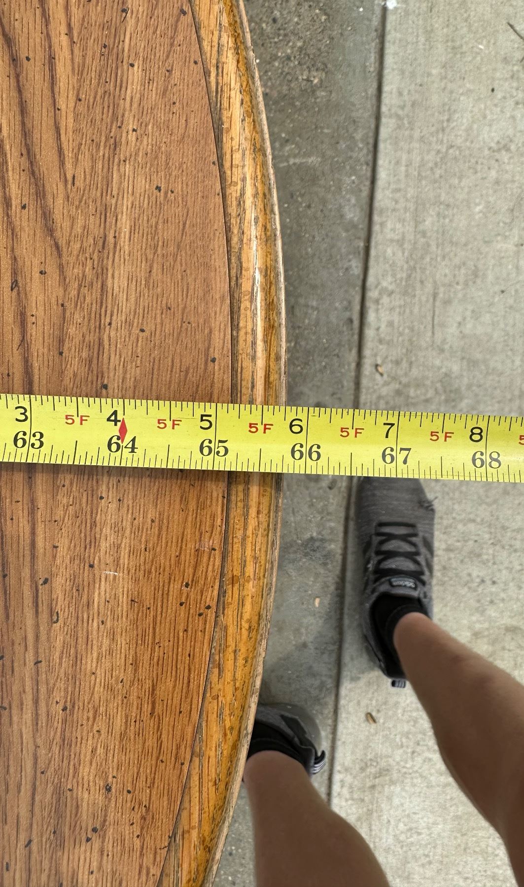 MEASURES APPROXIMATELY  3 FT 6 INCHES DIAMETER; 12-INCH LEAVES EXTEND TABLE TO 4.5 OR 5.5 FT TO FIT EVERYONE!