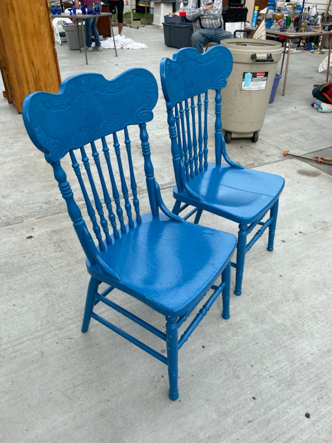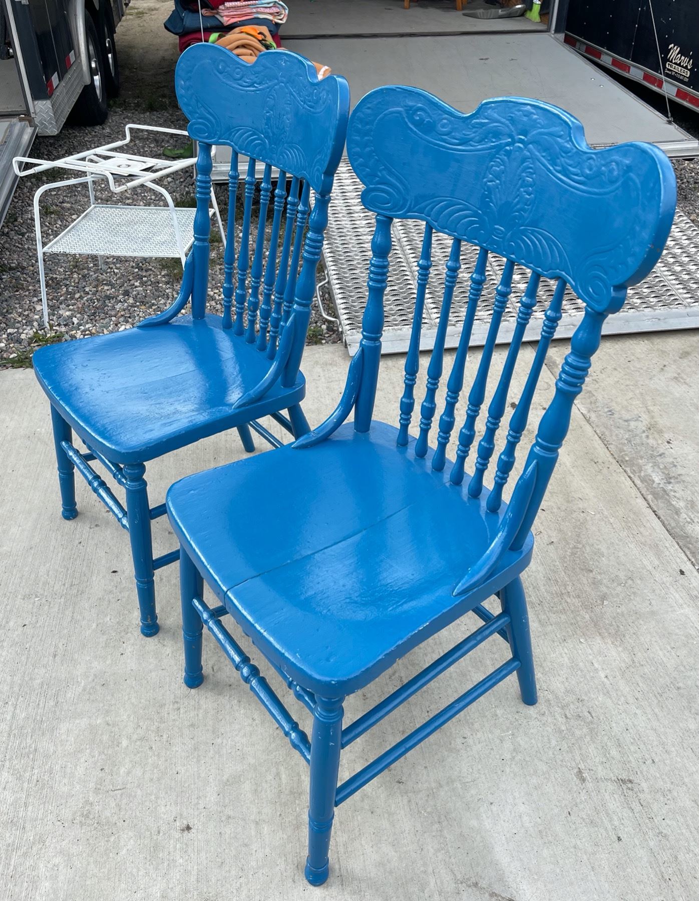 SET OF TWO, ANTIQUE, PRESSED BACK WOODEN CHAIRS; CAN BE PAINTED A DIFFERENT COLOR; NICE AND STURDY ACCENT CHAIRS