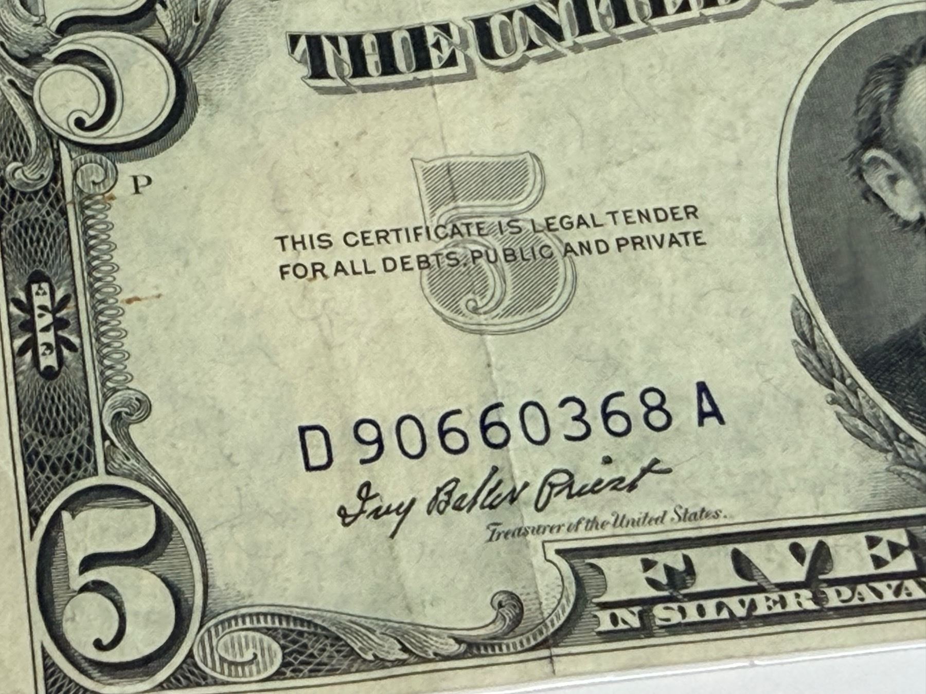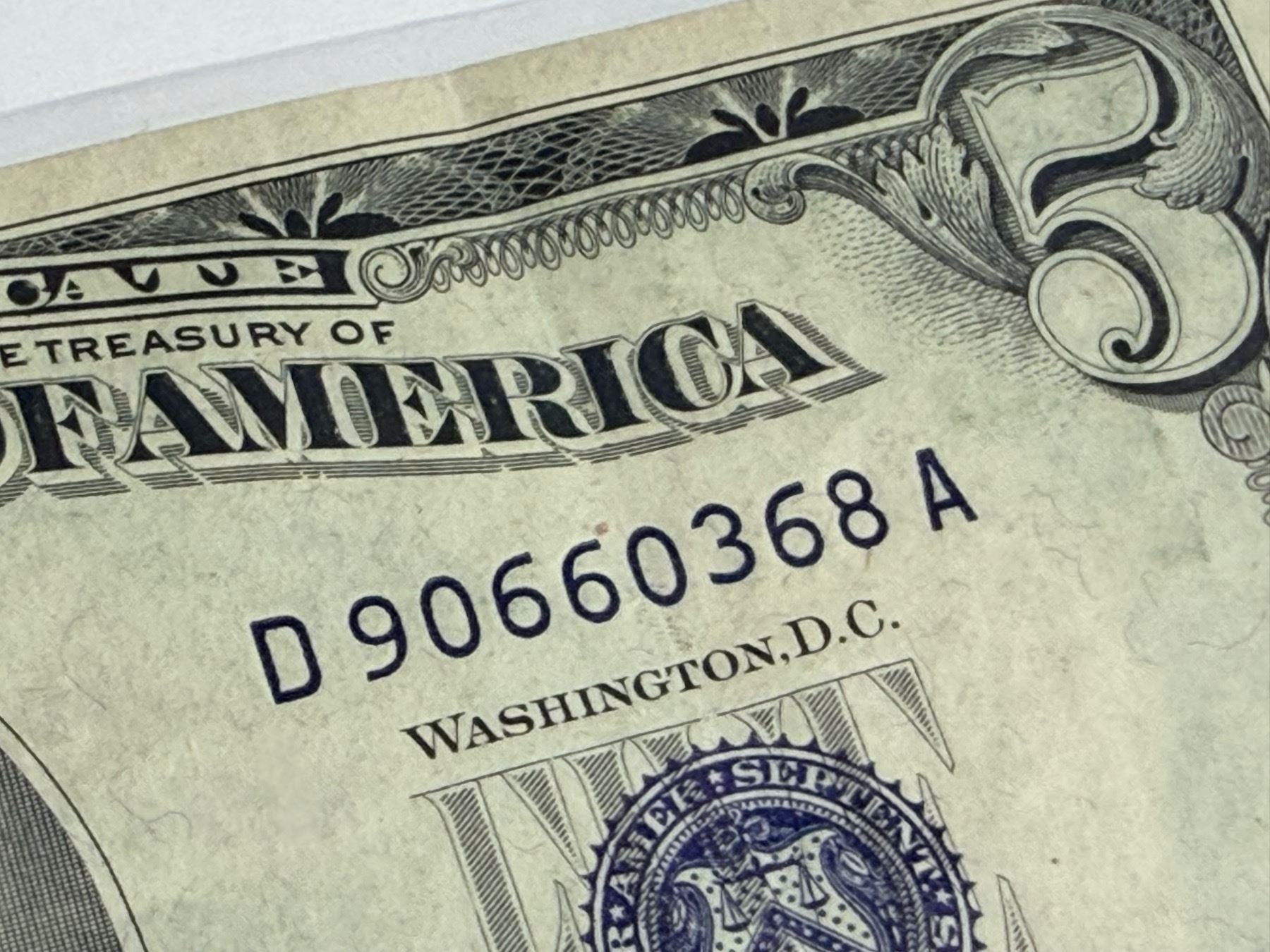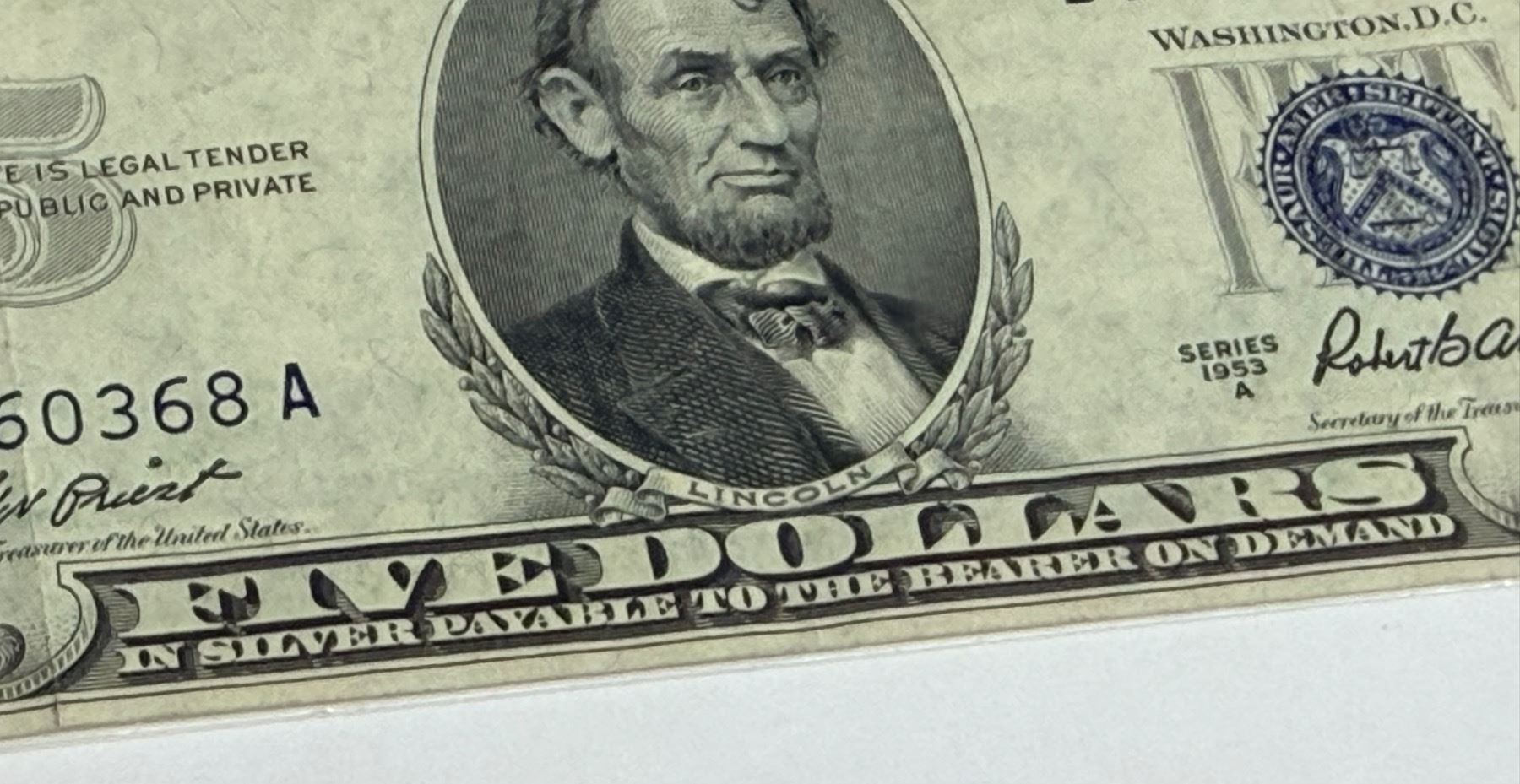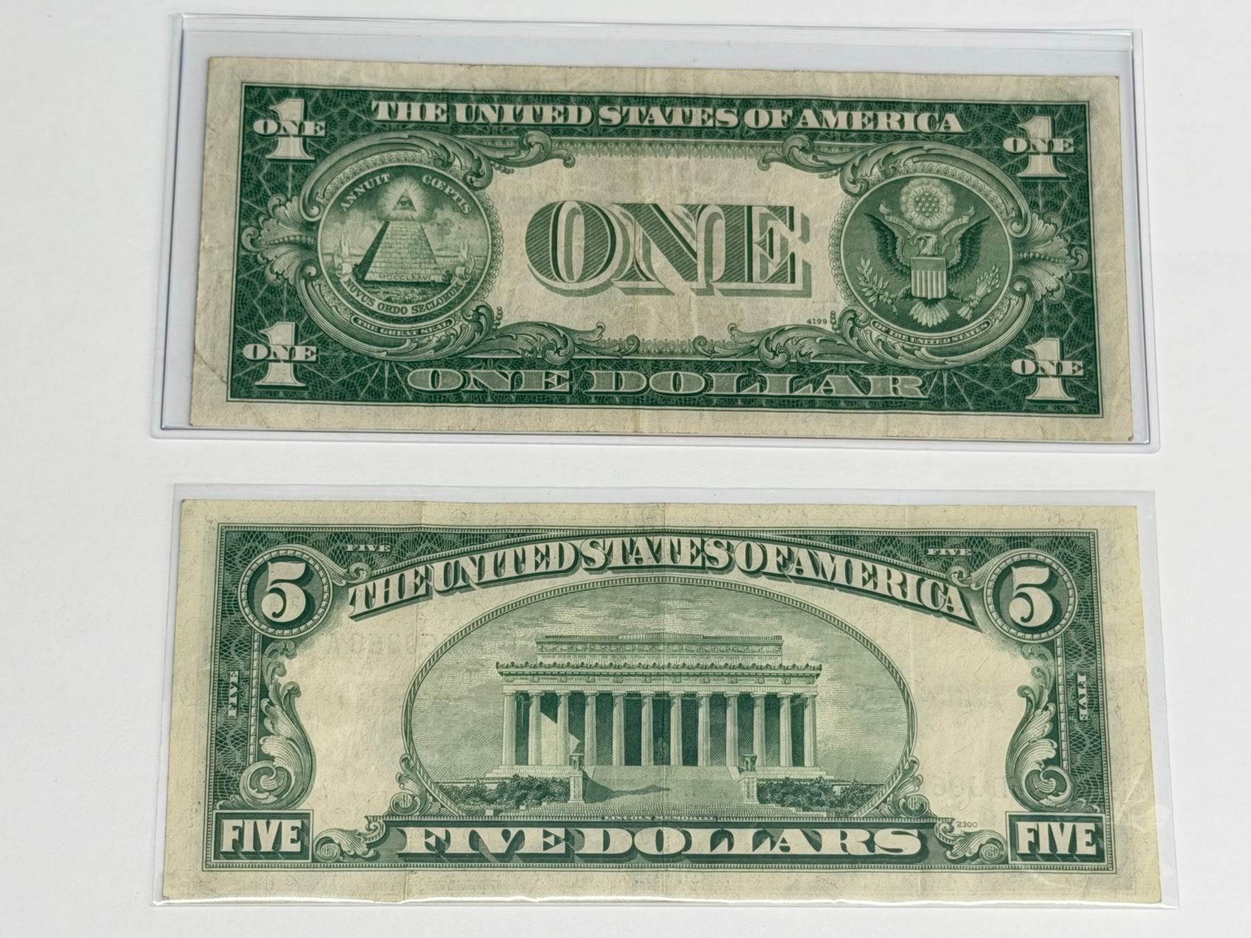SILVER CERTIFICATES - $5 SERIES 1953A, AND $1 SERIES 1935C - BLUE TREASURY SEALS
