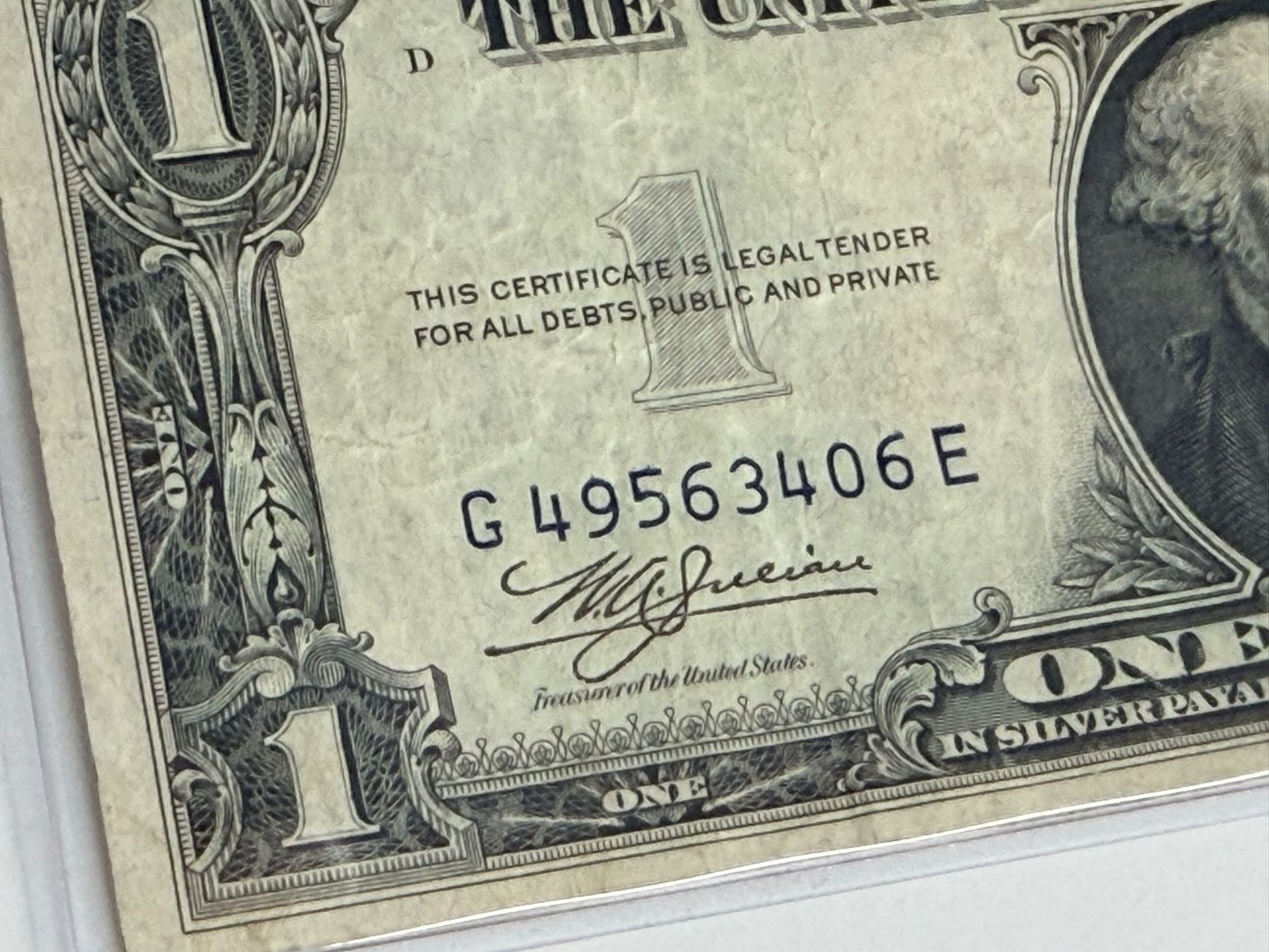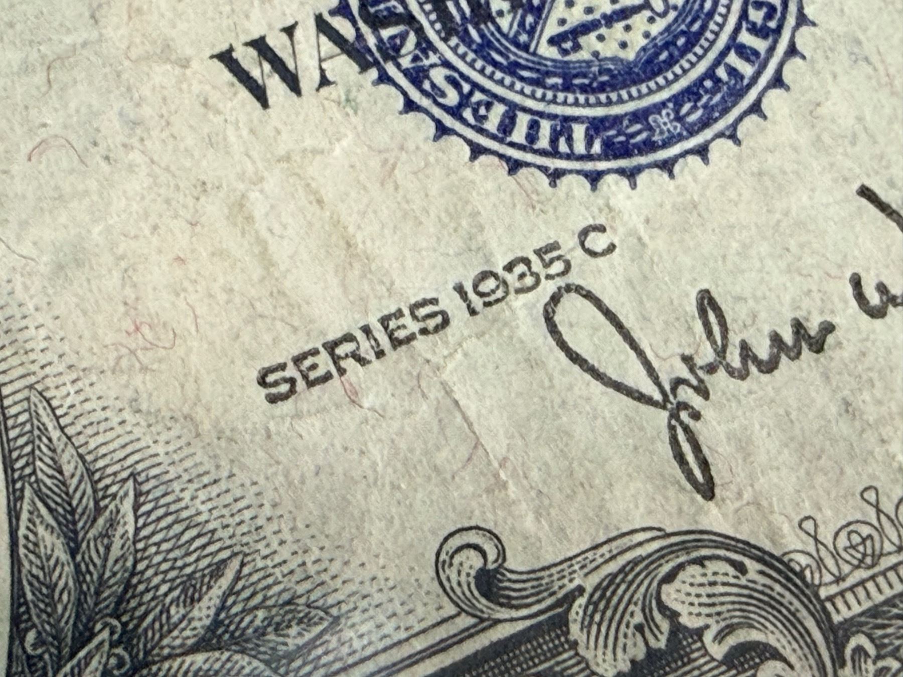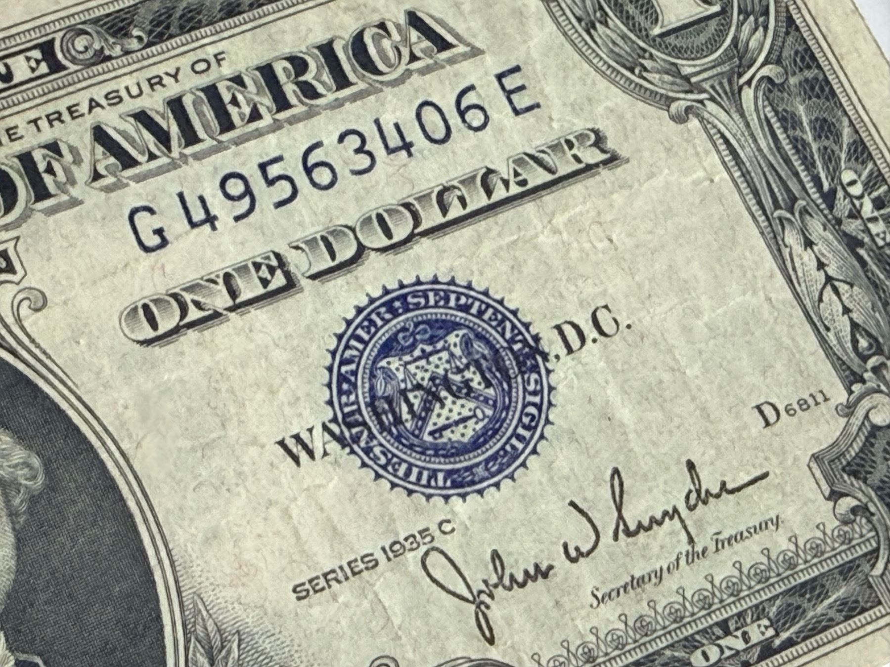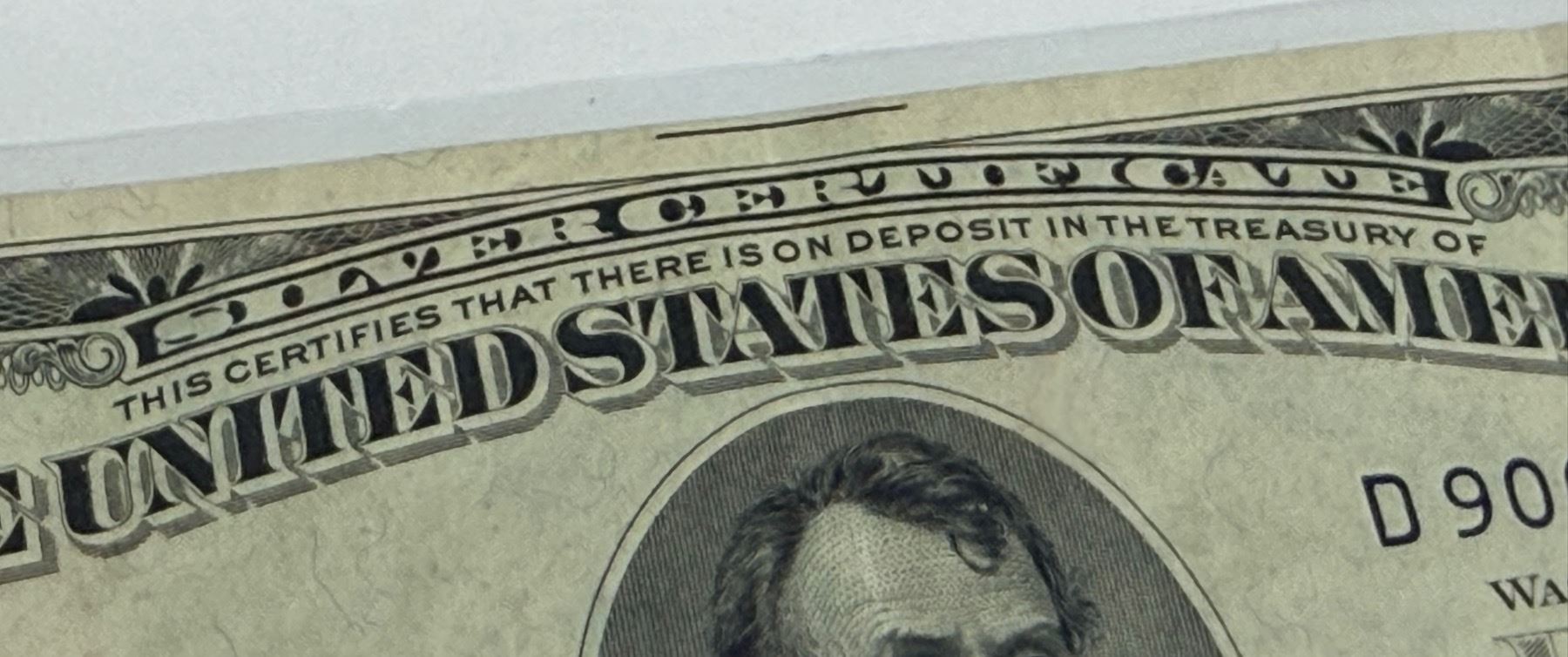 EACH SILVER CERTIFICATE WAS BACKED BY ITS FACE VALUE IN SILVER DOLLARS OR SILVER BULLION IN THE UNITED STATES TREASURY, AND HOLDERS OF THE NOTES COULD ACTUALLY EXCHANGE THEM FOR THE SILVER UNTIL 1968. SILVER CERTIFICATES HAVE DISTINCTIVE BLUE TREASURY SEALS AND BLUE SERIAL NUMBERS.