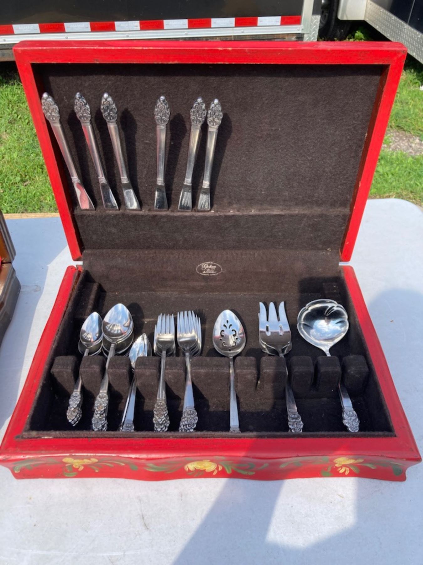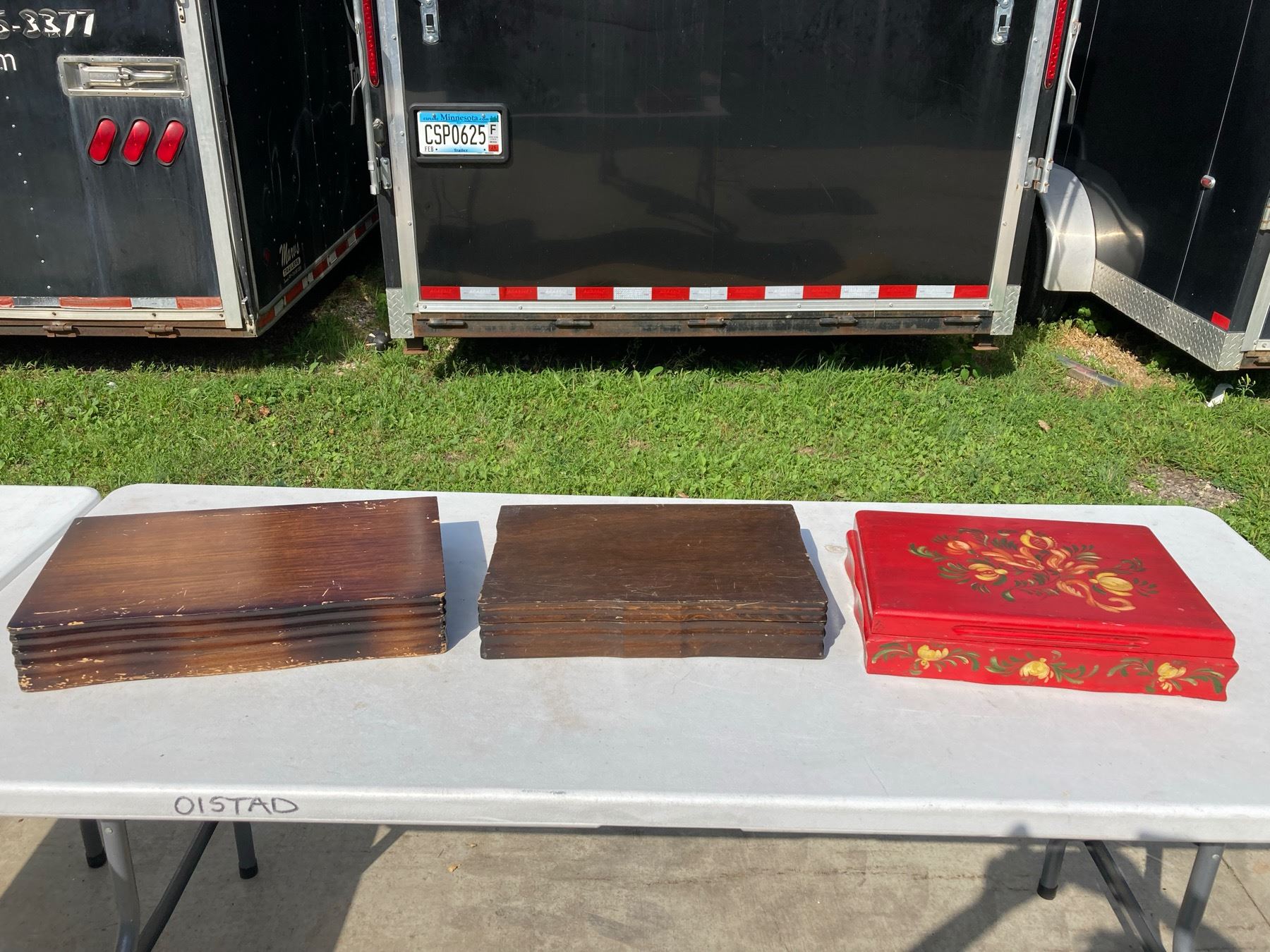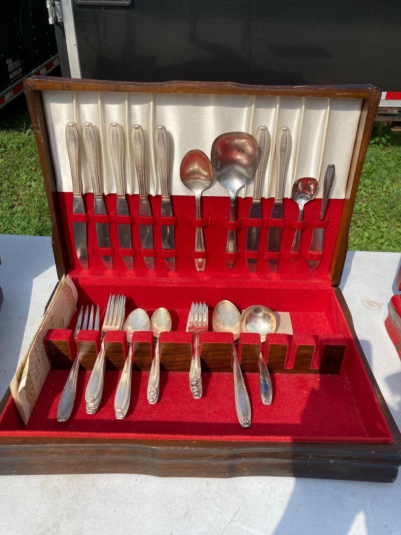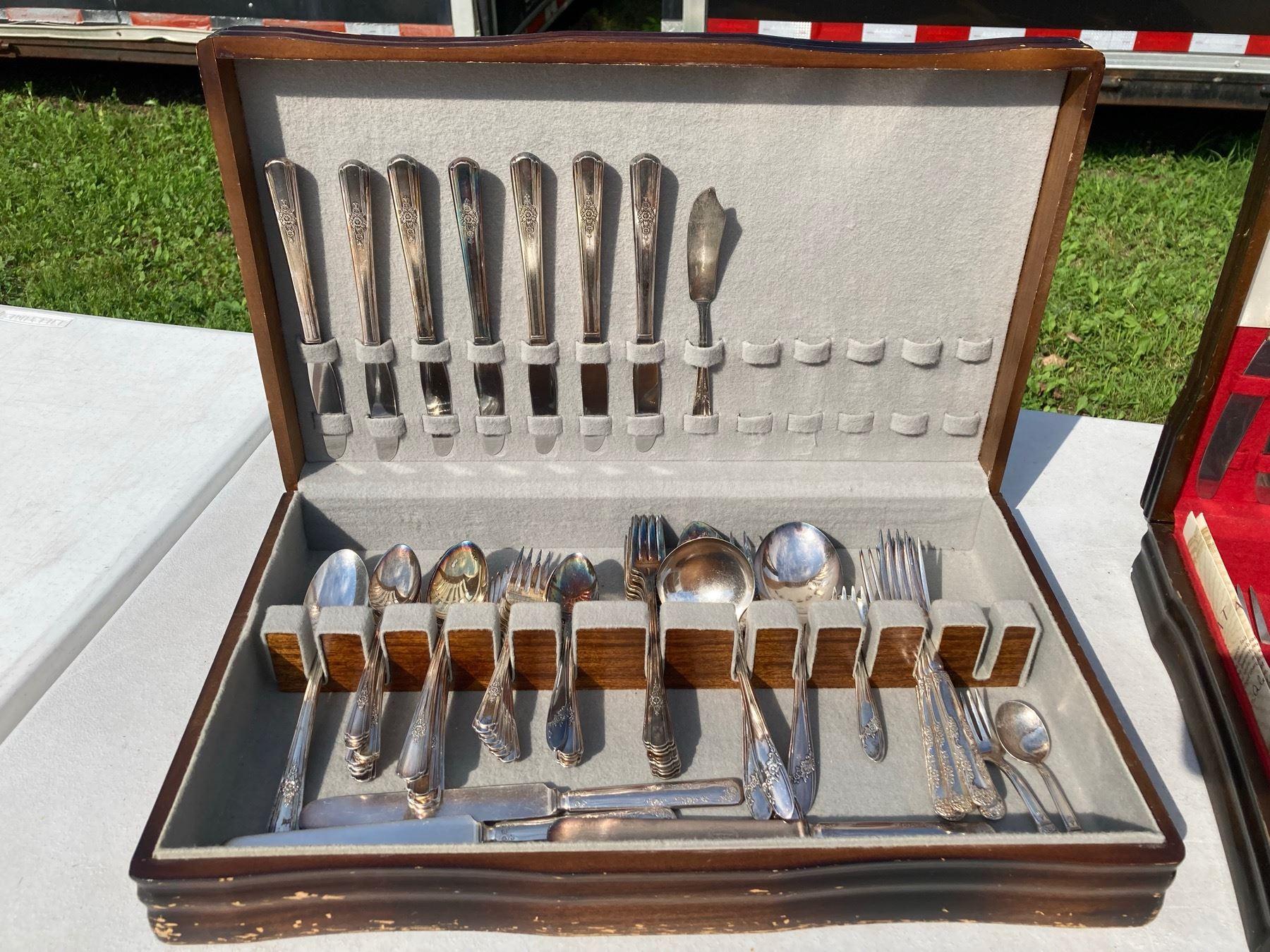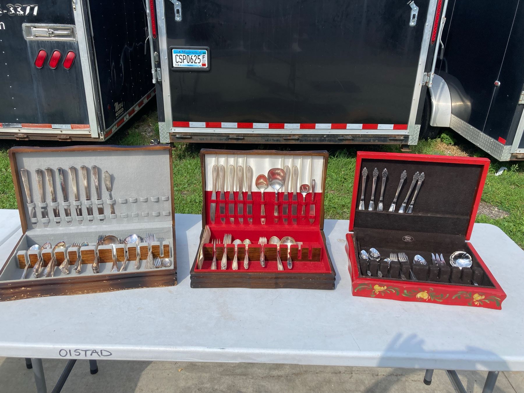 SILVERWARE SETS IN WOODEN STORAGE BOXES; LOT OF 3