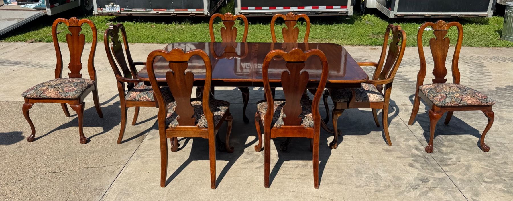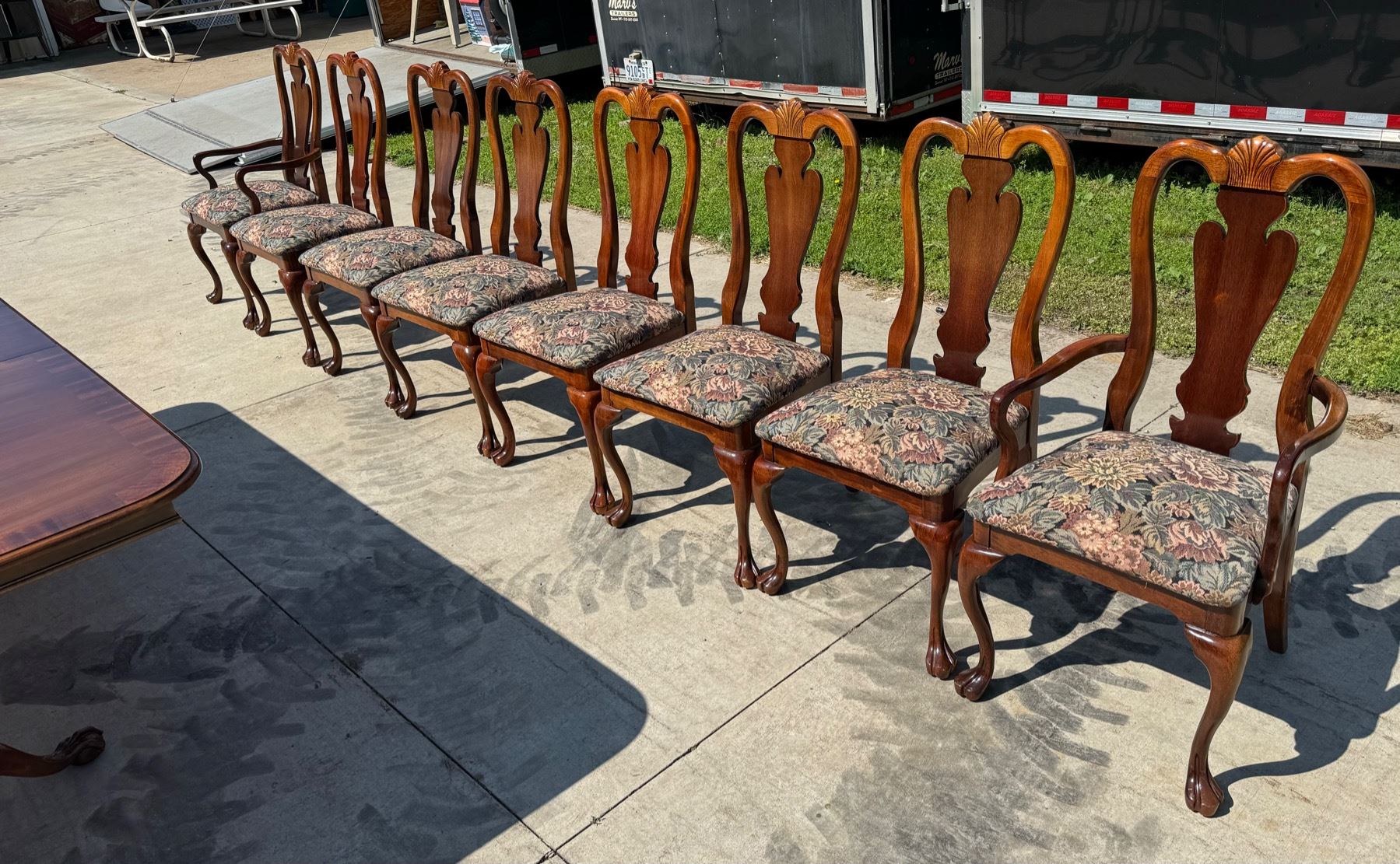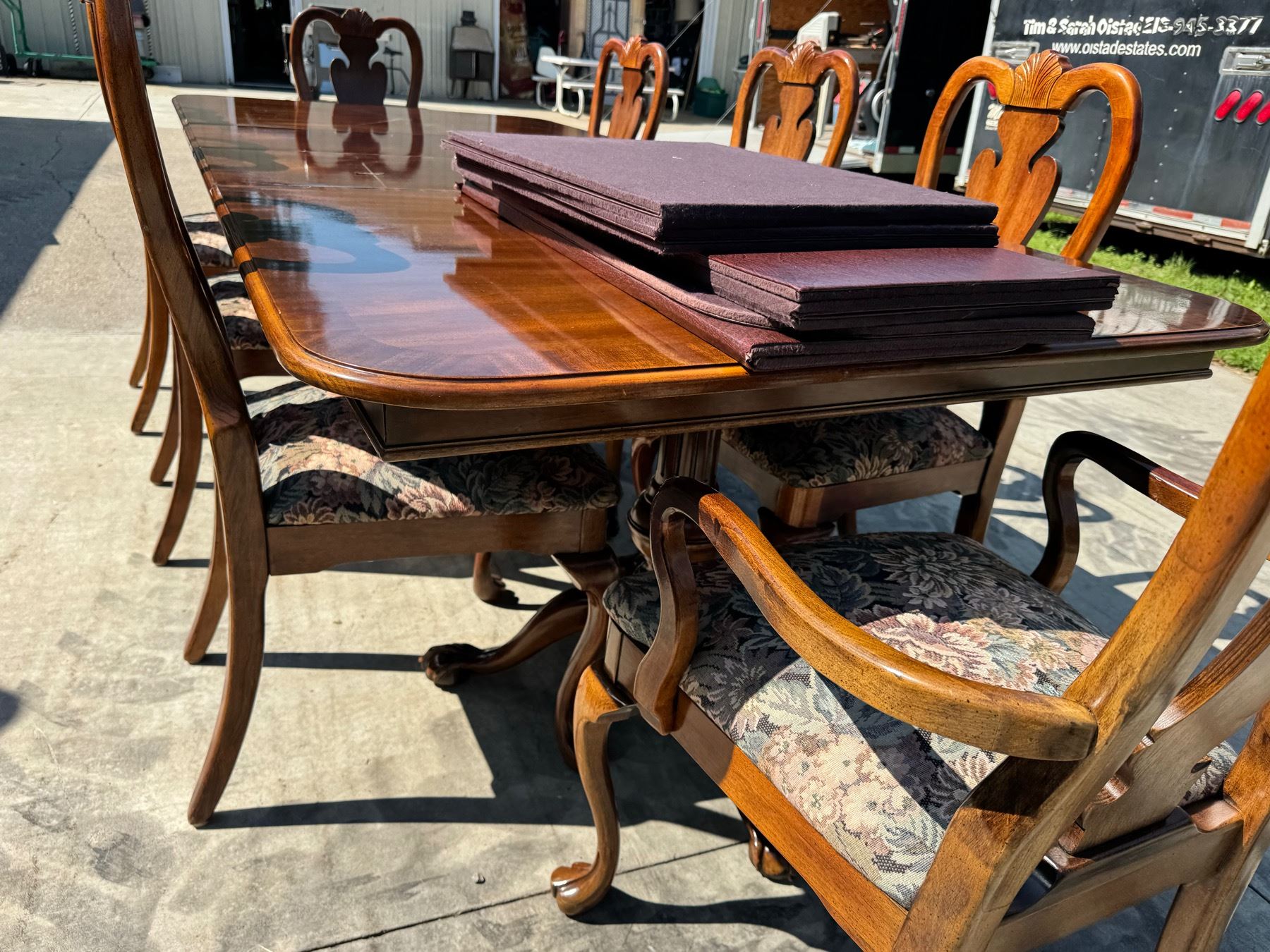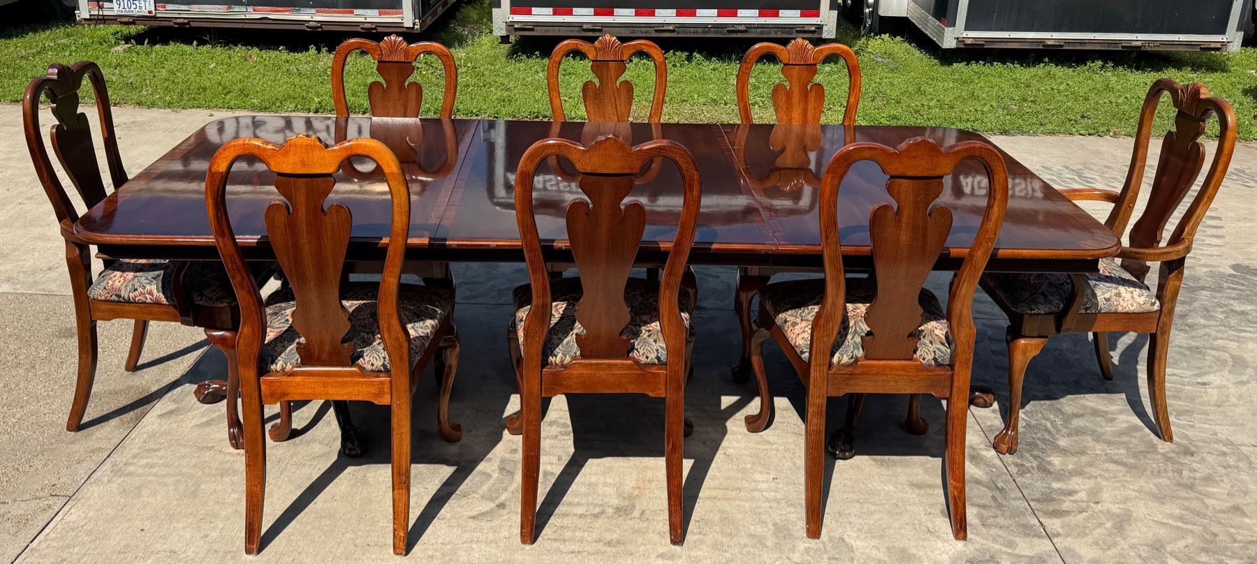SOLID CHERRY DINING TABLE, 8 CHAIRS, 2 LEAVES, & PADDED COVERS - ELEGANT! PRISTINE!