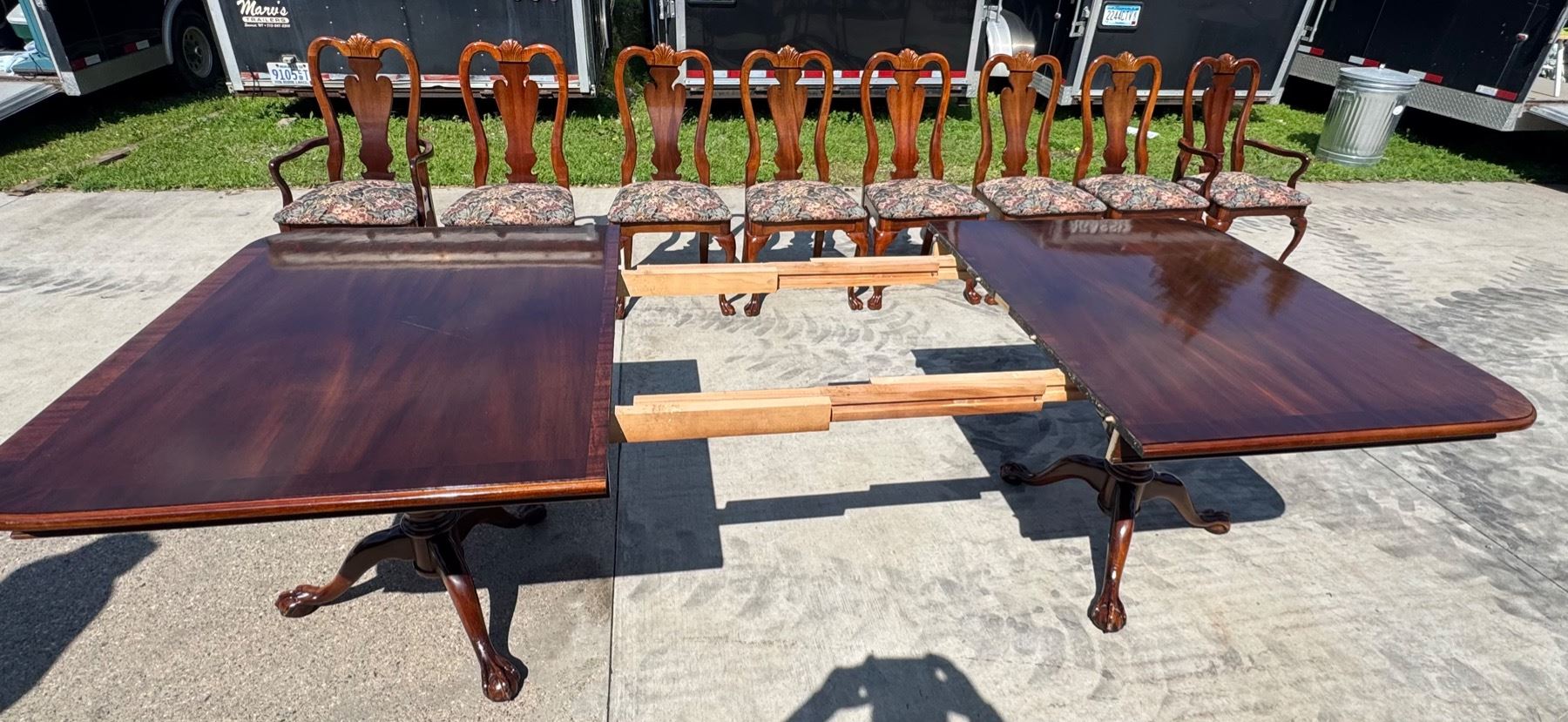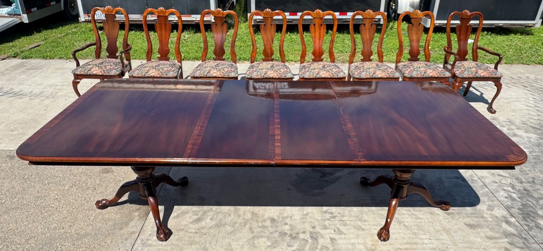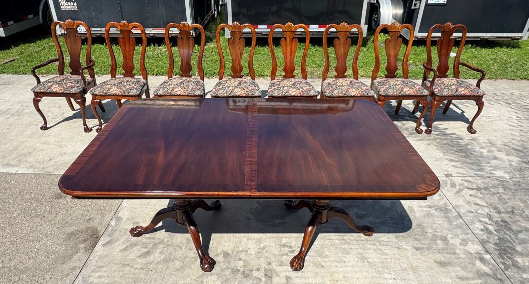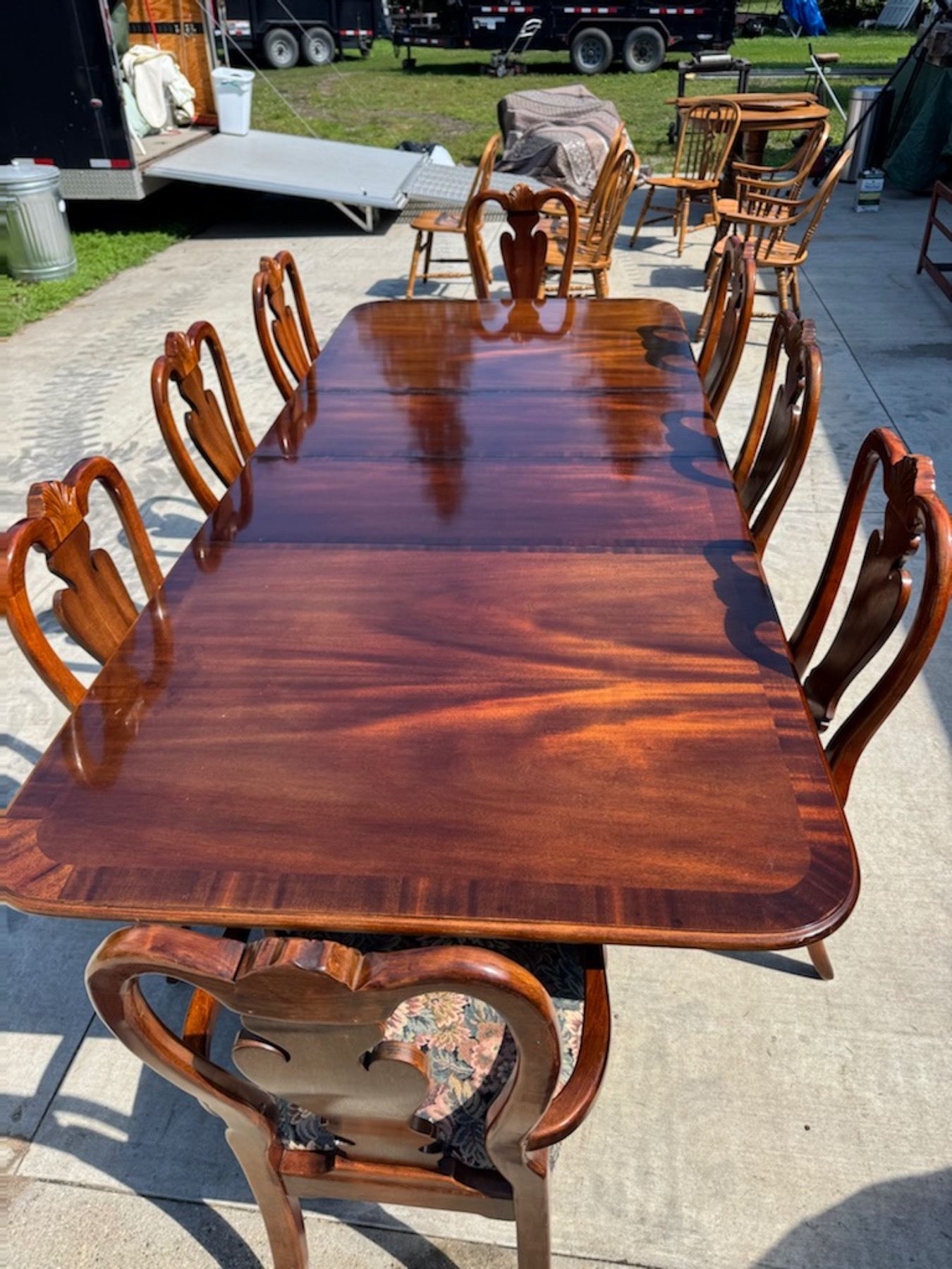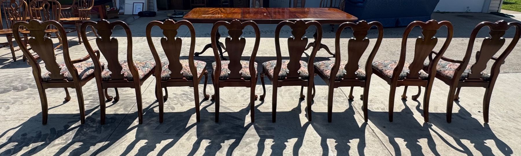SOLID CHERRY DINING TABLE, 8 CHAIRS, 2 LEAVES, & PADDED COVERS - ELEGANT! PRISTINE!