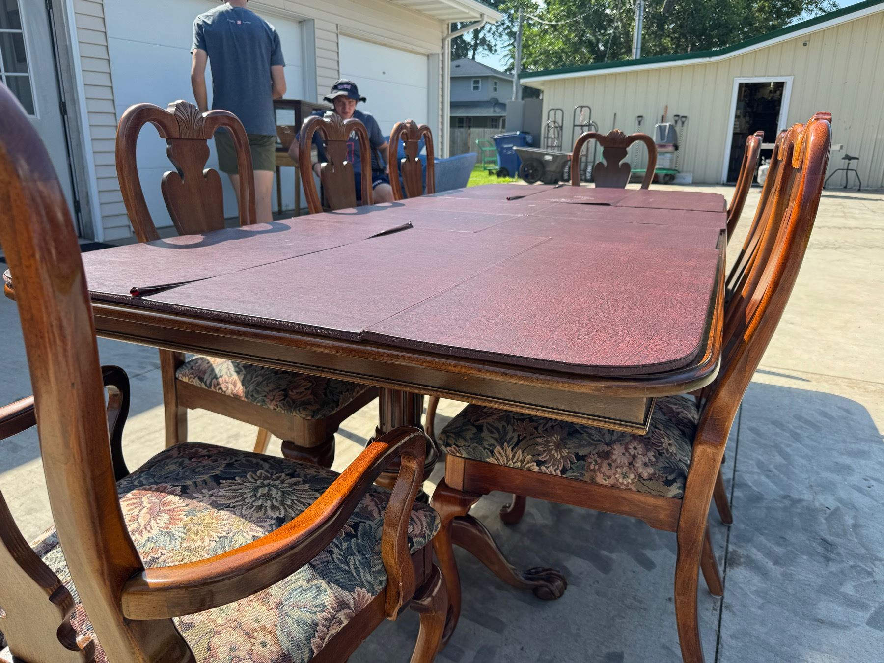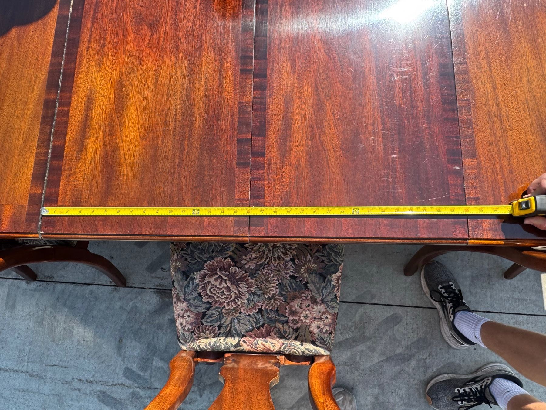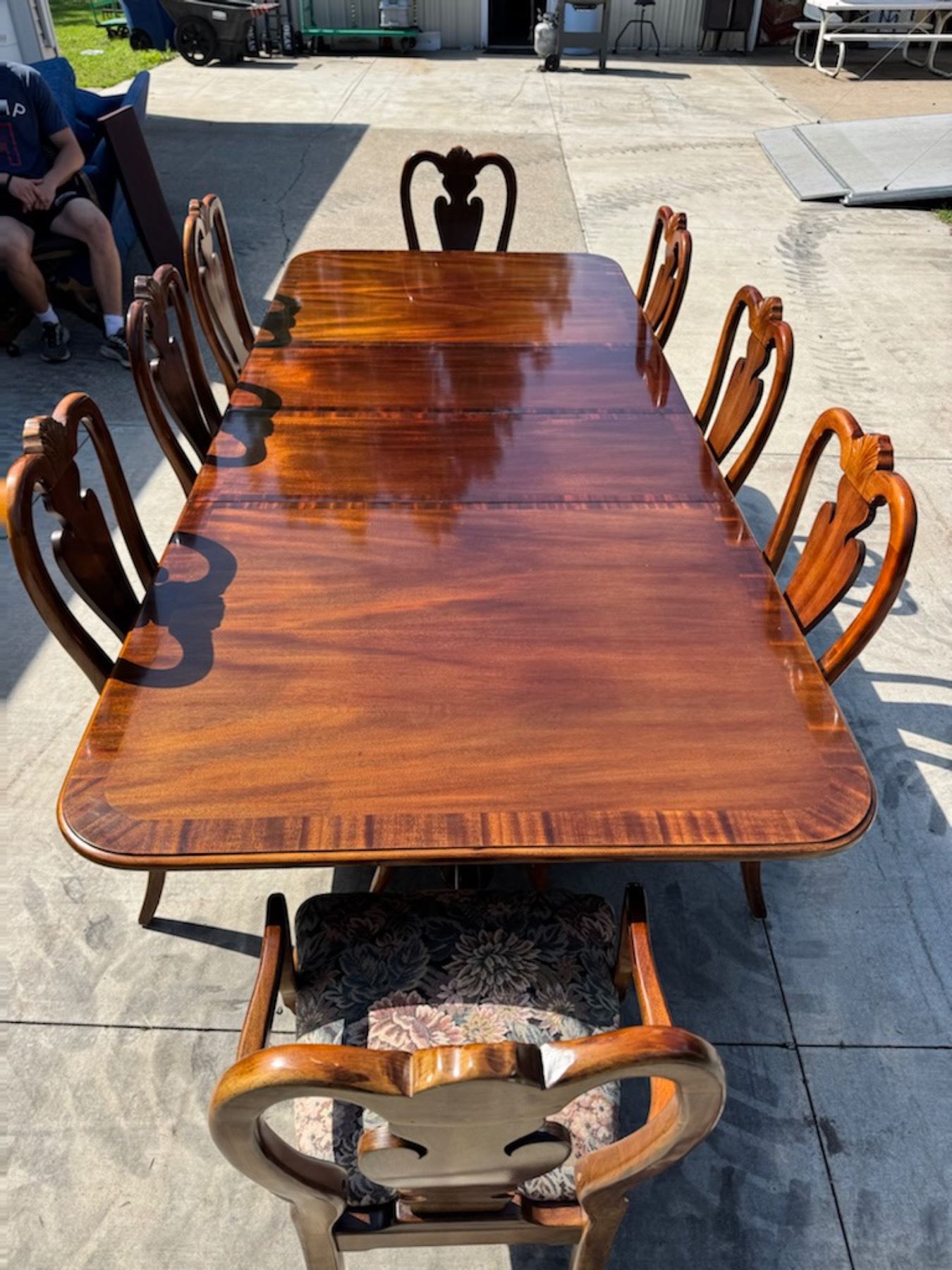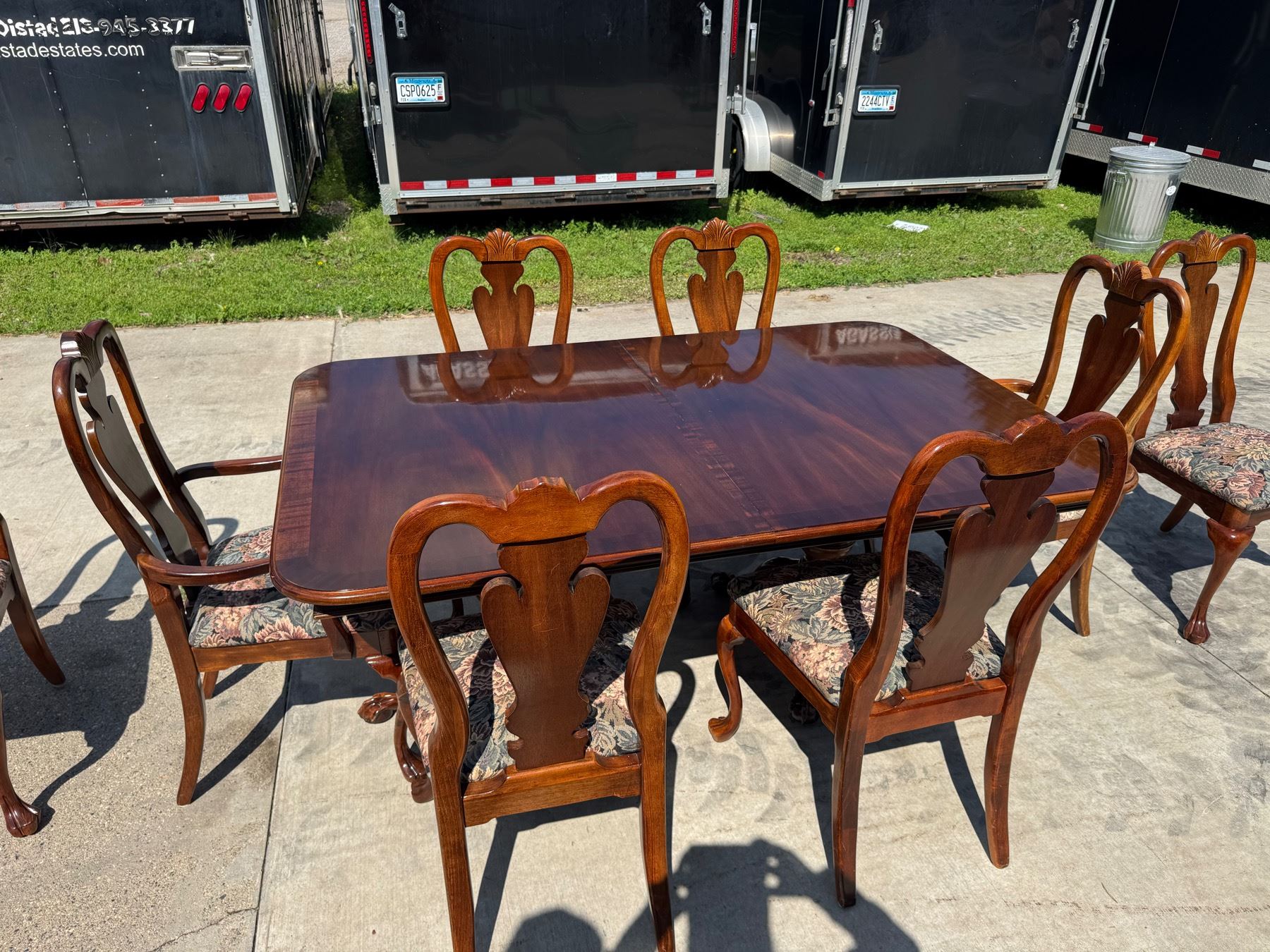 MADE IN THE USA! THIS IS IN PERFECT CONDITION WITH NO SCRATCHES OR STAINS. SUPER STURDY. EXPANDS TO FIT THE ENTIRE FAMILY. PLEASE LOOK AT PICTURES SO YOU CAN SEE HOW ABSOLUTELY BEAUTIFUL THIS DINING ROOM SET IS! BID WITH CONFIDENCE. WE'VE NEVER HAD A NICER ONE. FROM NON-SMOKING, NO PET HOME.