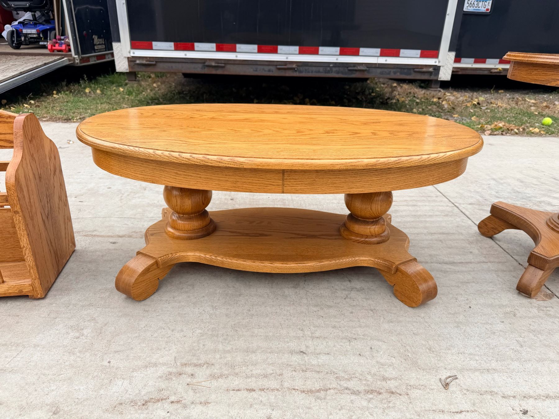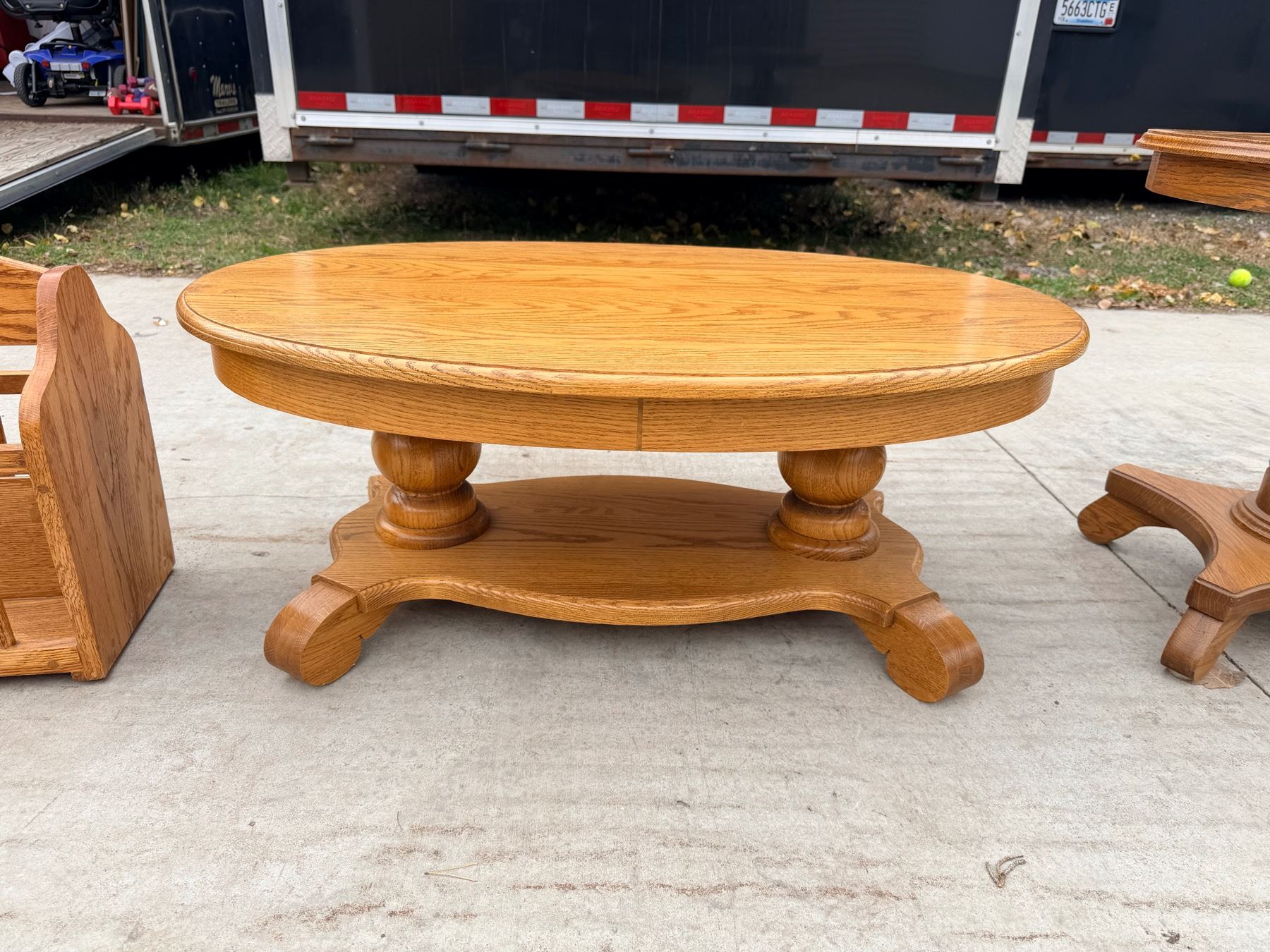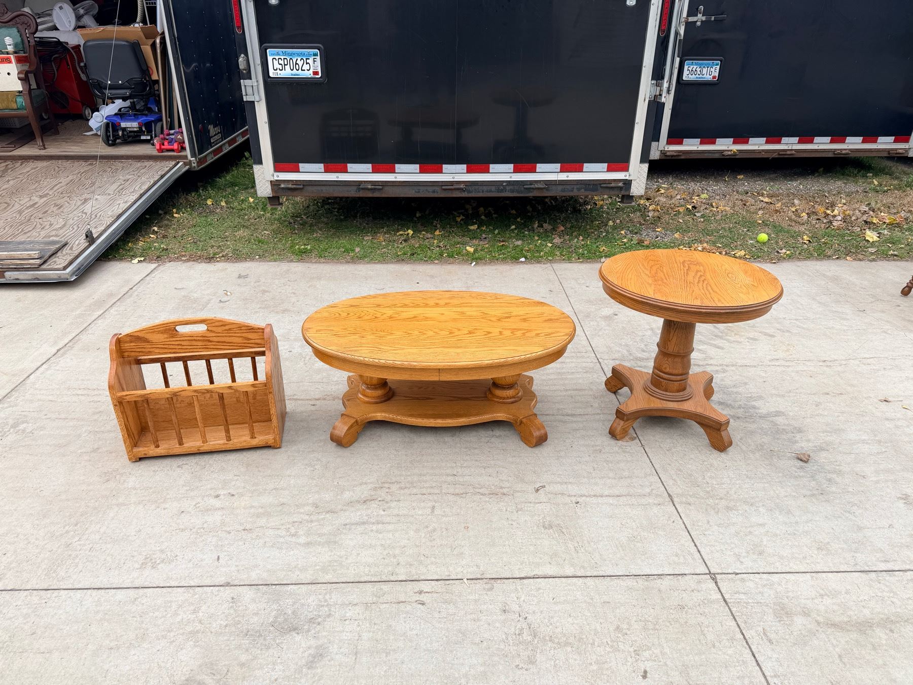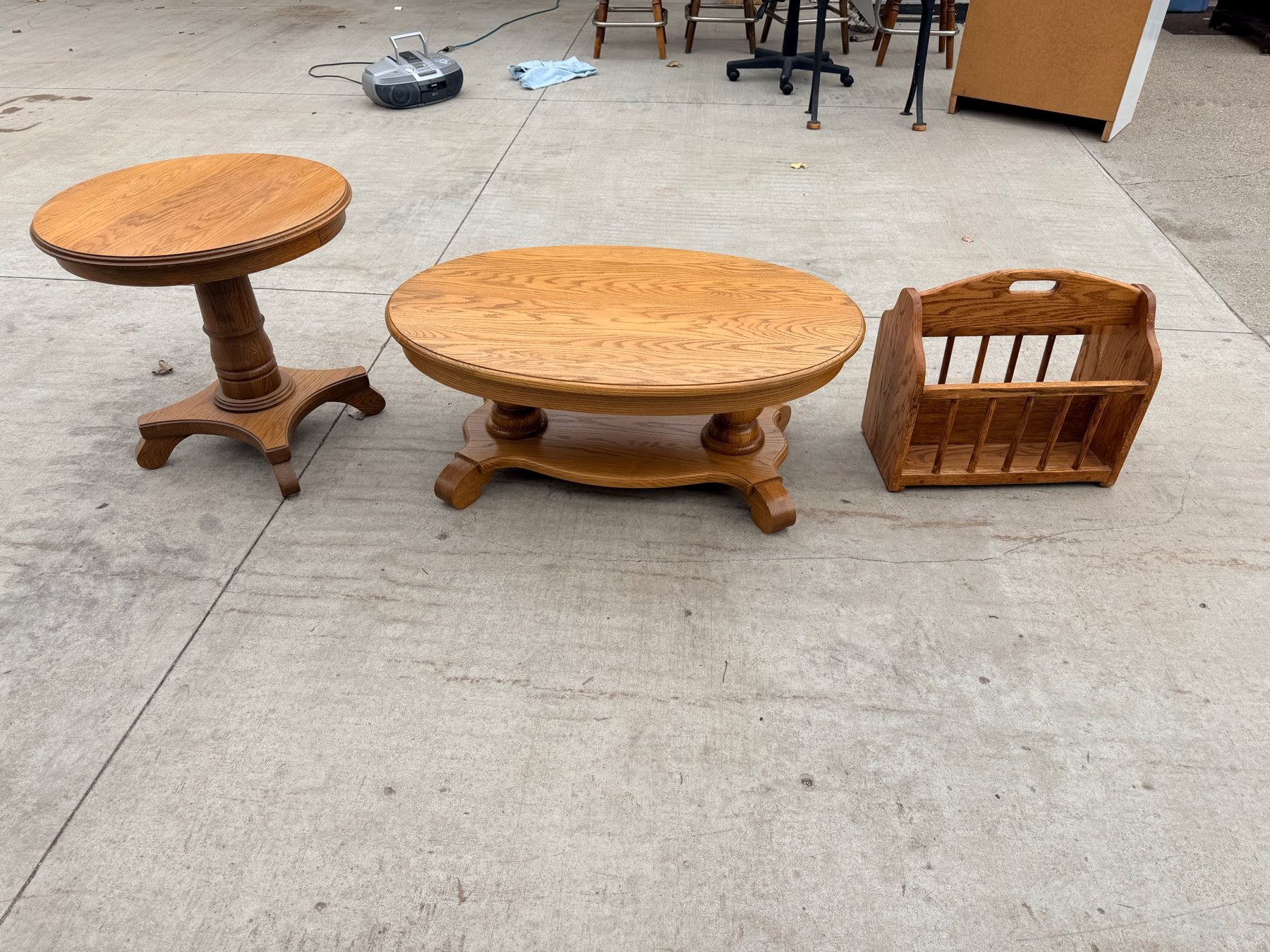 SOLID WOOD, CONTEMPORARY COFFEE TABLE AND END TABLE WITH MAGAZINE HOLDER