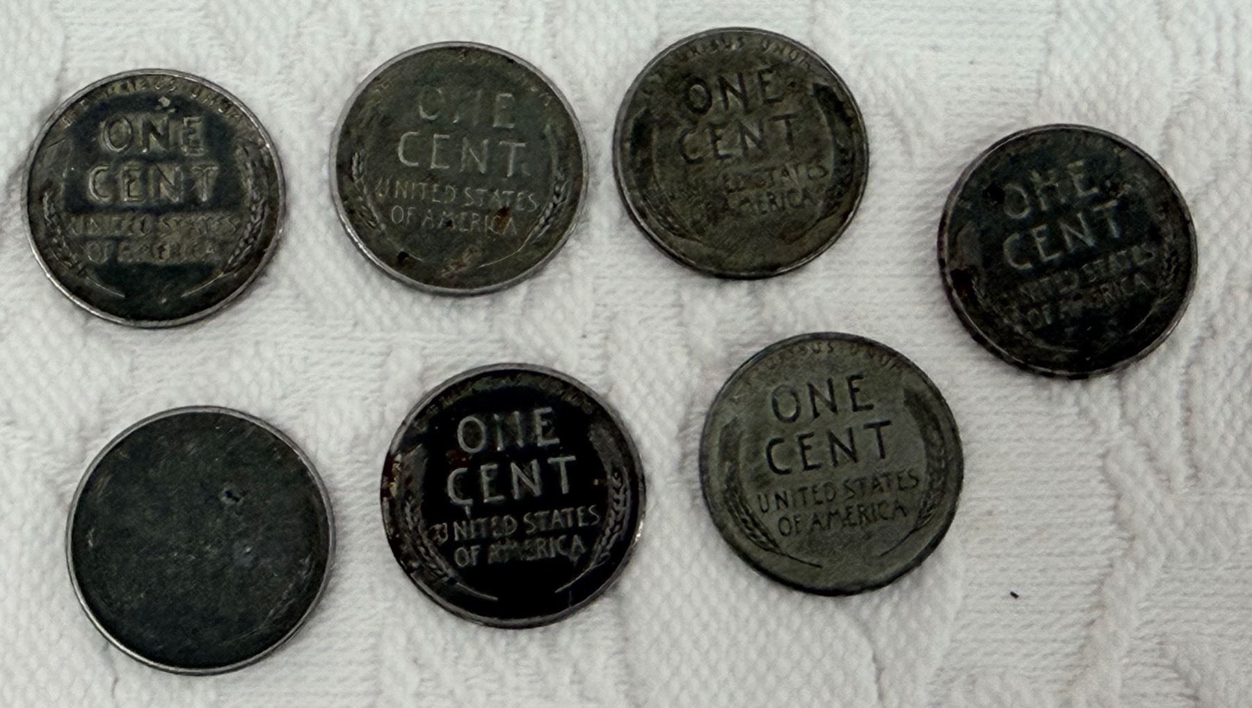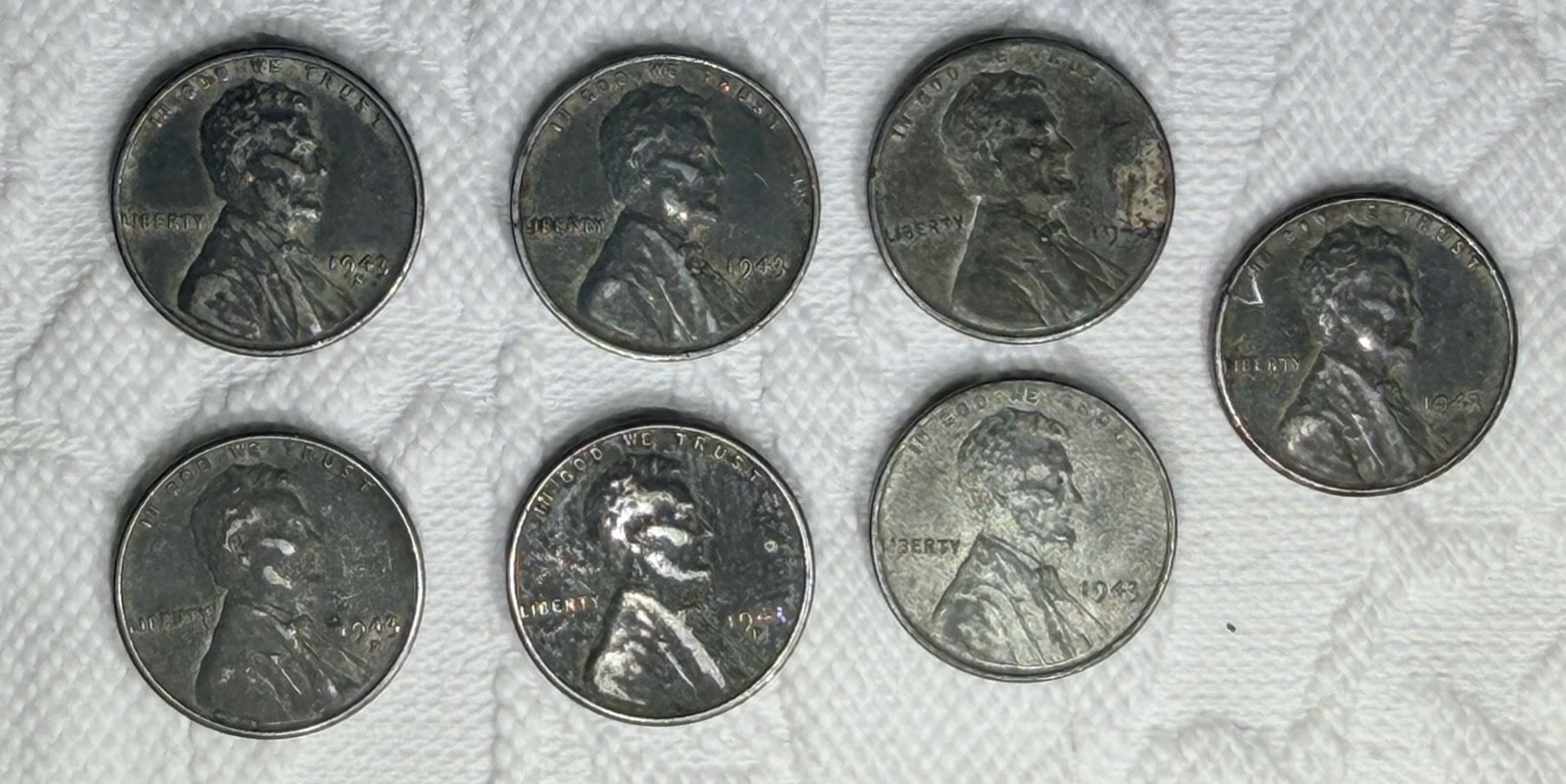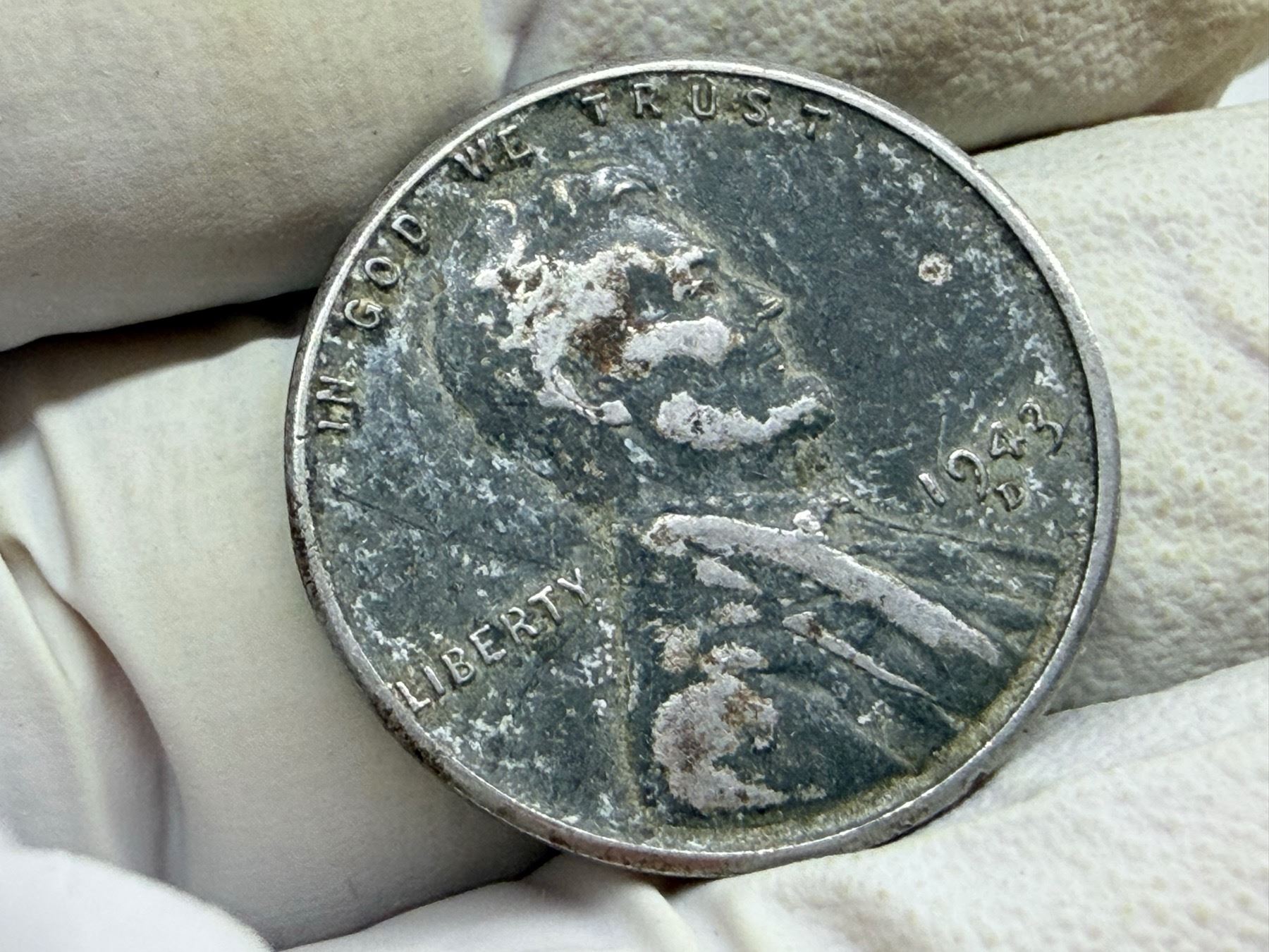 IN 1943, AT THE PEAK OF WORLD WAR II, ZINC-COATED STEEL CENTS WERE MADE FOR A SHORT TIME BECAUSE OF WAR DEMANDS FOR COPPER, THESE ARE COMMONLY REFERRED TO AS STEEL CENTS