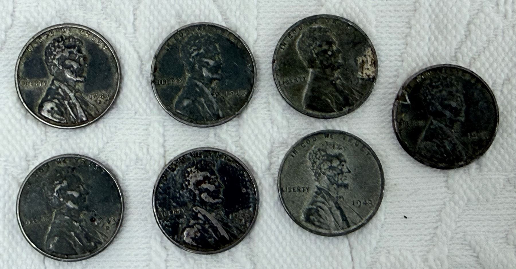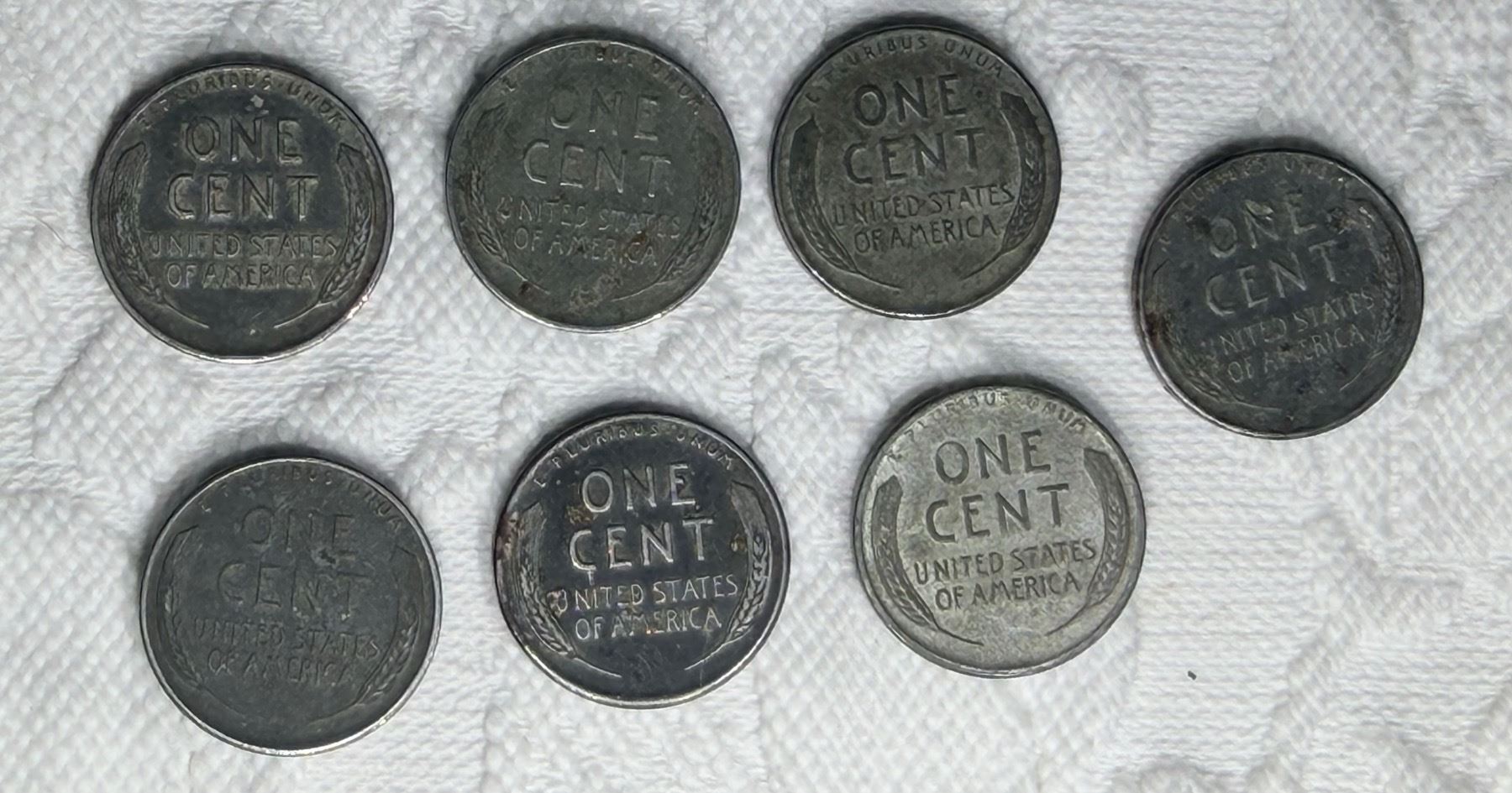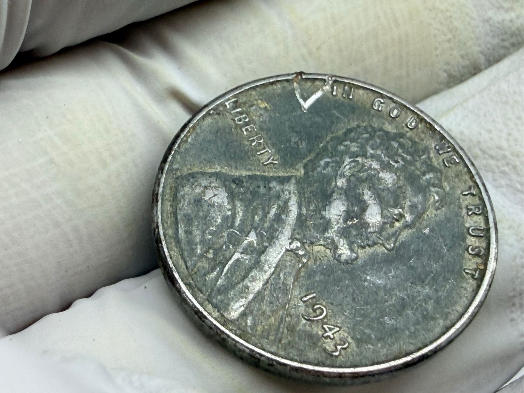 IN 1943, AT THE PEAK OF WORLD WAR II, ZINC-COATED STEEL CENTS WERE MADE FOR A SHORT TIME BECAUSE OF WAR DEMANDS FOR COPPER, THESE ARE COMMONLY REFERRED TO AS STEEL CENTS