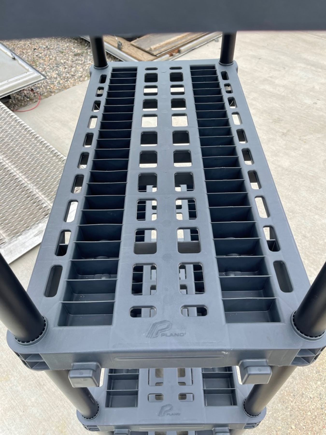 STRONG PLASTIC SHELF. CAN BE BROKEN DOWN.