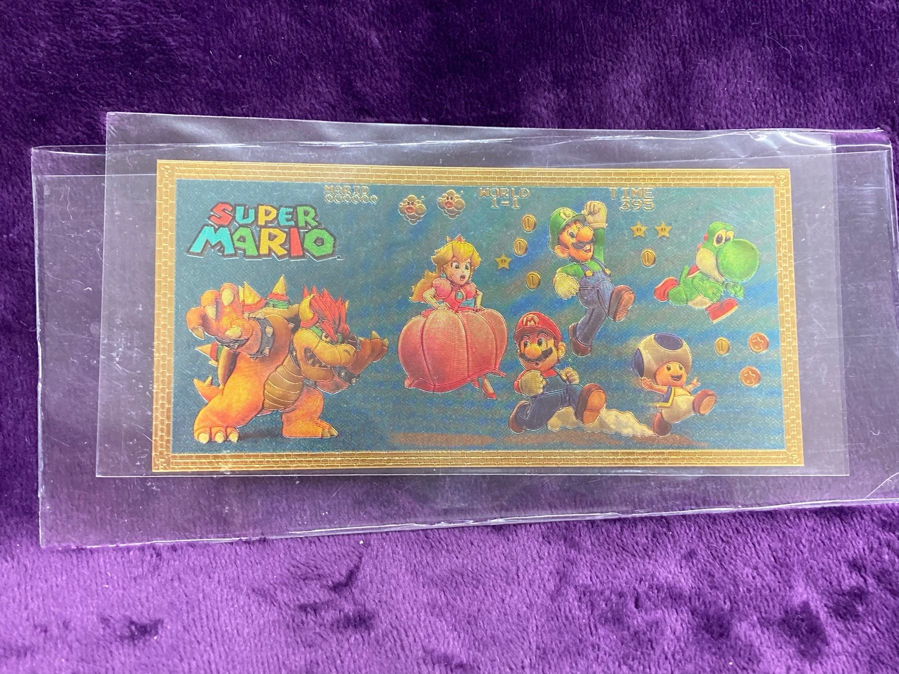 SUPER MARIO 24K GOLD FOIL PLATED LUIGI COLLECTIBLE BANKNOTE BILL