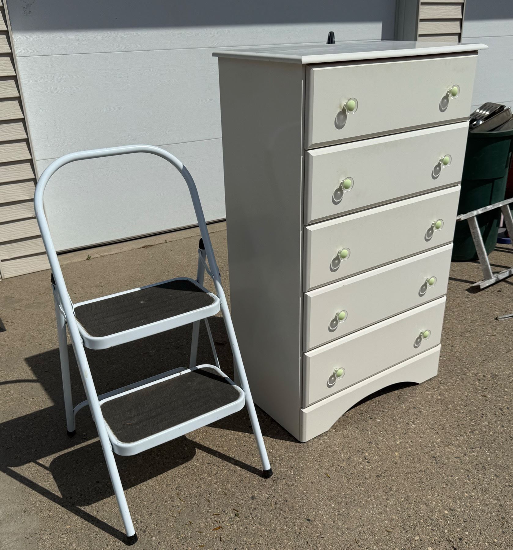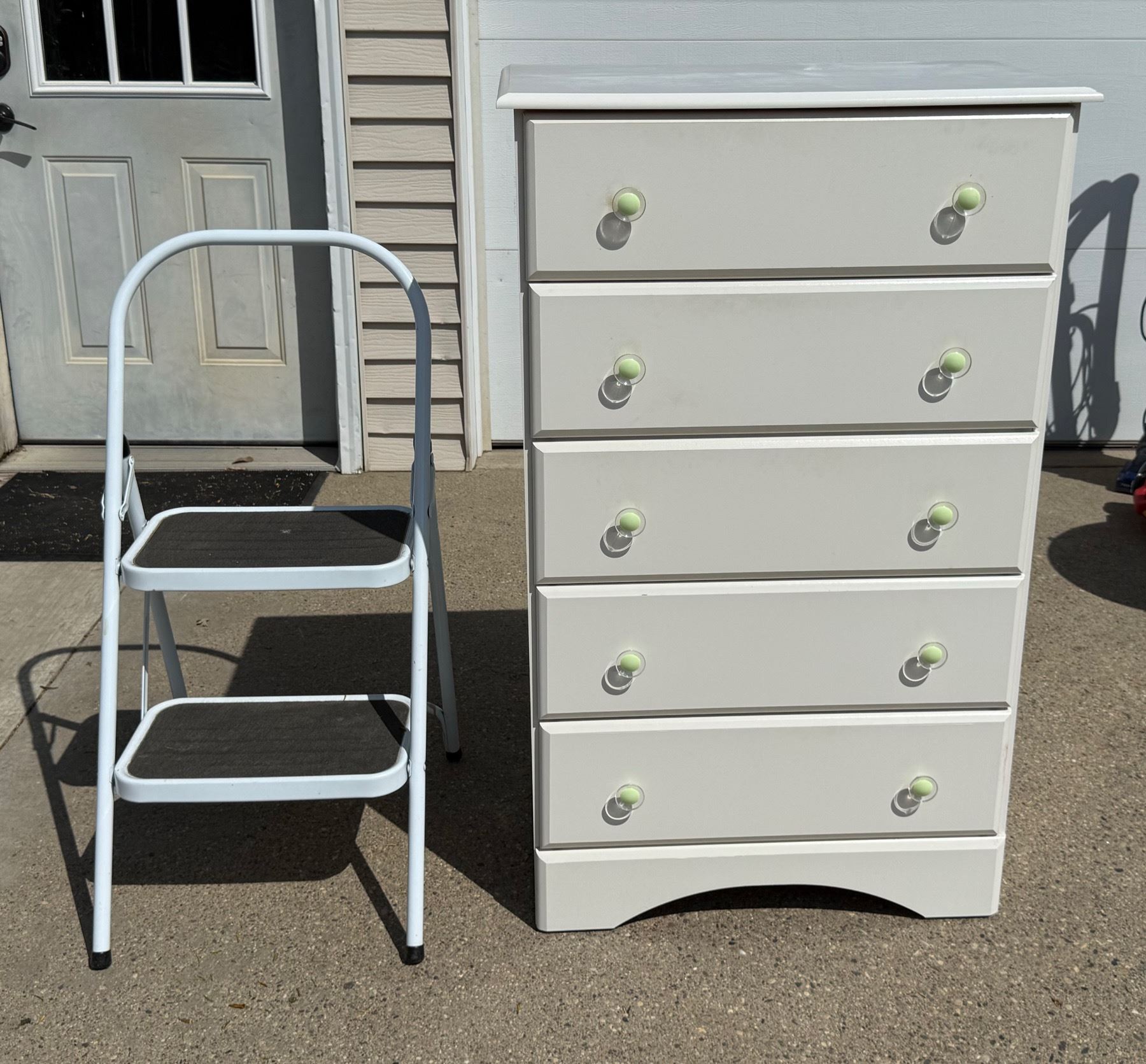 TALL DRESSER - FIVE DRAWERS, AND STEP LADDER