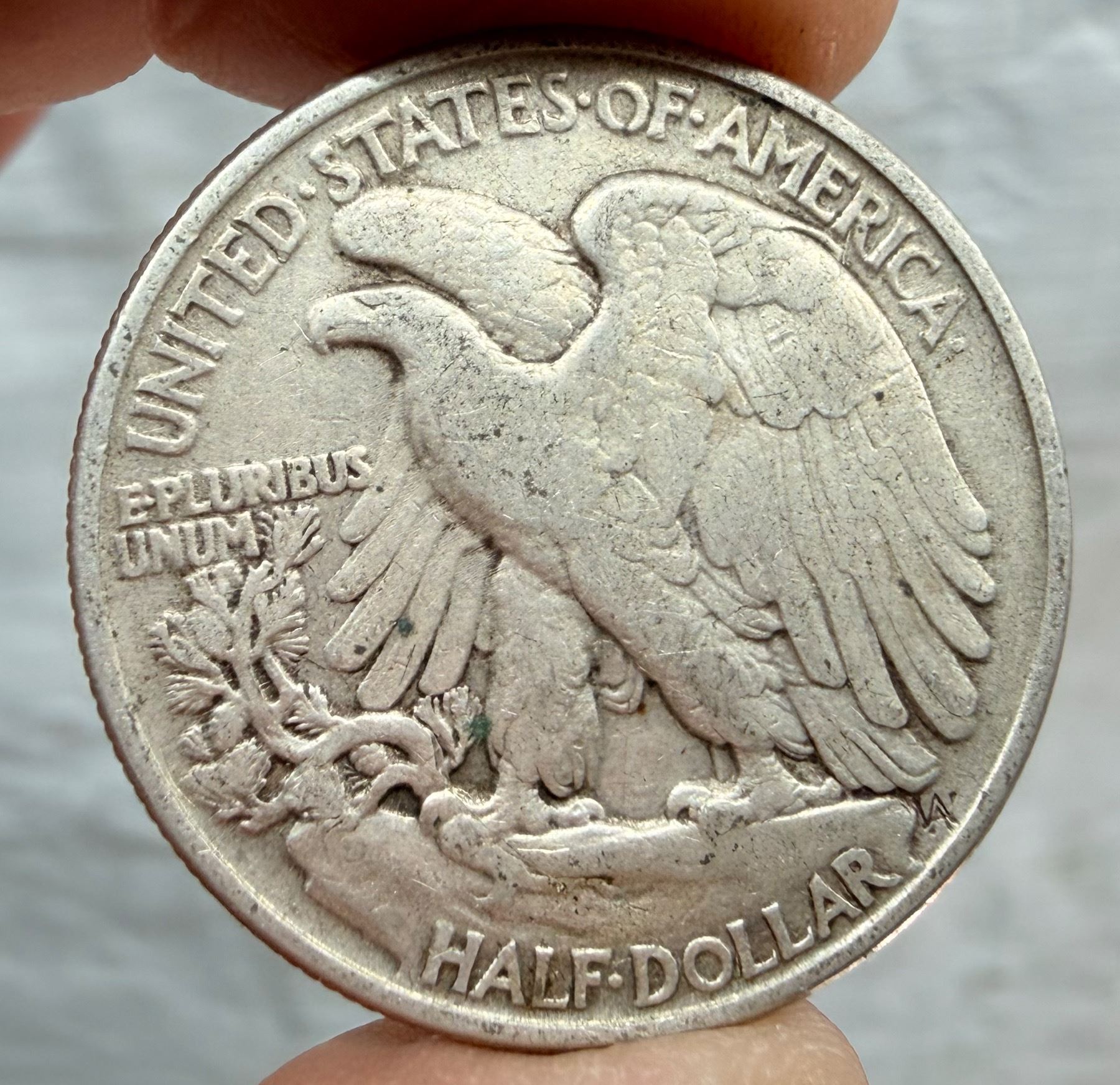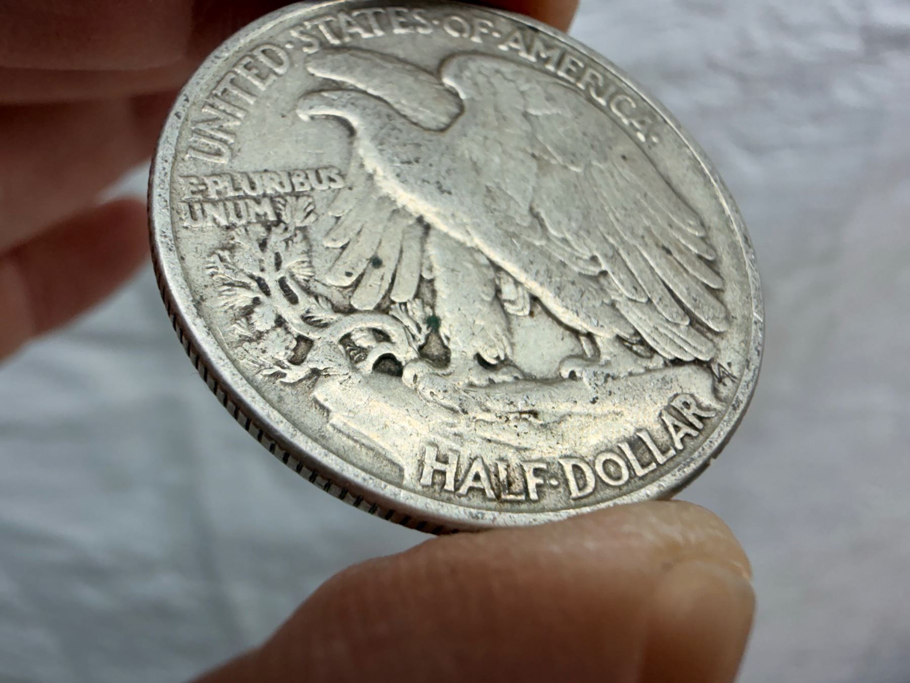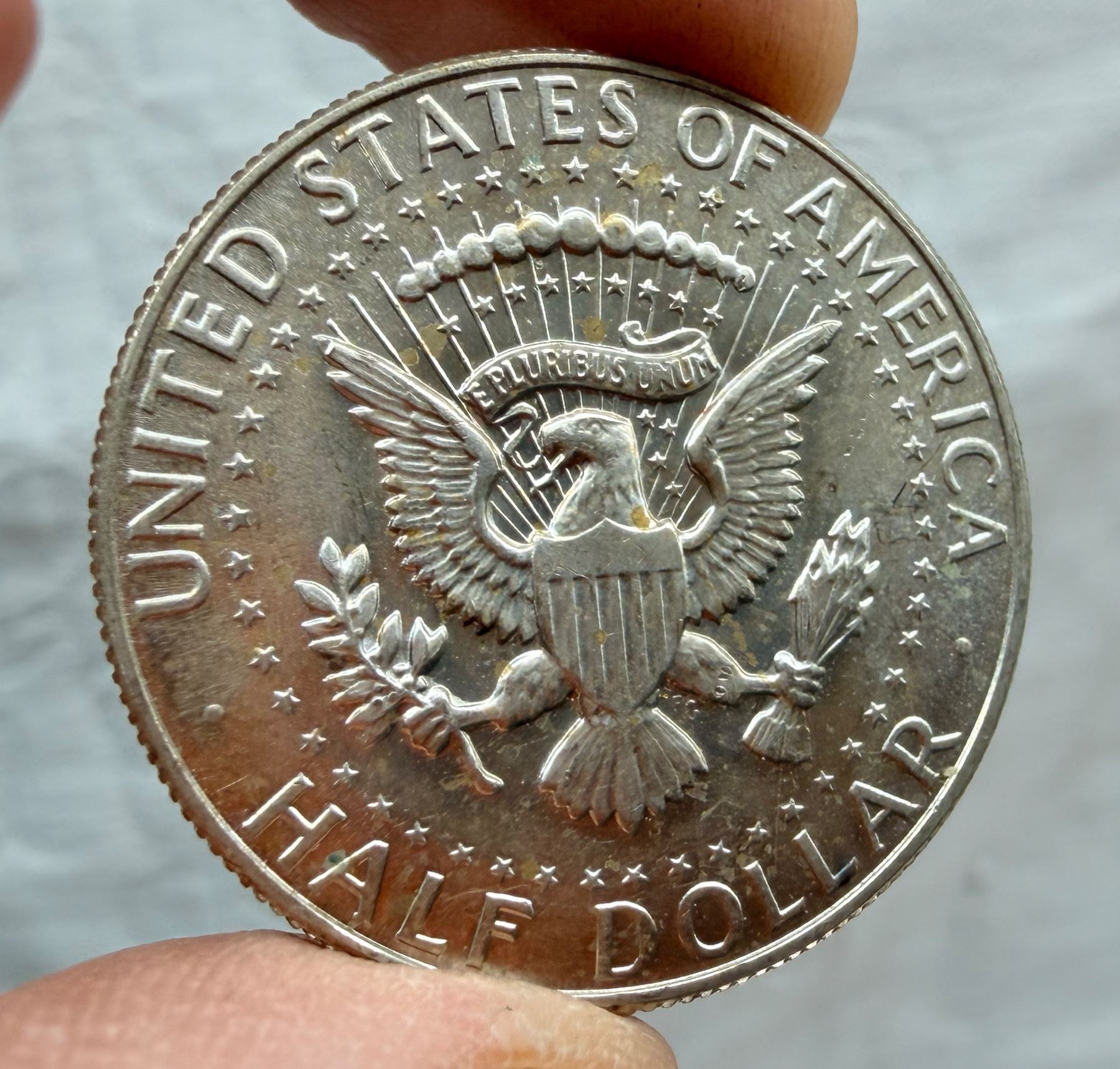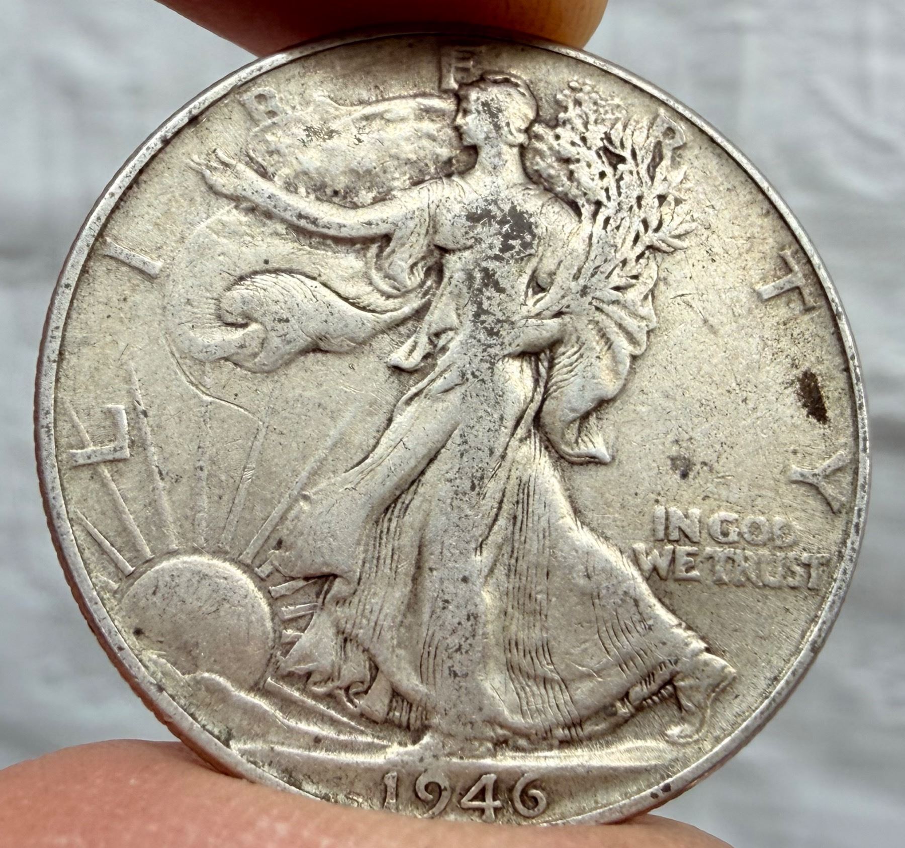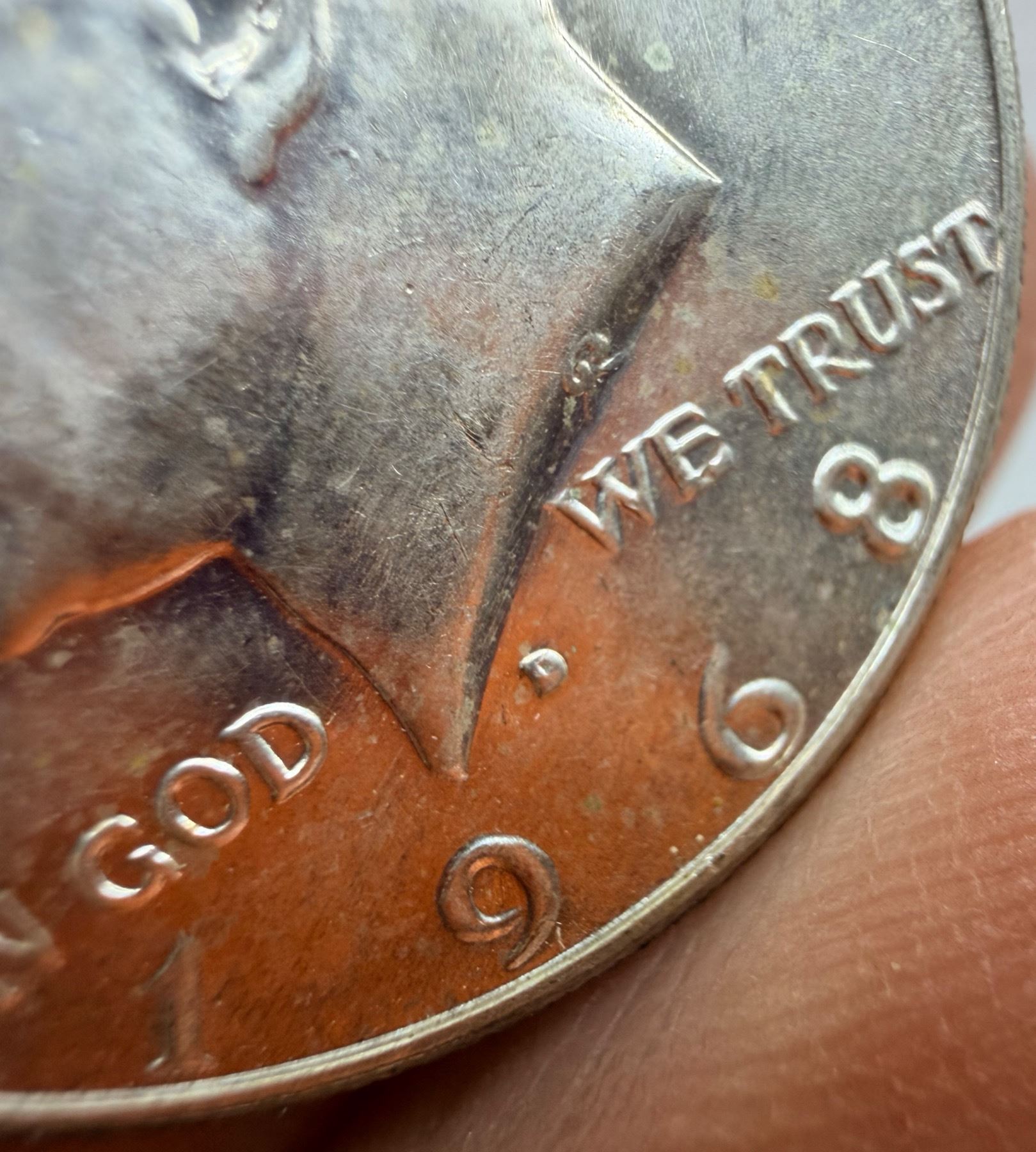 THE WALKING LIBERTY HALF DOLLAR IS 90 PERCENT SILVER AND 10 PERCENT COPPER WITH A TOTAL WEIGHT OF 12.5 GRAMS, CONTAINS 0.36169 TROY OUNCE OF PURE SILVER, AND WAS MINTED FROM 1916-1947; THE FRANKLIN SILVER HALF DOLLAR IS 90 PERCENT SILVER AND 10 PERCENT COPPER WITH A TOTAL WEIGHT OF 12.5 GRAMS, CONTAINS 0.36169 TROY OUNCE OF PURE SILVER, AND WAS MINTED FROM 1948-1963; THE 1964 KENNEDY HALF DOLLAR IS 90 PERCENT SILVER AND 10 PERCENT COPPER WITH A TOTAL WEIGHT OF 12.5 GRAMS, CONTAINS .36169 TROY OUNCE OF PURE SILVER; FROM 1965–1970, THE KENNEDY HALF DOLLAR IS 40 PERCENT SILVER AND 60 PERCENT COPPER WITH A TOTAL WEIGH OF 11.5 GRAMS AND CONTAINS .14779 TROY OUNCE OF PURE SILVER; THE KENNEDY HALF DOLLAR WAS ISSUED FROM 1964-PRESENT; THE 1964 MINT MARK IN ON THE REVERSE OF THE COIN, THERE WERE NO MINT MARKS ON ANY FROM 1965-1967, THE MINT MARKS ARE ON THE FRONT (OBVERSE) OF THE COIN FROM 1968-PRESENT
