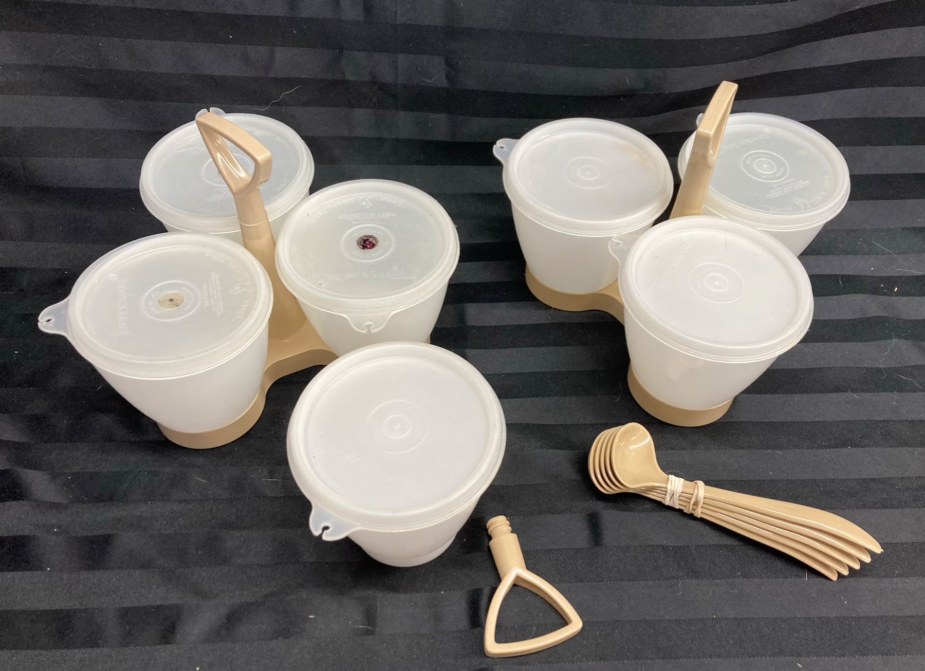 Tupperware and Tupperware brand only! We have been saving from our estate cleanouts and have quite the collection. Please check out all the pictures. We do have the Tupperware on site if you are looking to check a certain piece. Tupperware appears to be in good condition.
