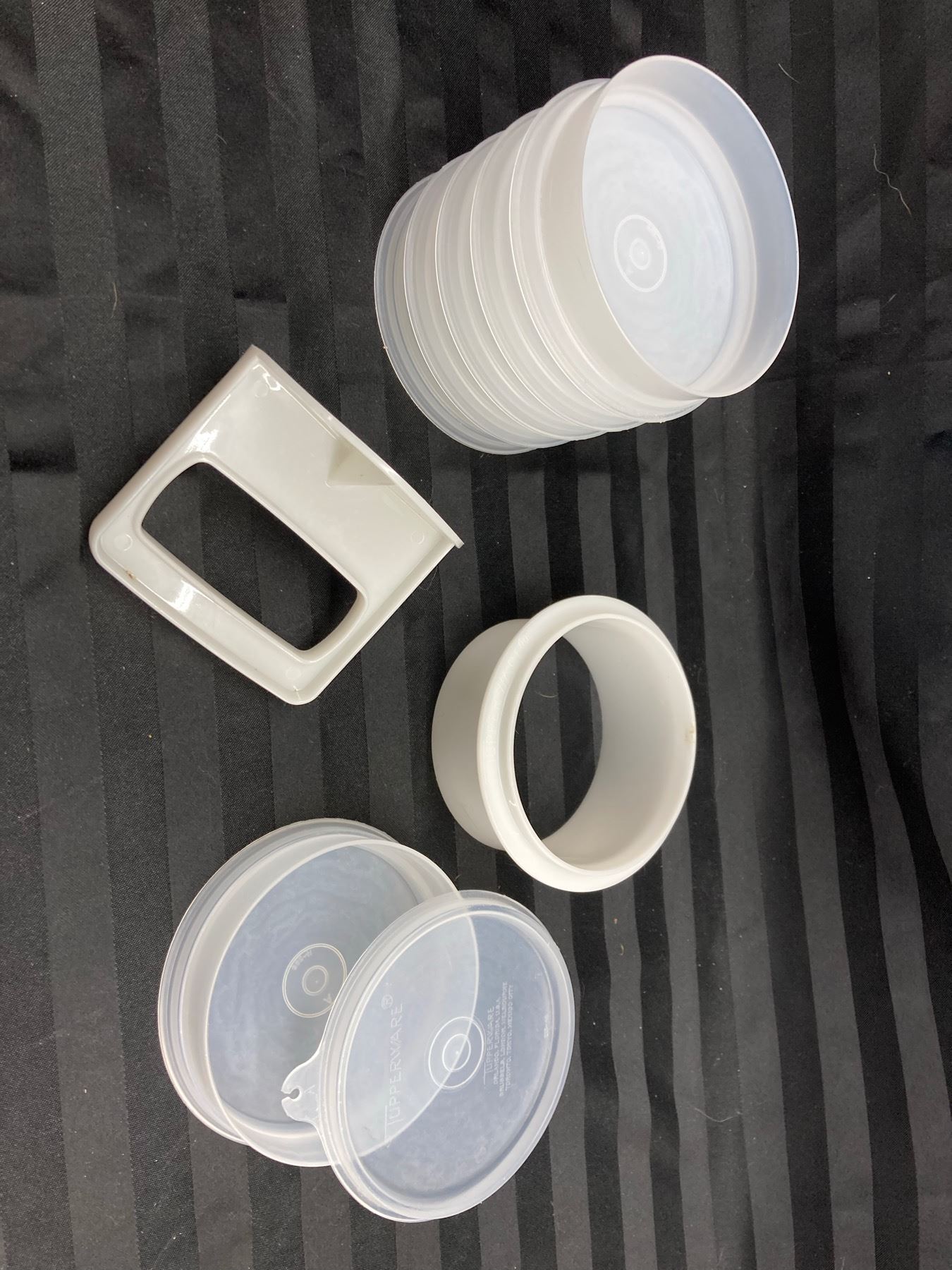 Tupperware and Tupperware brand only! We have been saving from our estate cleanouts and have quite the collection. Please check out all the pictures. We do have the Tupperware on site if you are looking to check a certain piece. Tupperware appears to be in good condition.