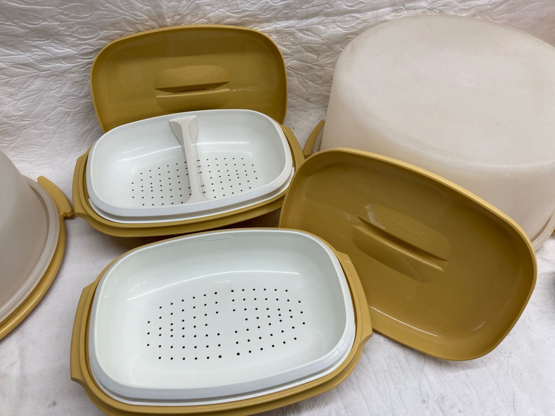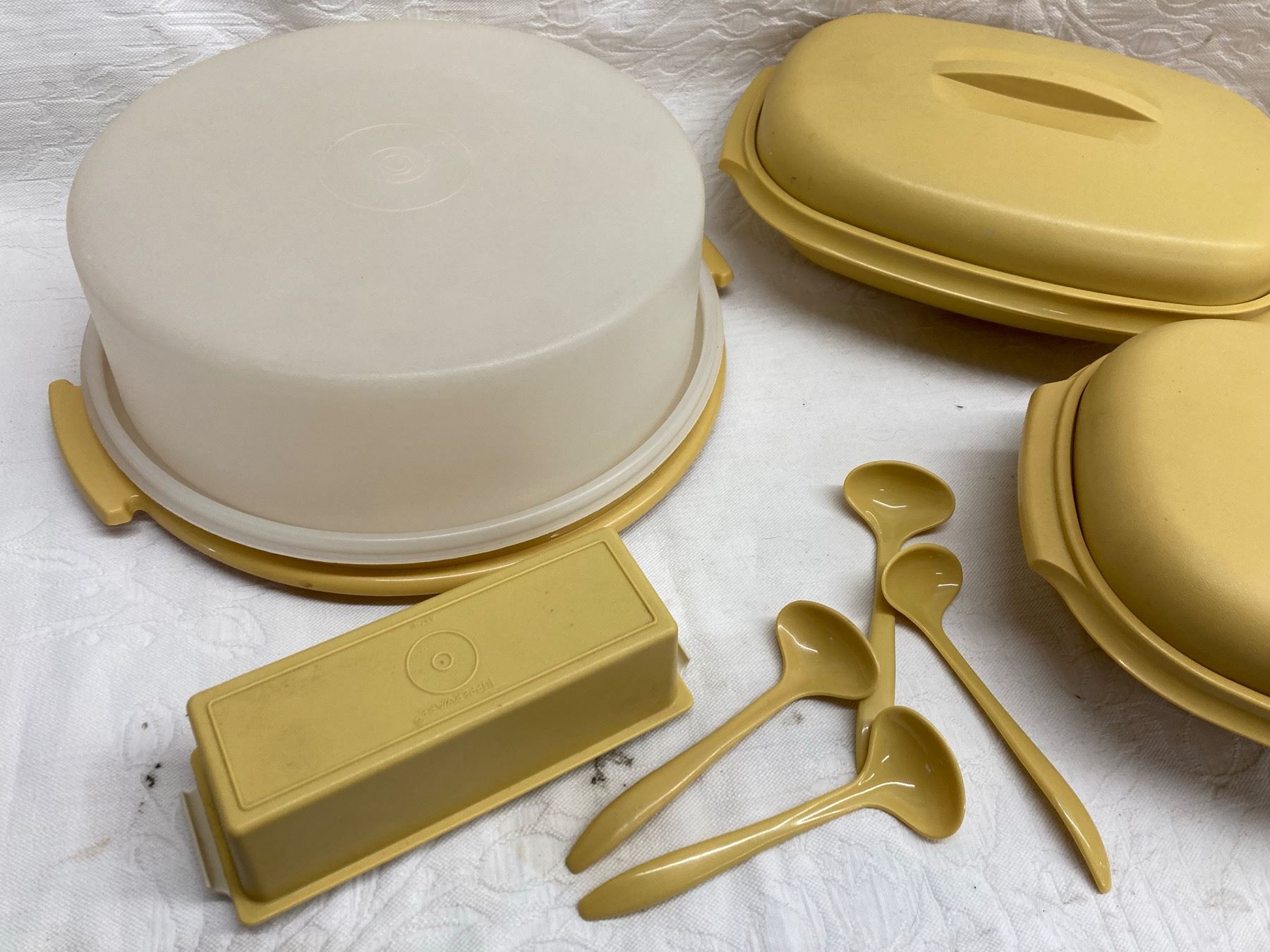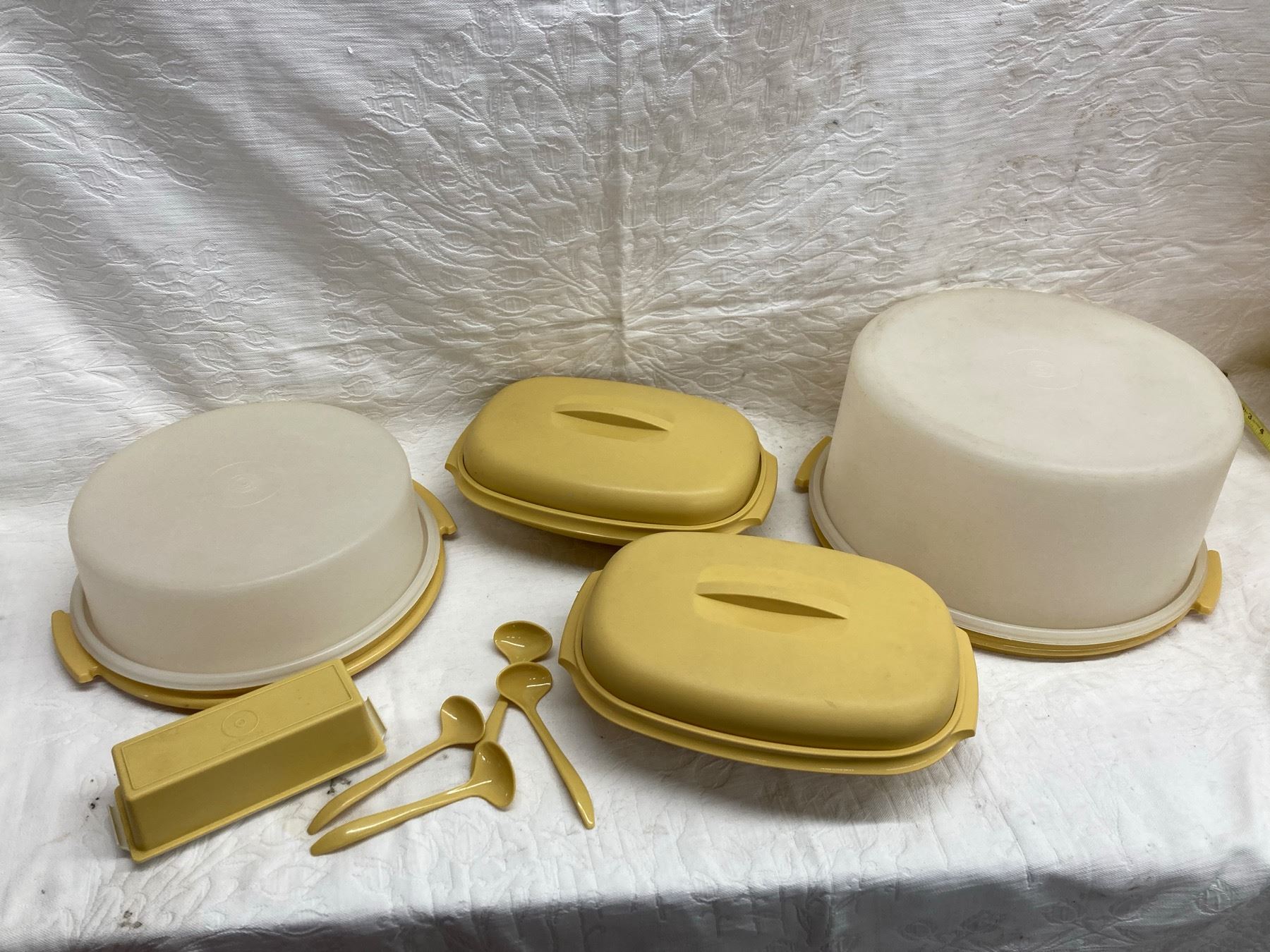 Tupperware and Tupperware brand only! We have been saving from our estate cleanouts and have quite the collection. Please check out all the pictures. We do have the Tupperware on site if you are looking to check a certain piece. Tupperware appears to be in good condition.