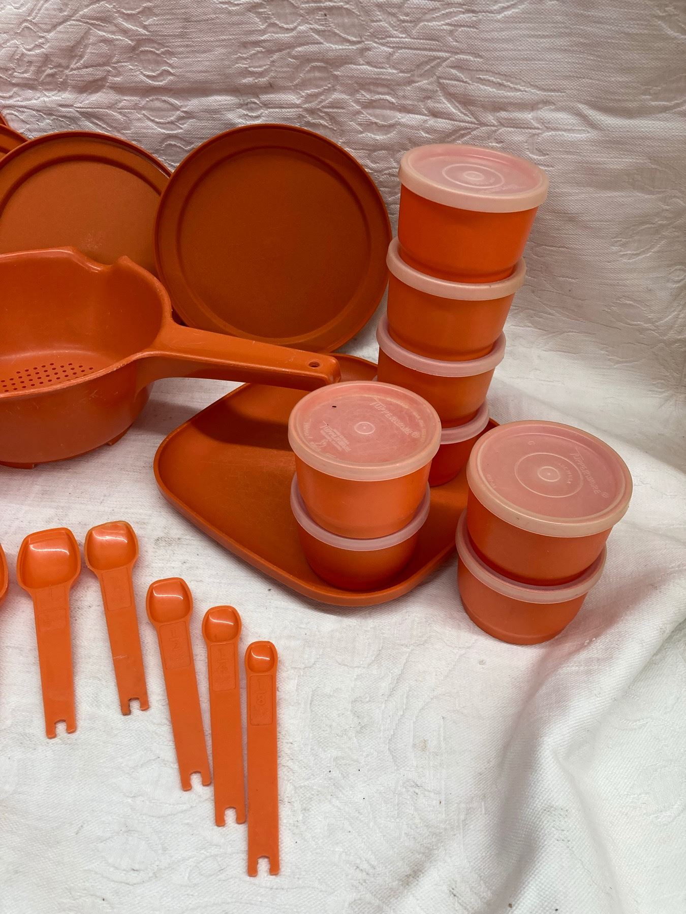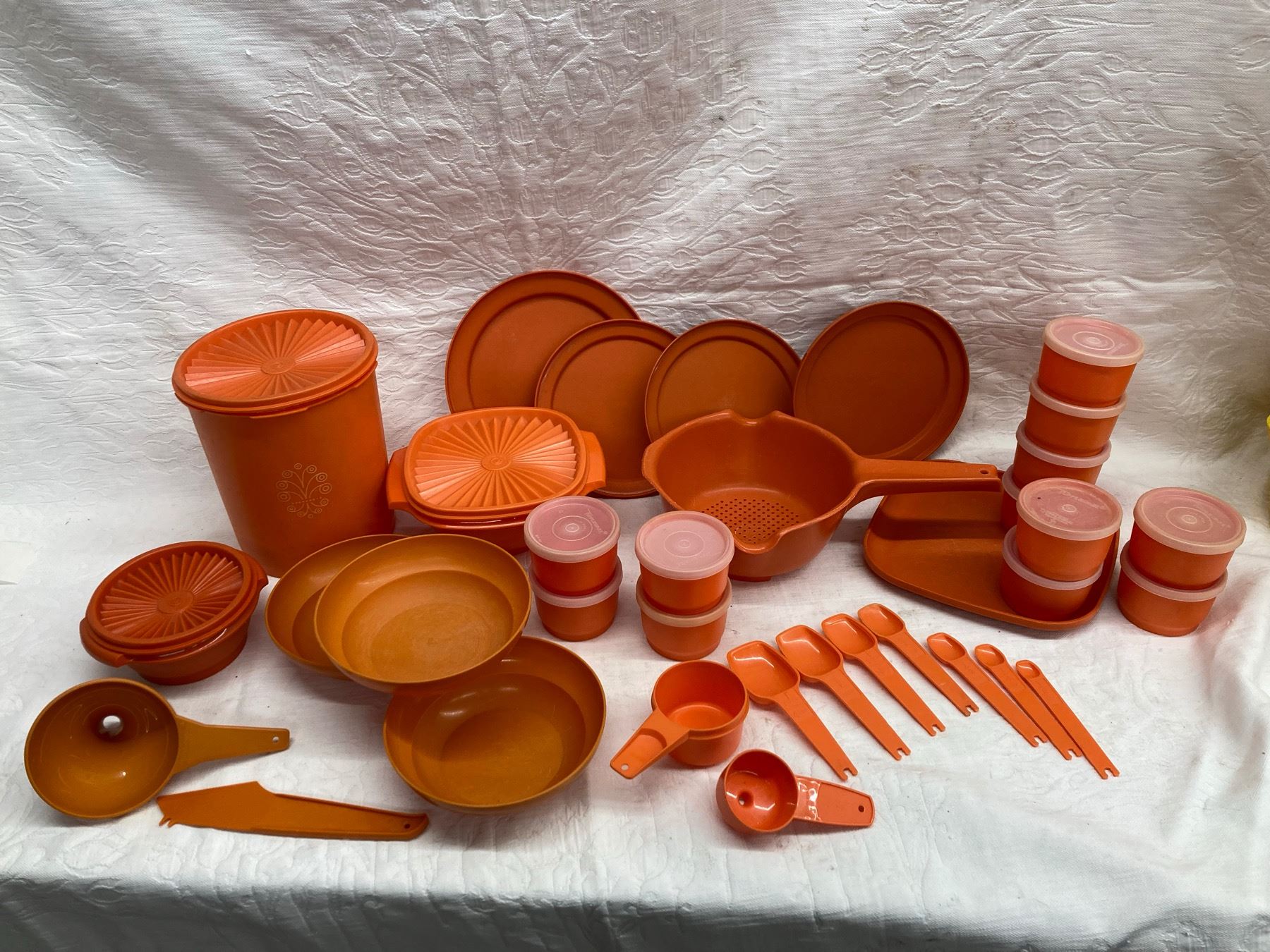 Tupperware and Tupperware brand only! We have been saving from our estate cleanouts and have quite the collection. Please check out all the pictures. We do have the Tupperware on site if you are looking to check a certain piece. Tupperware appears to be in good condition.